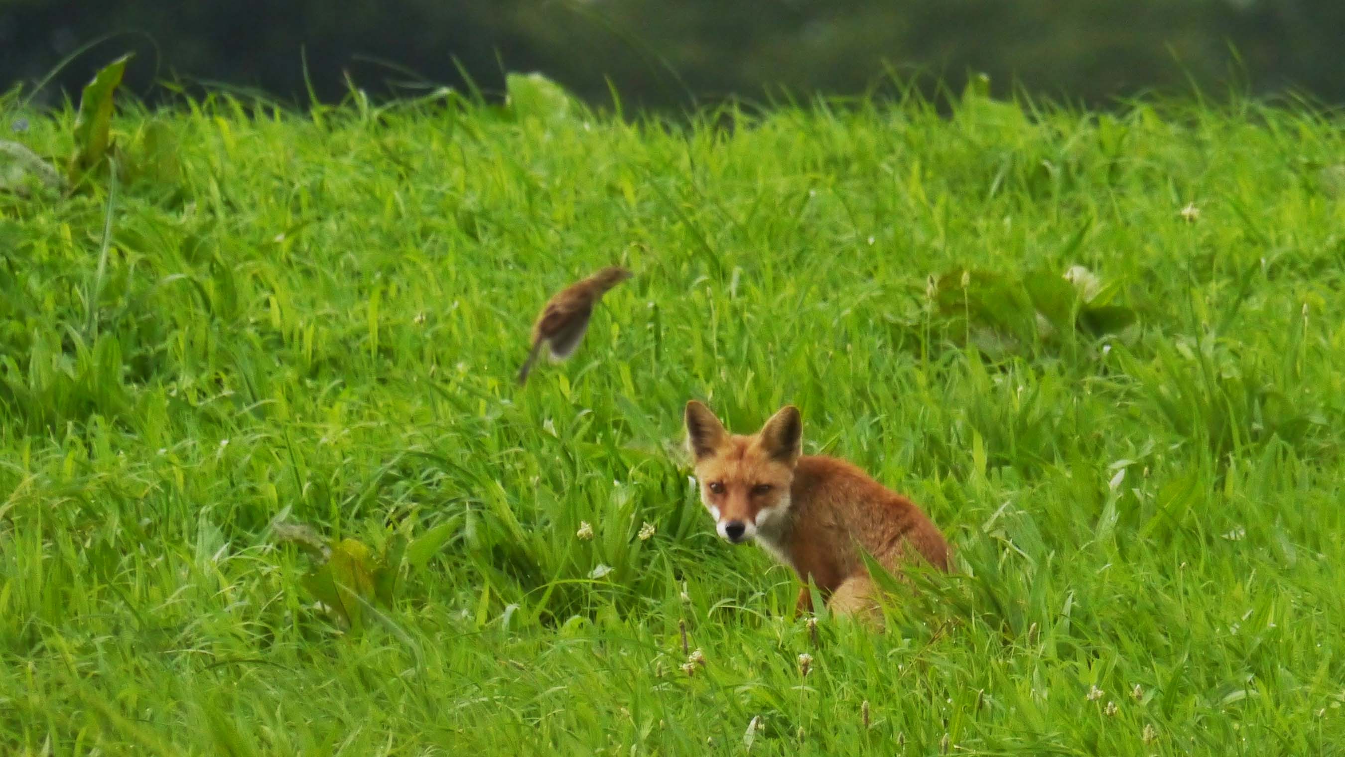本物のキツネとホオアカ?