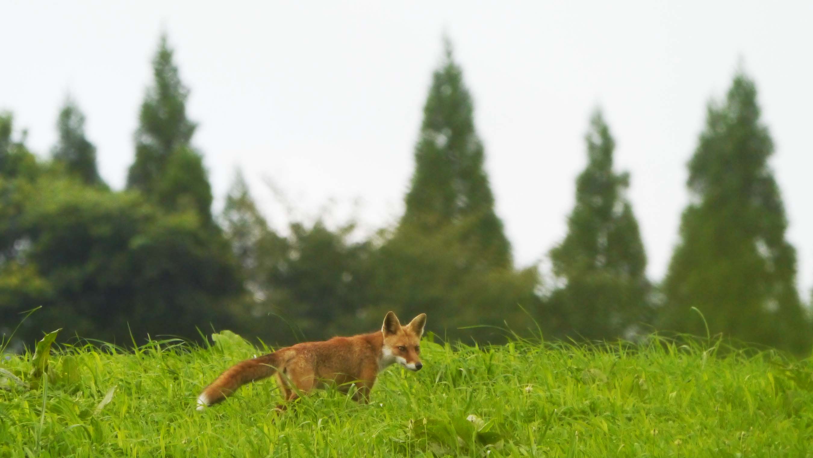 色々と写していたらキツネが1匹。朝ですよ~ッ。