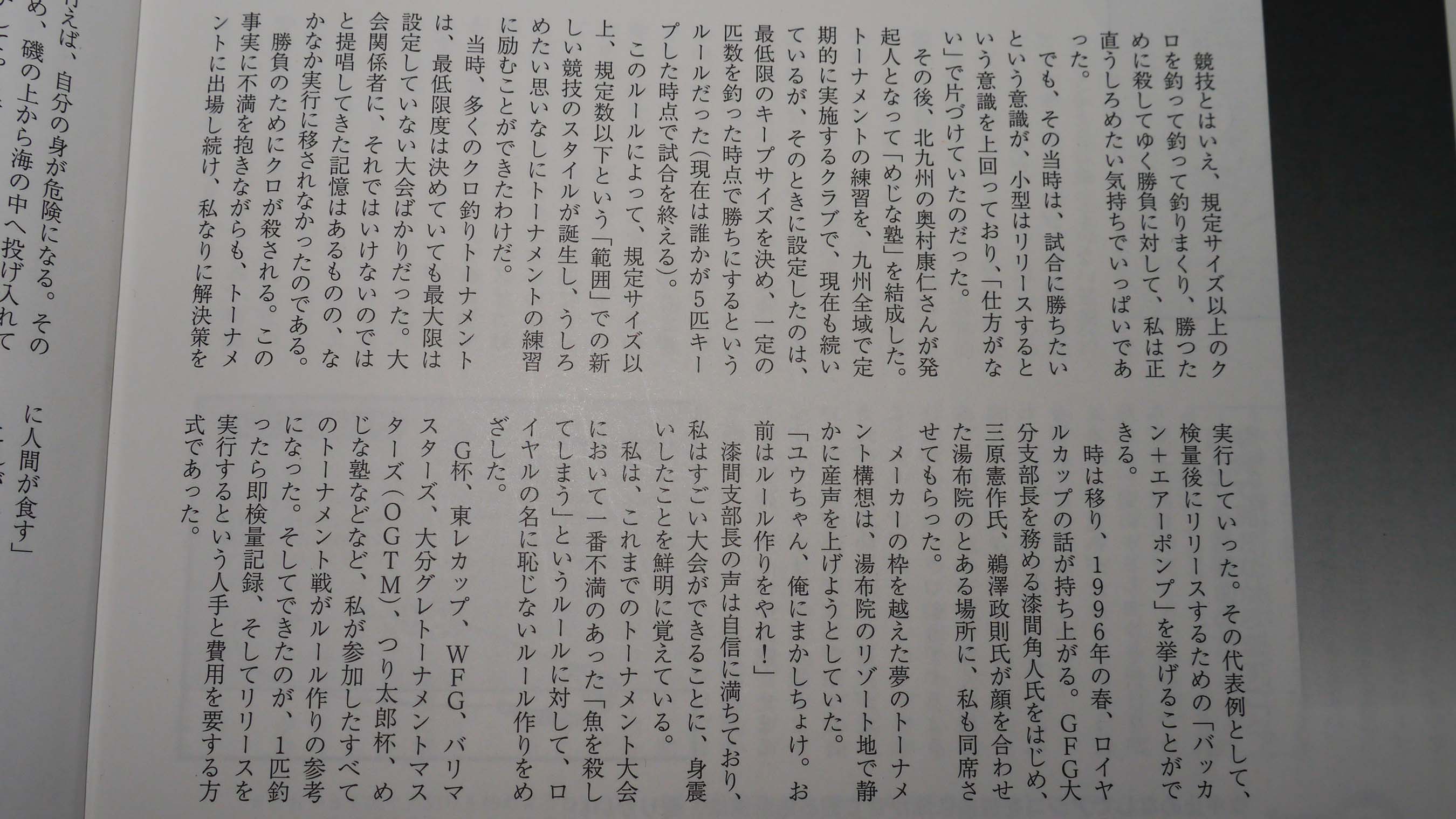 私がトーナメントに初めて参加したのは、1987年に大分県の蒲江で開催された、第10回G杯グレの九州地区予選でした。初めてのトーナメントで勝ち進んだ私は初優勝。その冬の全国大会に出場したのですが、三原憲作名人に5㎏対0という惨敗で、全国レベルの高さを思い知ったのが33歳の時です。