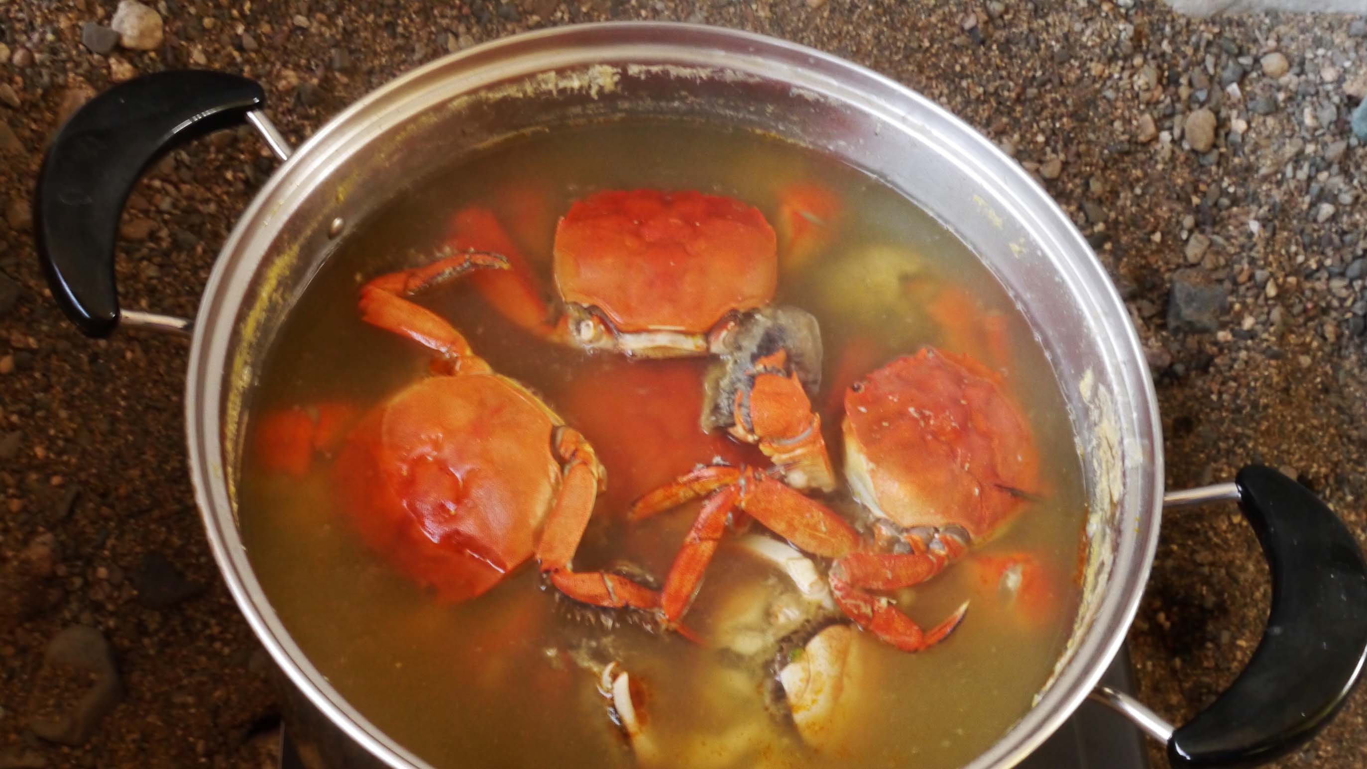 今回はモクズガニのガン汁にも挑戦しましたが、大人数を見込んで水を入れ過ぎたのが唯一の失敗。モクズガニ本来の濃厚な味が出ませんでした。