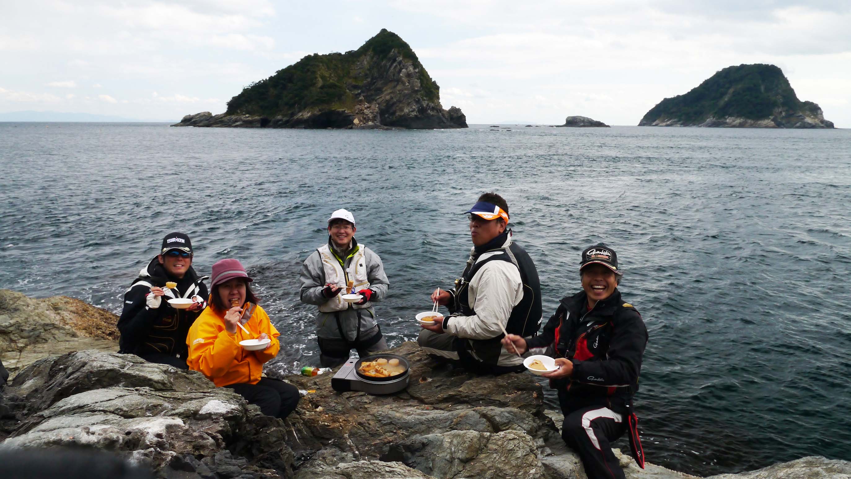 黒島をバックに、後藤さんが用意してくれたおでんを・・・