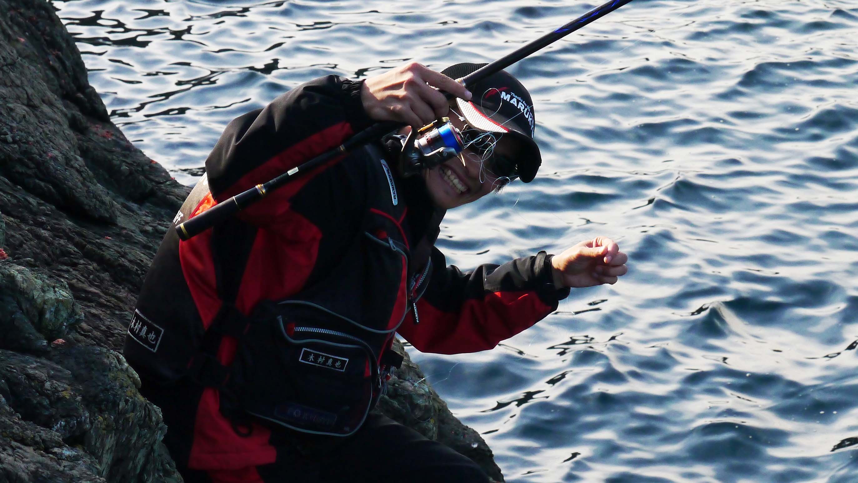 磯釣り講座の後半、自由時間で竿を振っていた木村君。