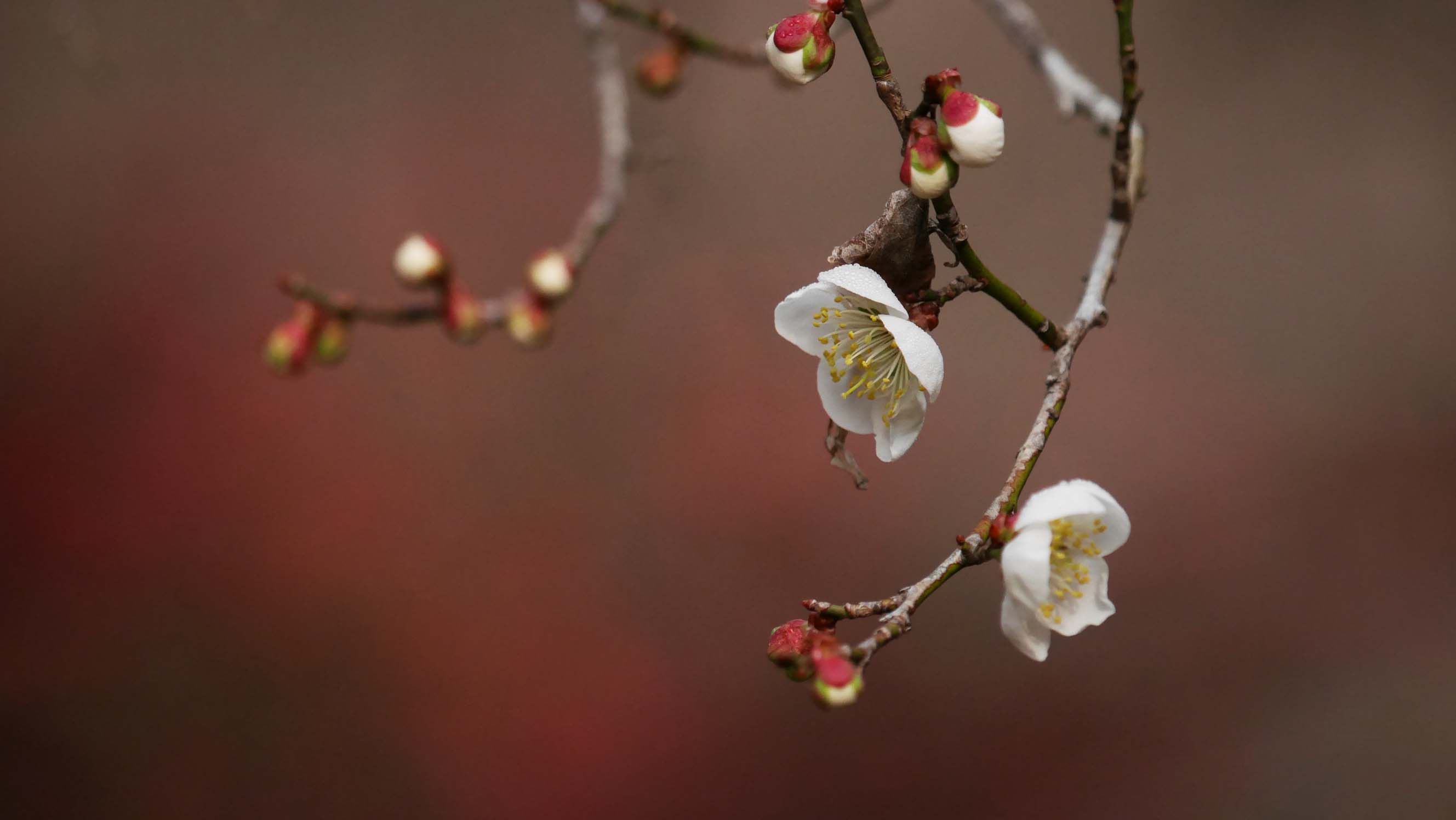 冬の間咲き誇ったサザンカは散りはじめ、藪椿と梅のが花が咲き始めています。