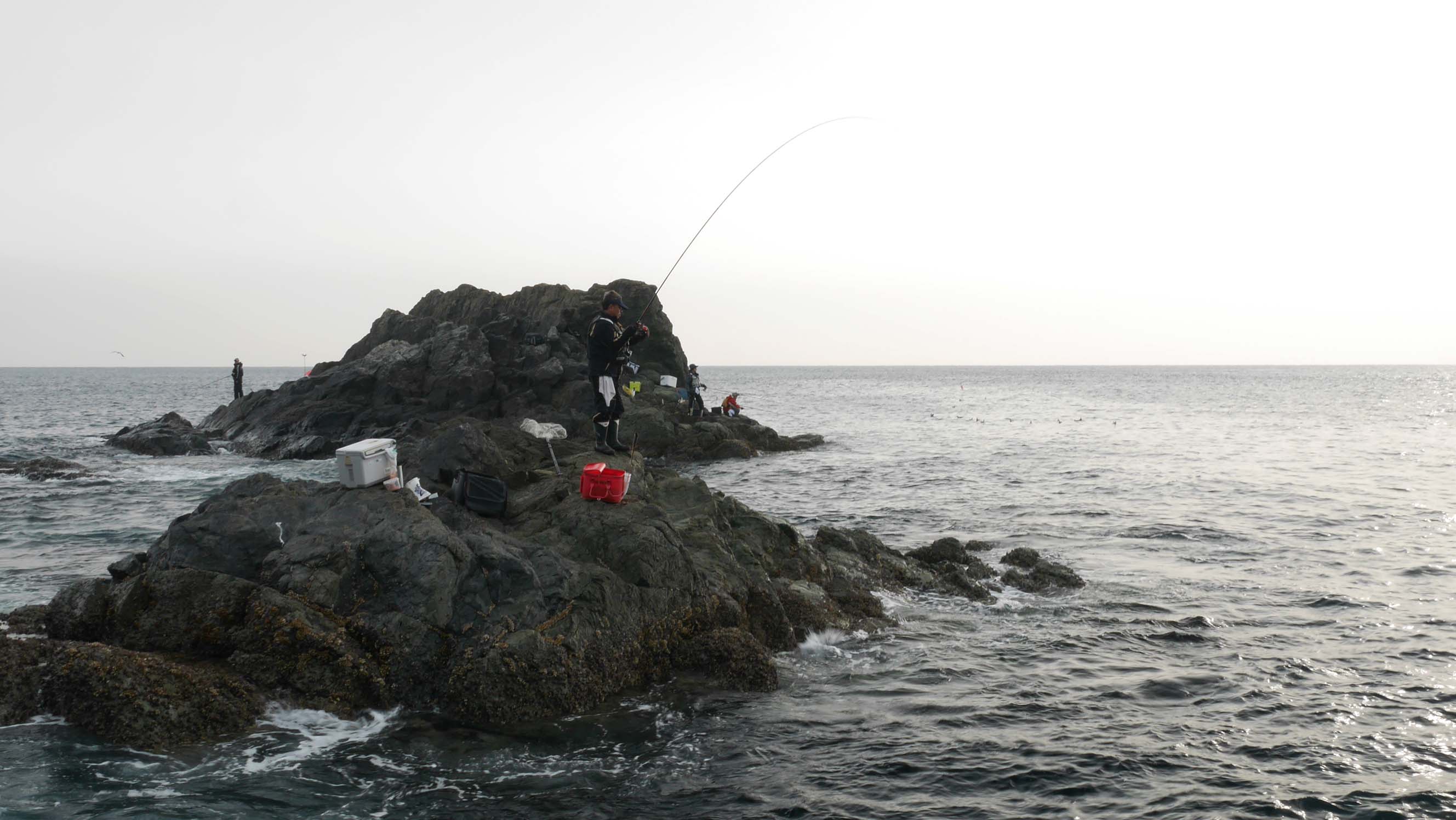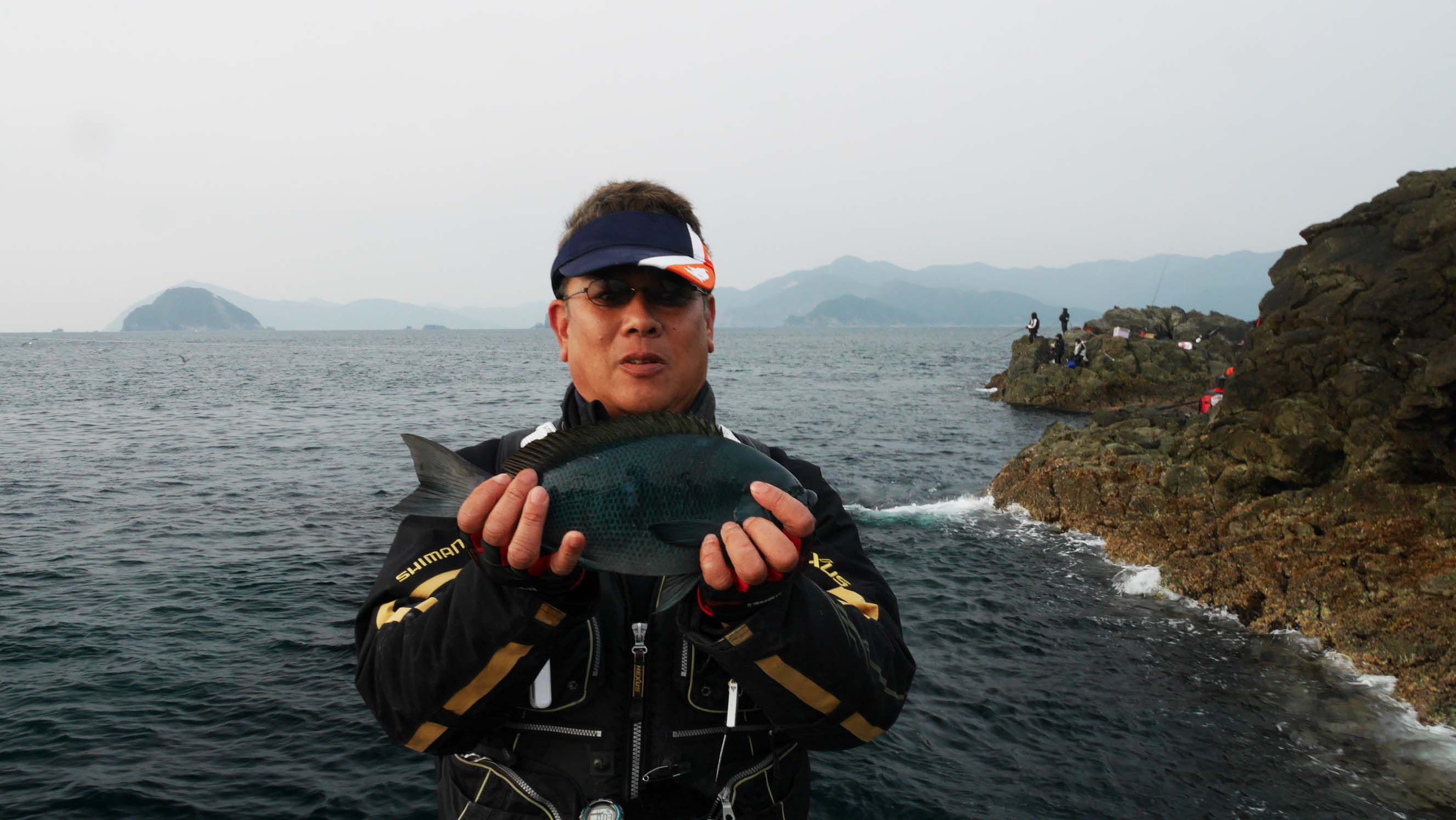 3番向きの後藤さんはグレなどを数回掛けてノーフィッシュ。ワタリから竿を振った溝辺さんはグレを3匹。裏側を攻めた原尻さんと私はノーフィッシュ。