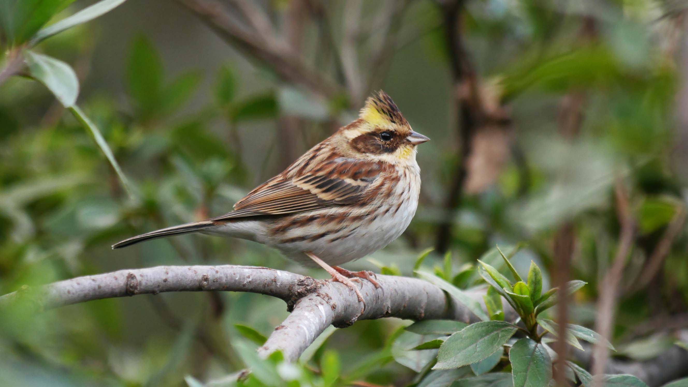 ヤマガラハウスの一本の枝、ミヤマホオジロのメス