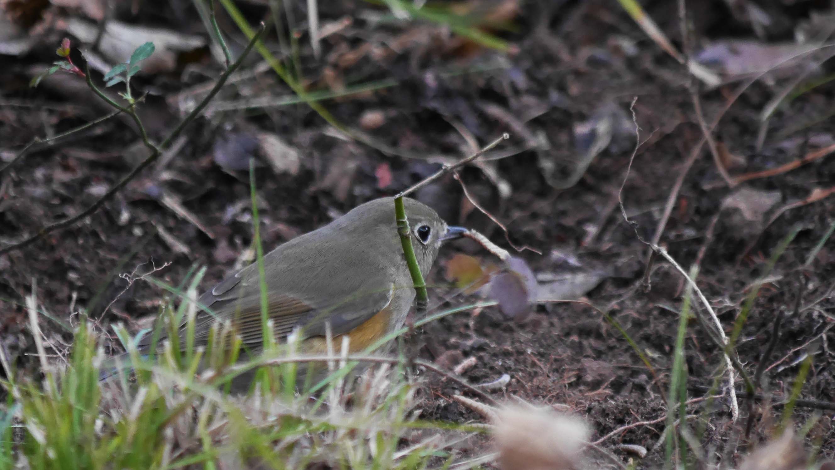 メスのルリビタキ。エサに付きましたがオスとジョウビタキに追われます