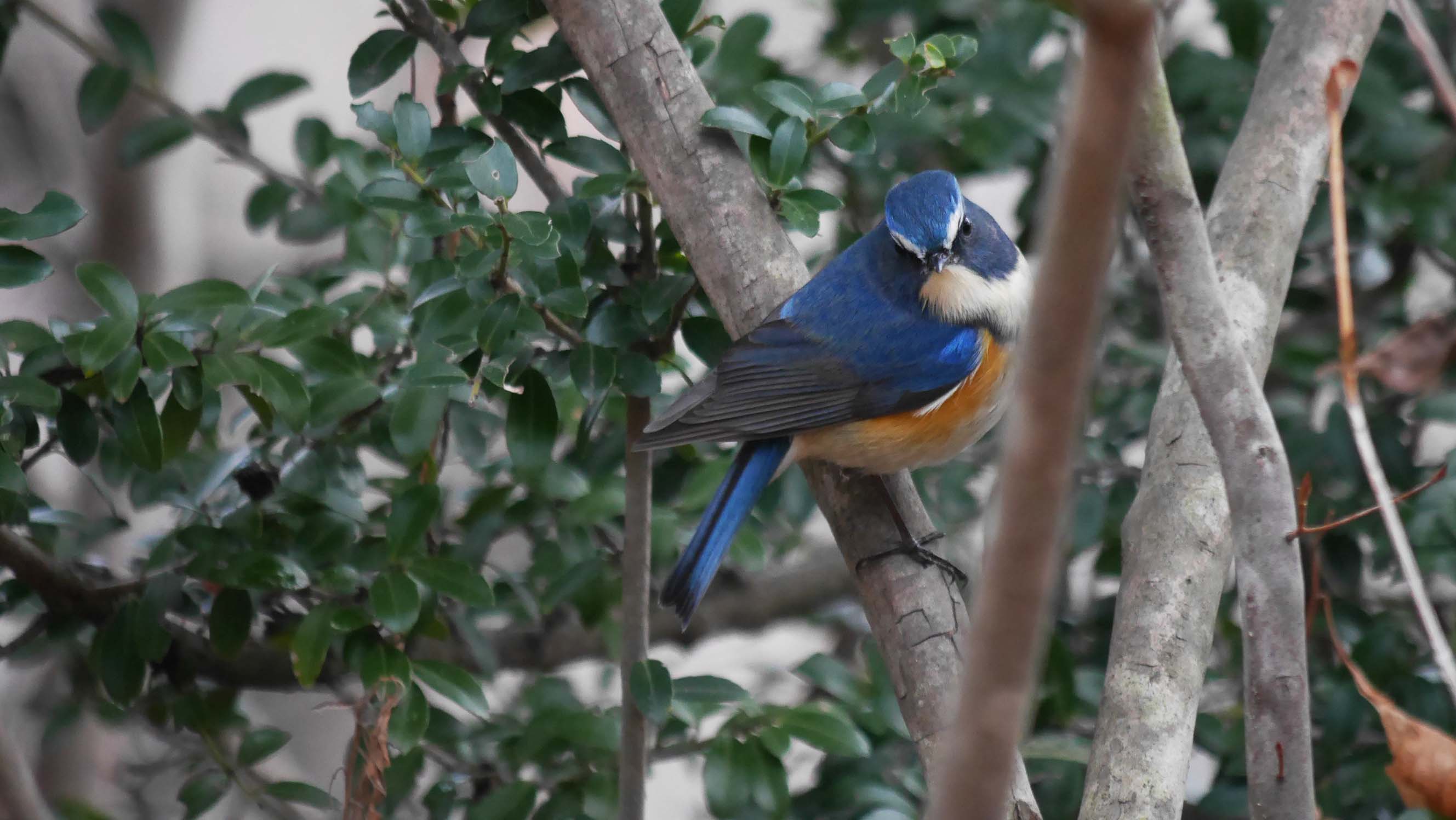 綺麗なオスのルリビタキ、3年生か4年生だと思います