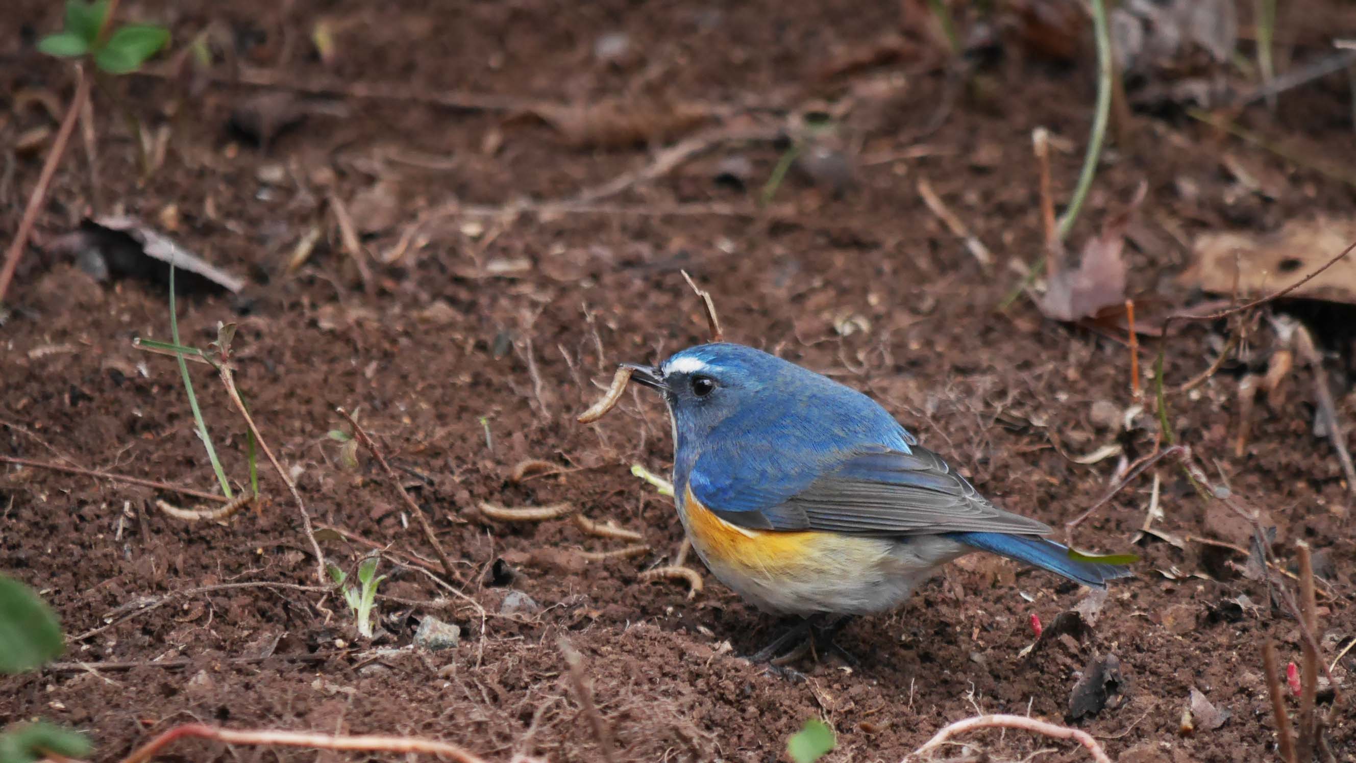 そこで今回は新しいレストランを近くに作って、その場所には他の小鳥が行かない様に調整していると、オスのルリビタキが新しいレストランを見つけてエサを食べました。