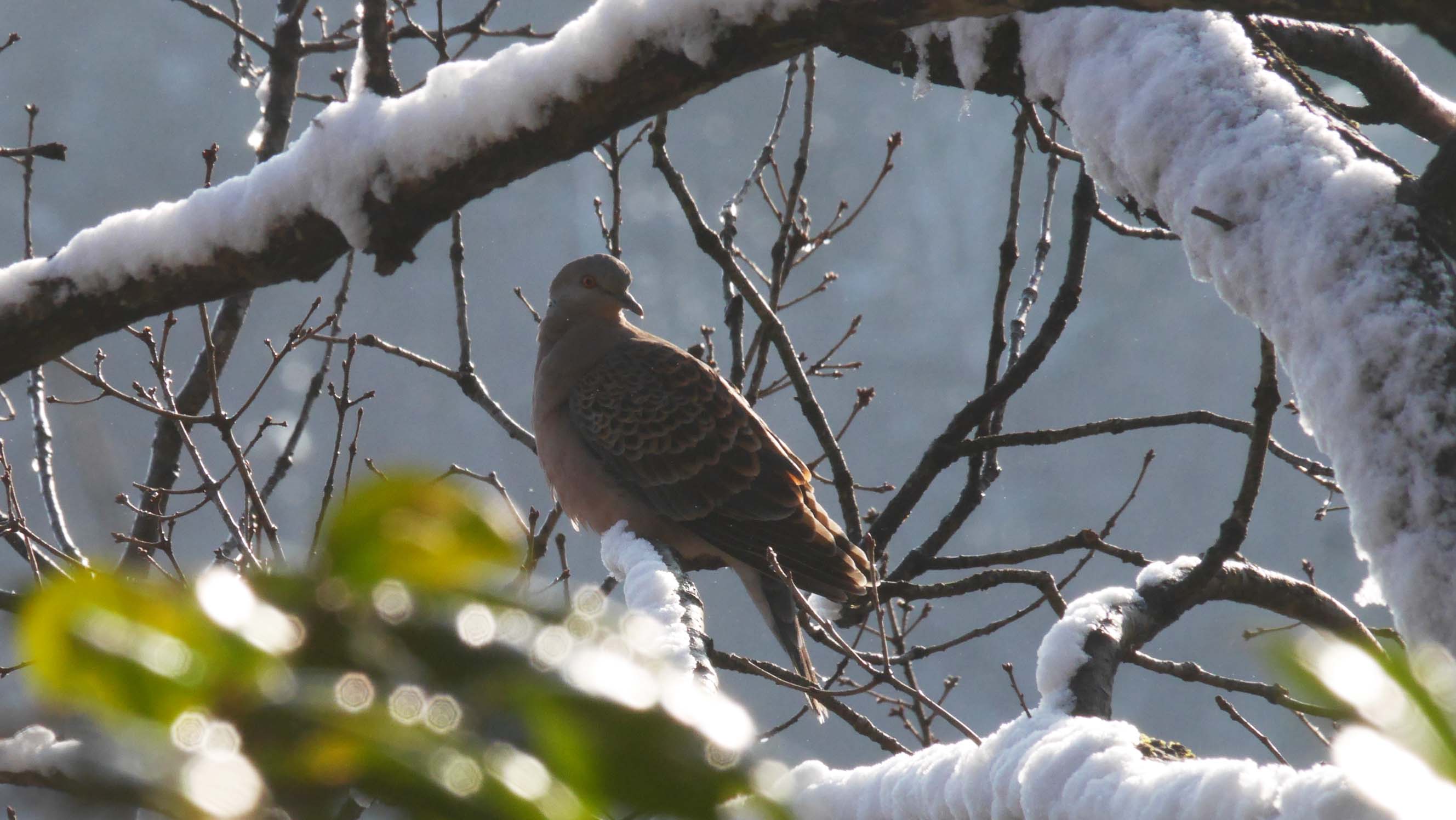 その上のルリビタキポイントは薄っすらと雪化粧。