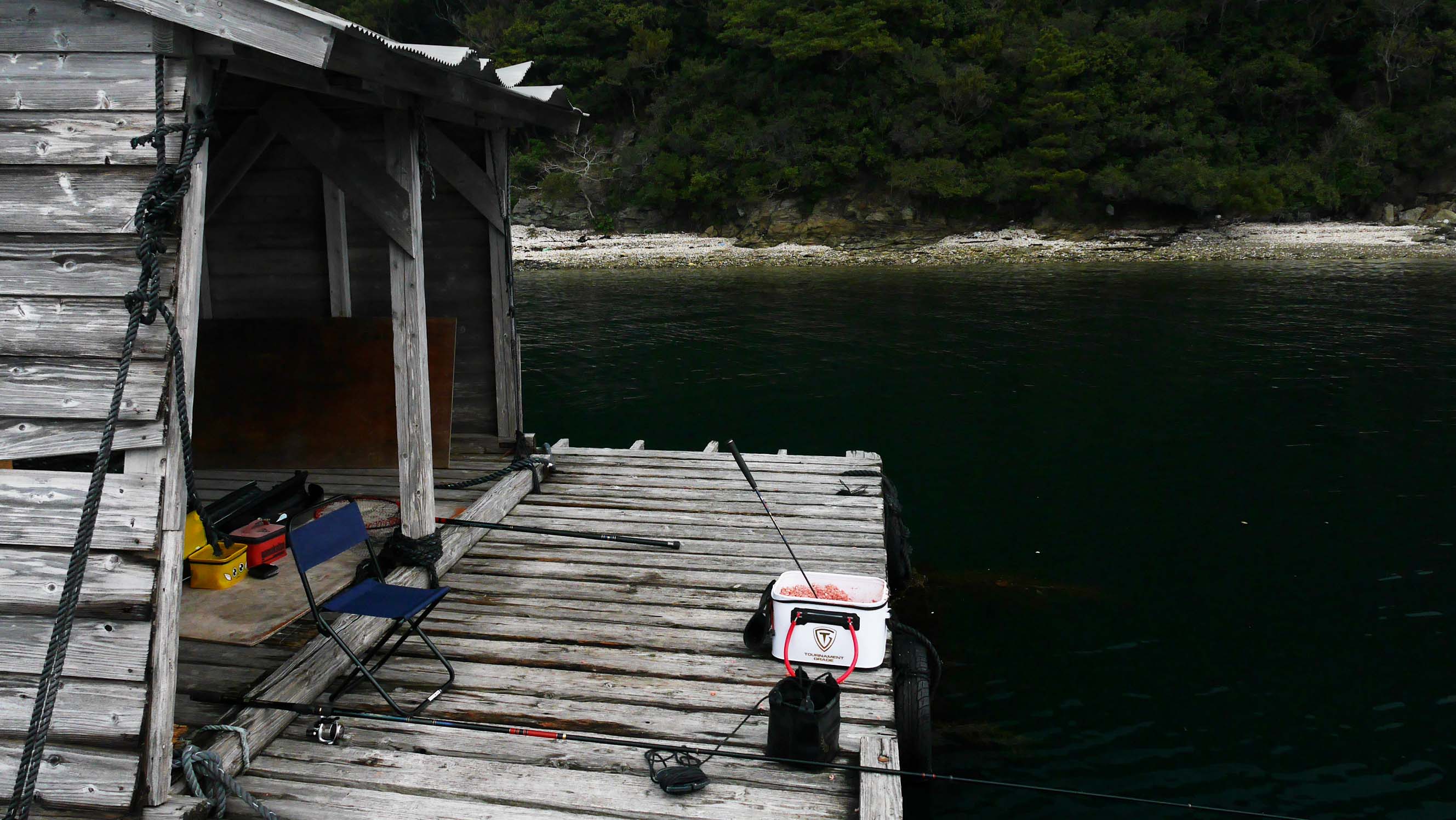 沖のイカダです。今回は小屋からの竿出し