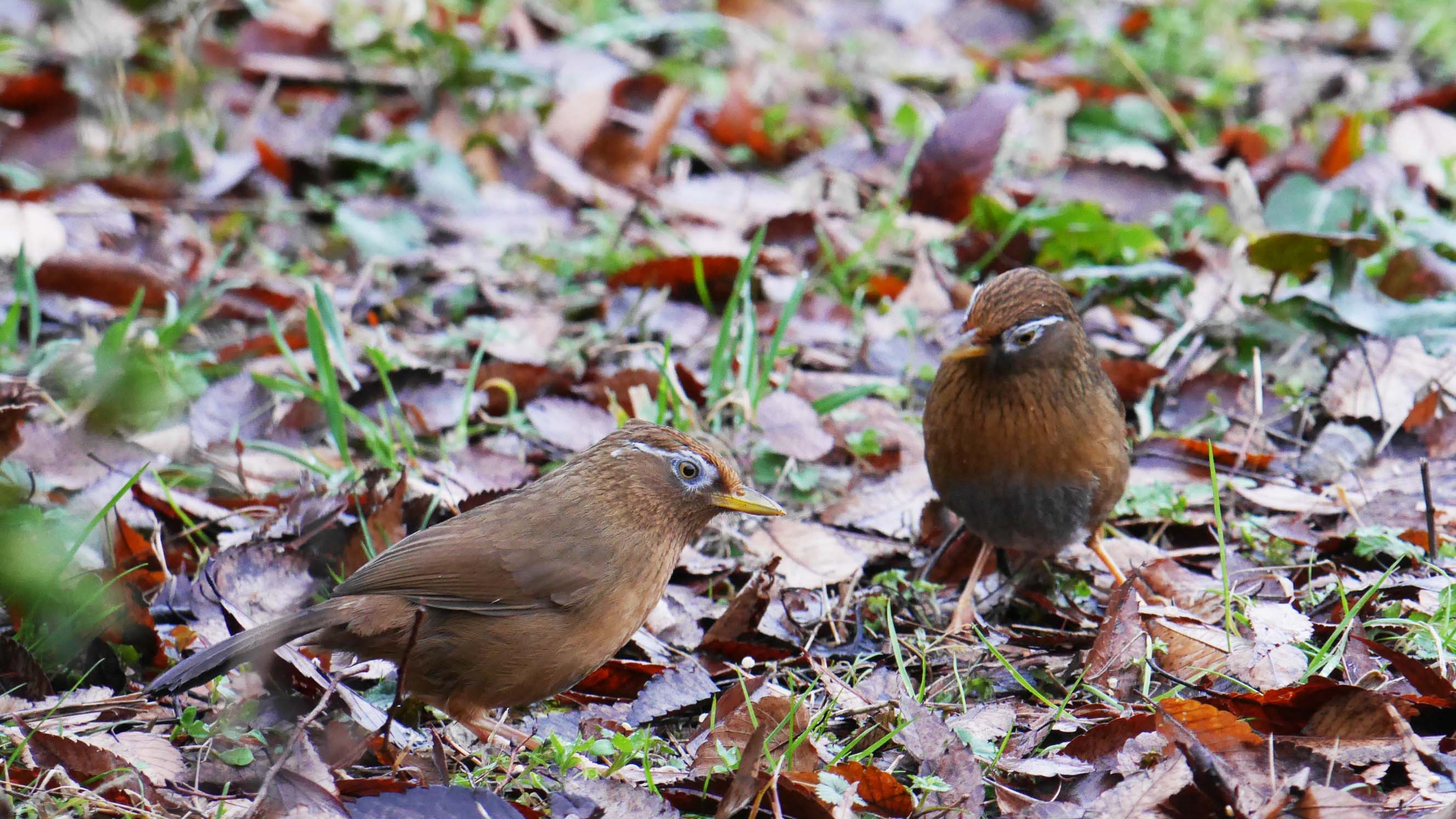 ガビチョウはツグミくらいの大きさで、鳴き声が大きく騒がしいタイプの小鳥です。山の方から河原などまで、大分市内でかなり広範囲に生息し、その数を増やし続けています。中型の小鳥なので、同じサイズ以下の小鳥よりも喧嘩が強いです。(上の写真)