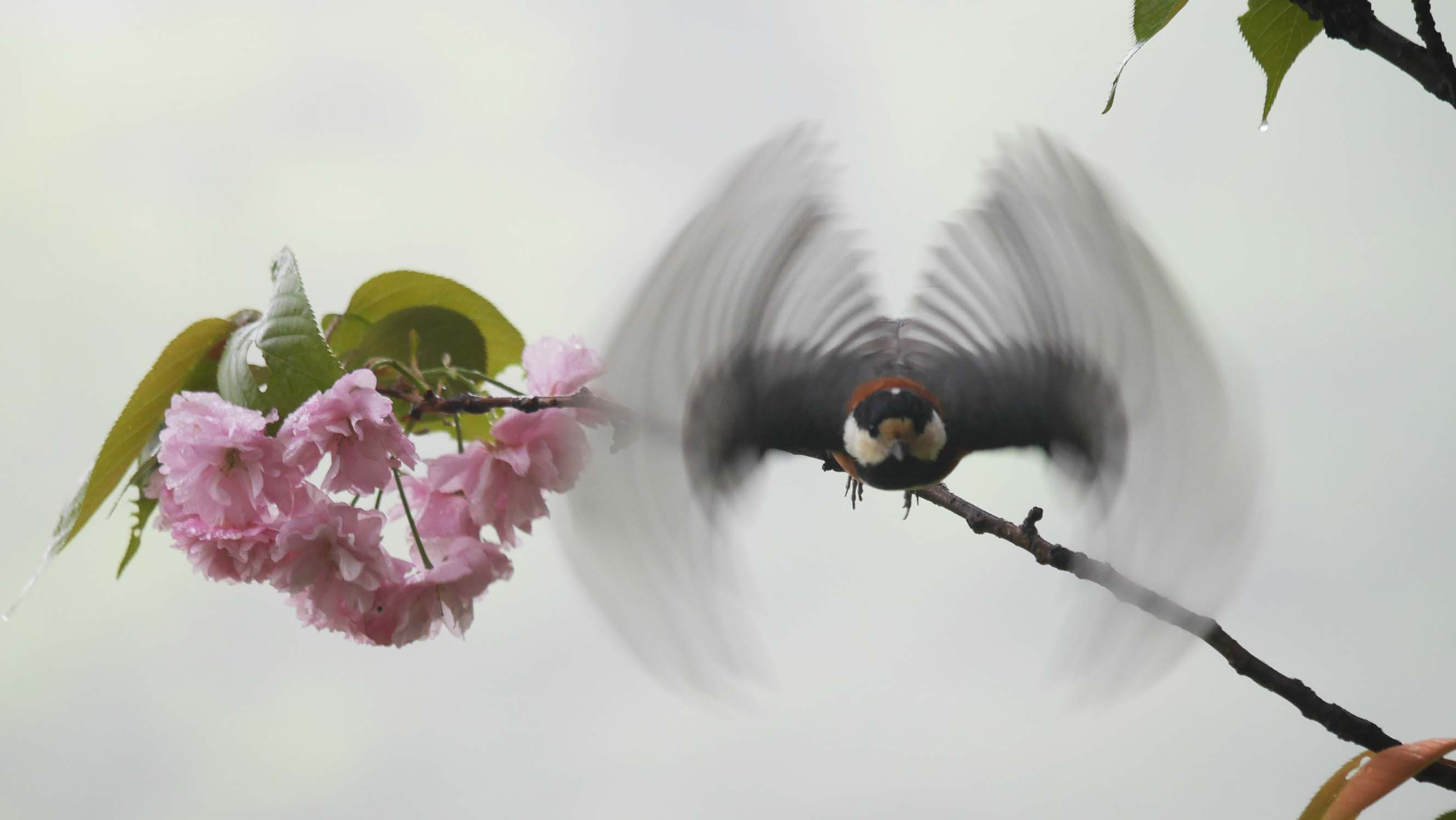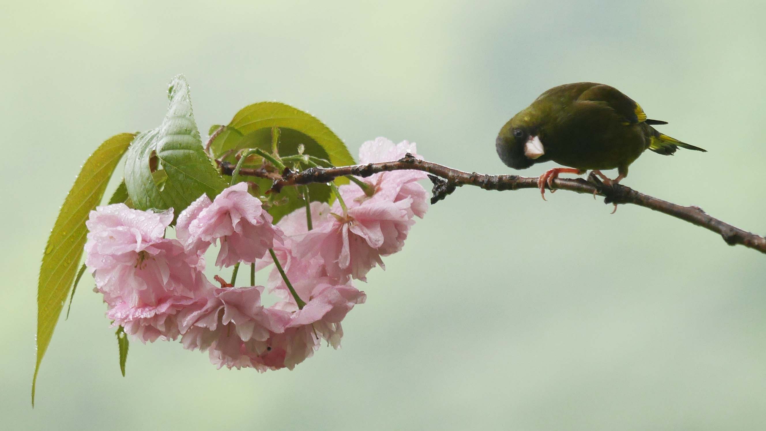 ボタンザクラはピークを過ぎて、いよいよ花弁が舞い始めました。