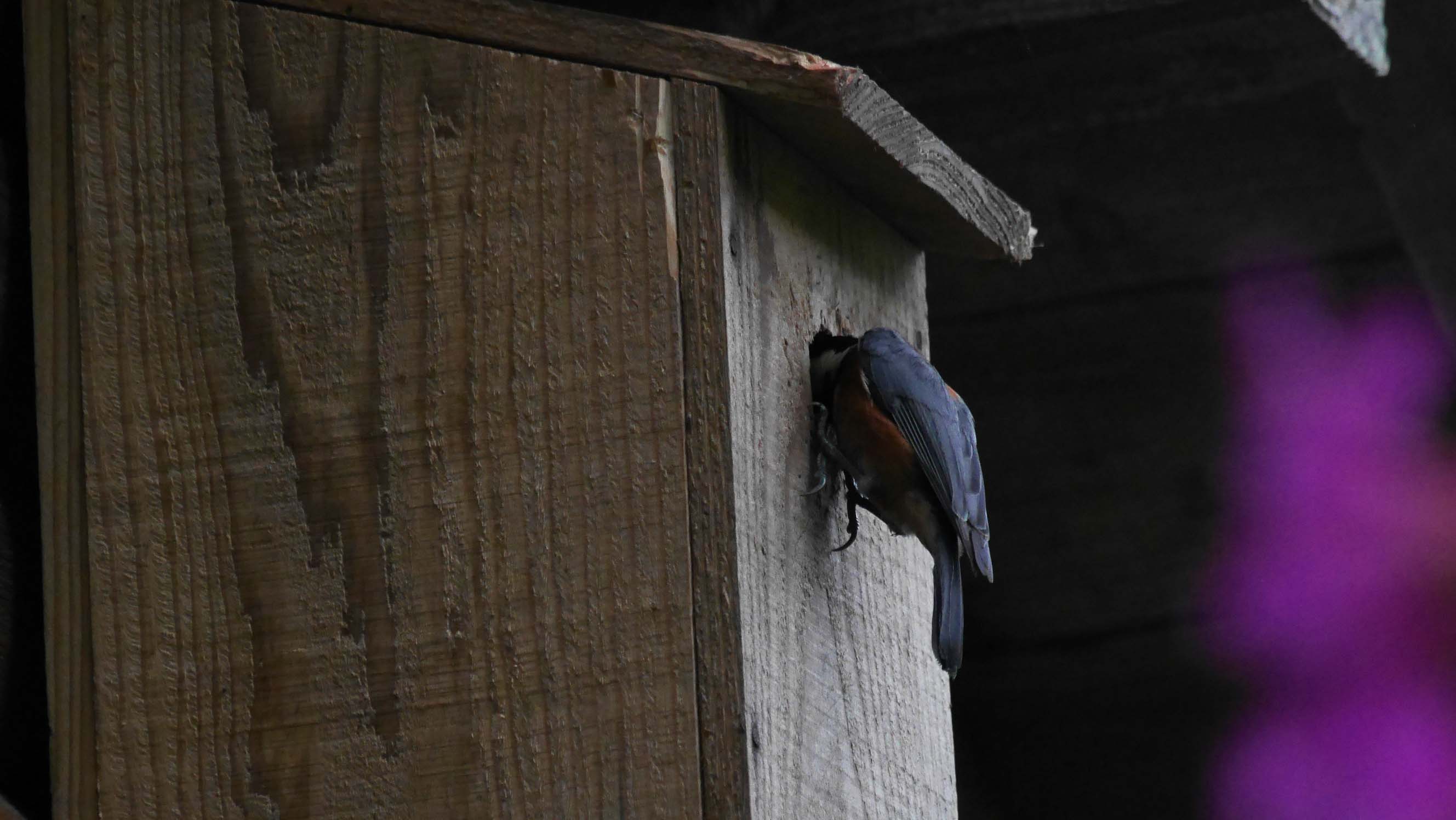 奥の池の管理事務所に設置した巣箱もヤマガラが使用中です。