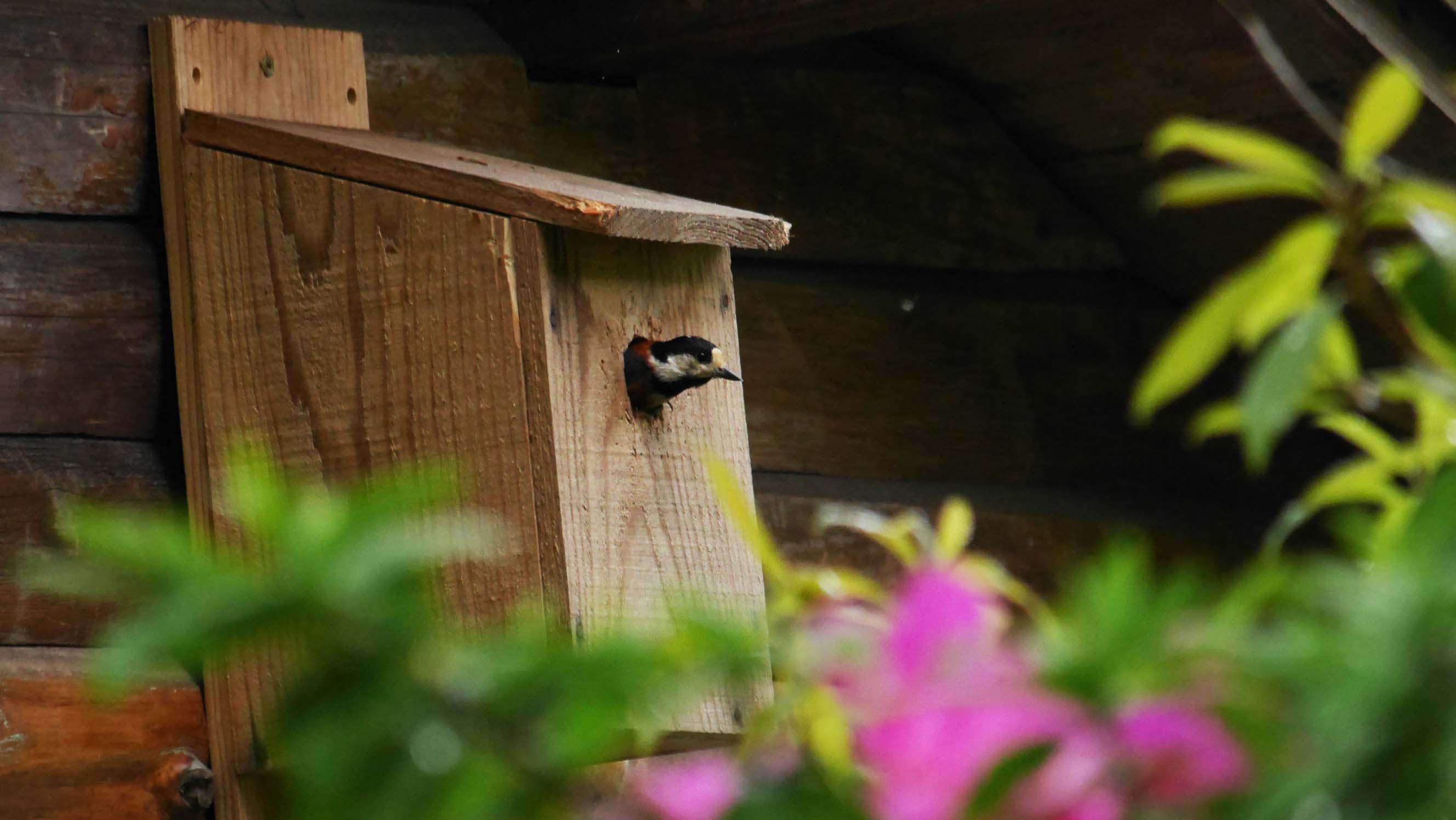 今一つは小屋の軒下に取り付けていて、こちらも子育て開始。