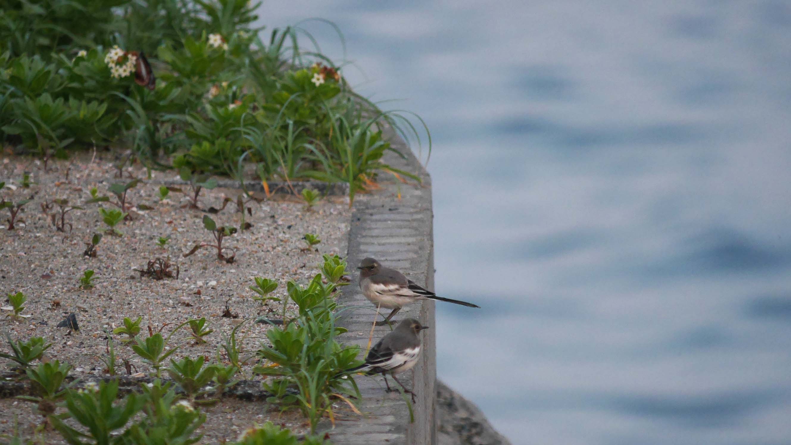 初めての出会い。ハクセキレイの仲間と思うけど・・・姫島村の海岸で撮影。