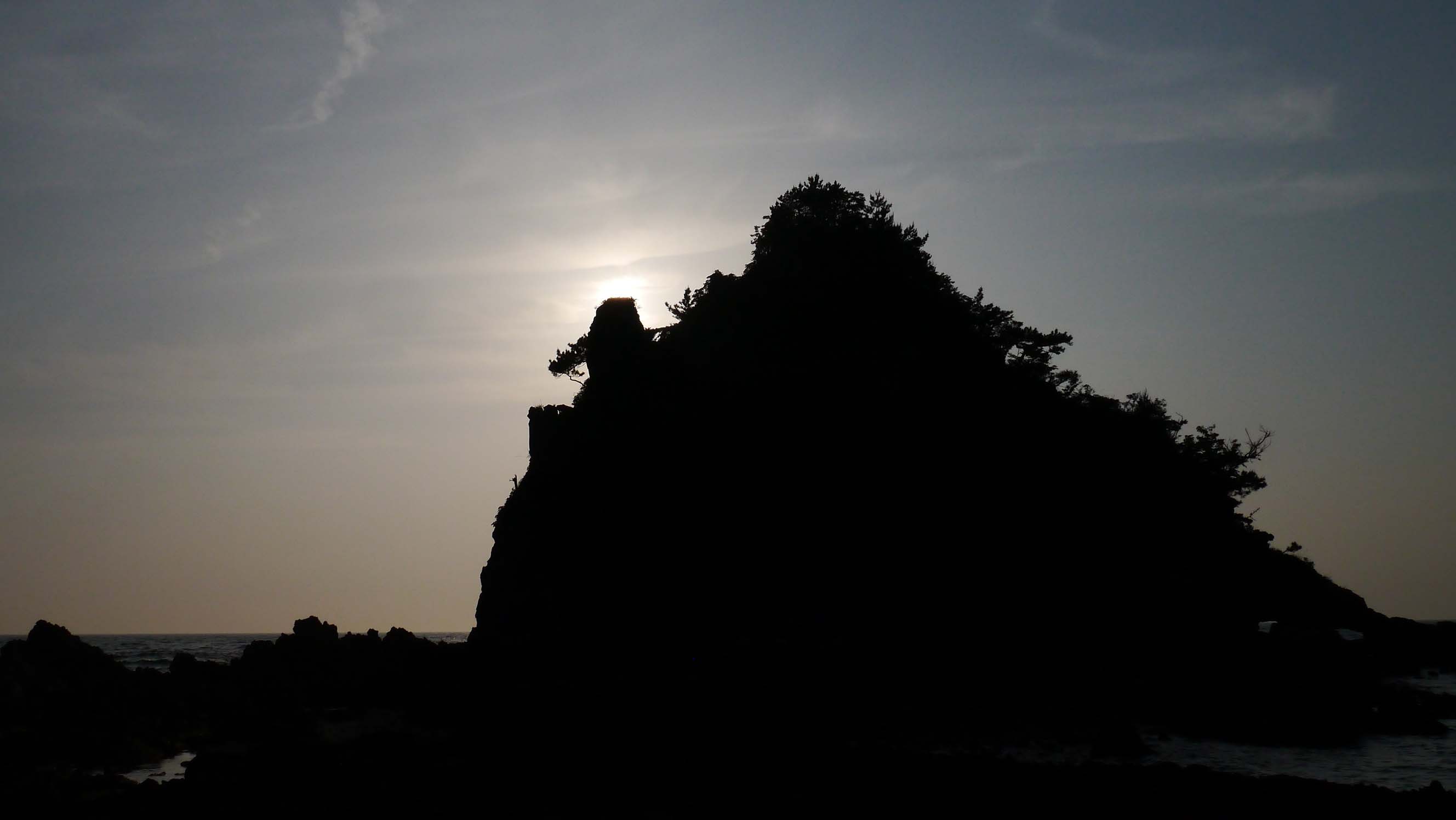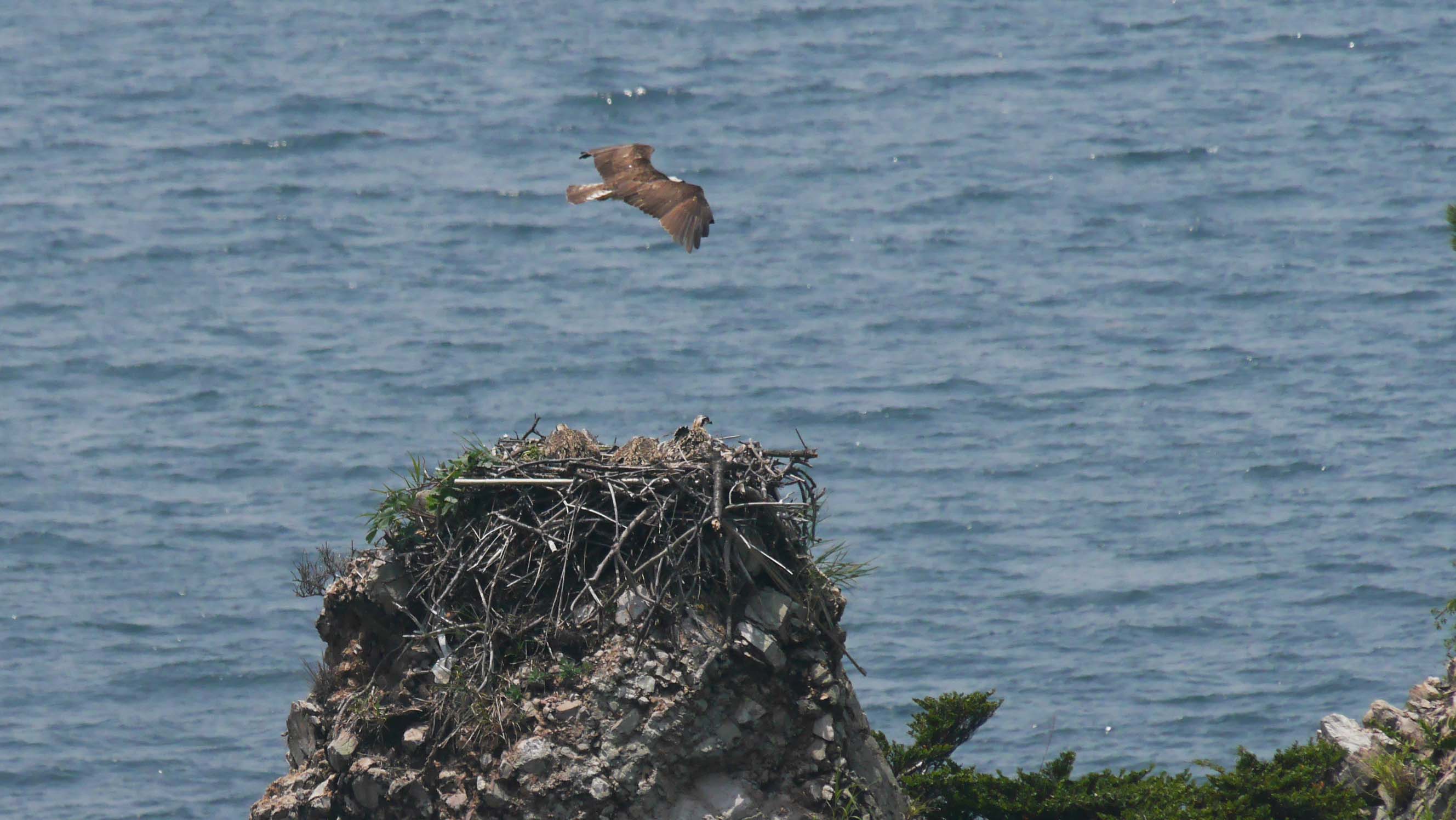 斗尺岩、太陽が当たっている岩で毎年ミサゴが繁殖します