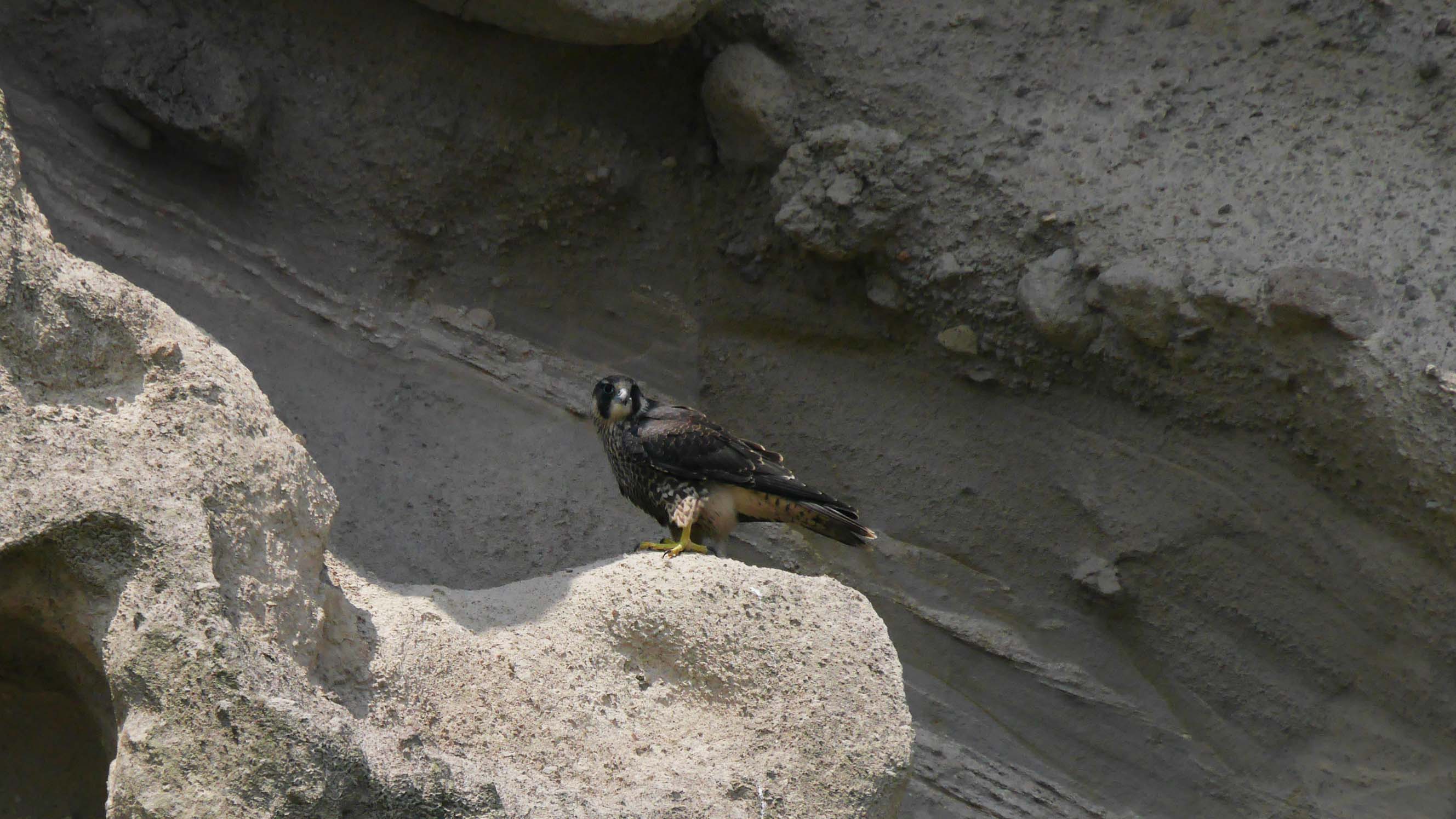 鷹ノ巣で数日前に巣立ったハヤブサの若