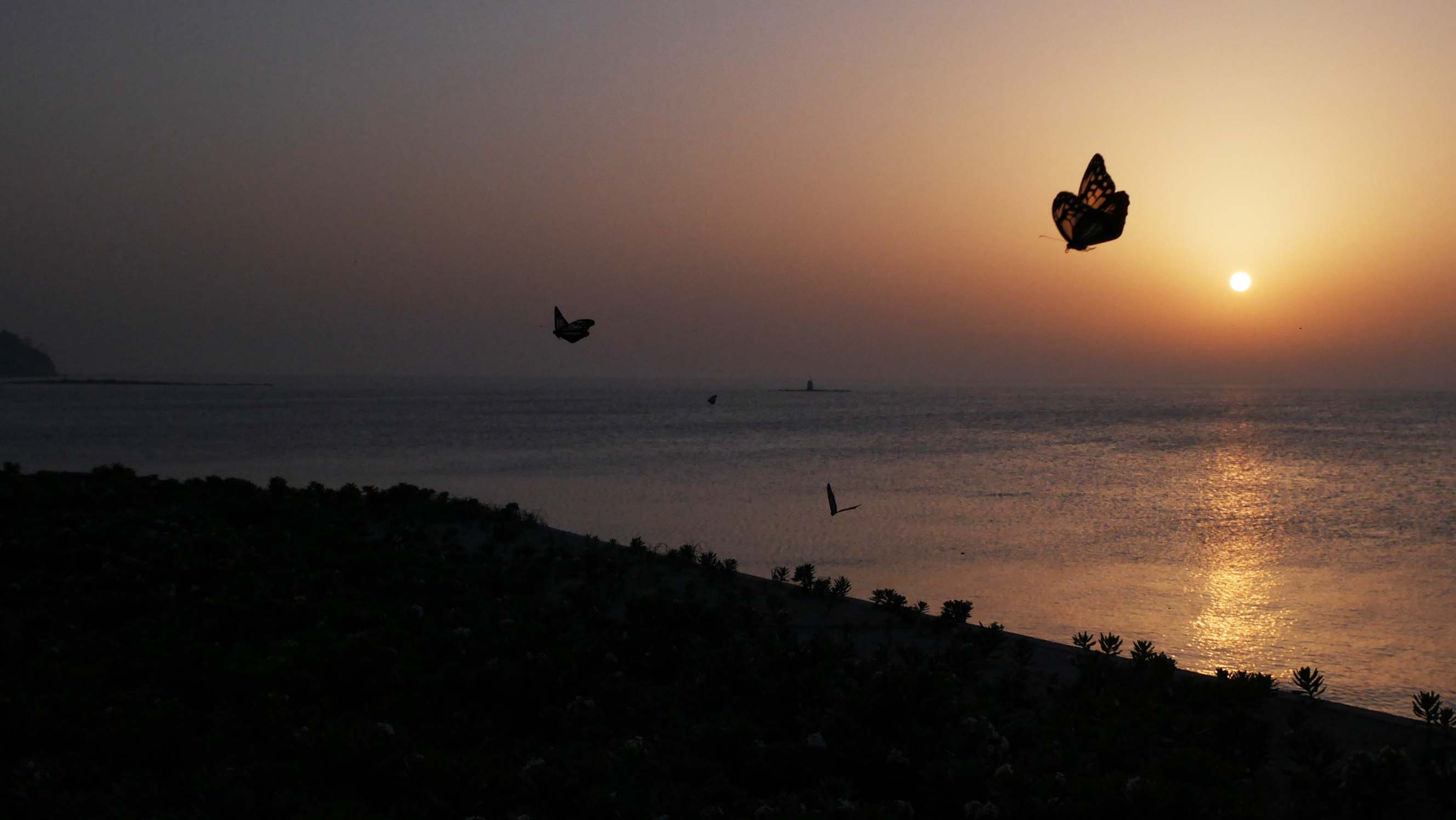 朝4時30分に起床。15分後には撮影のスタンバイが完了です。今日の大分は日の出が5時6分です。アサギマダラの飛来は4時56分と、日の出時間より早いのは前回と同じ。