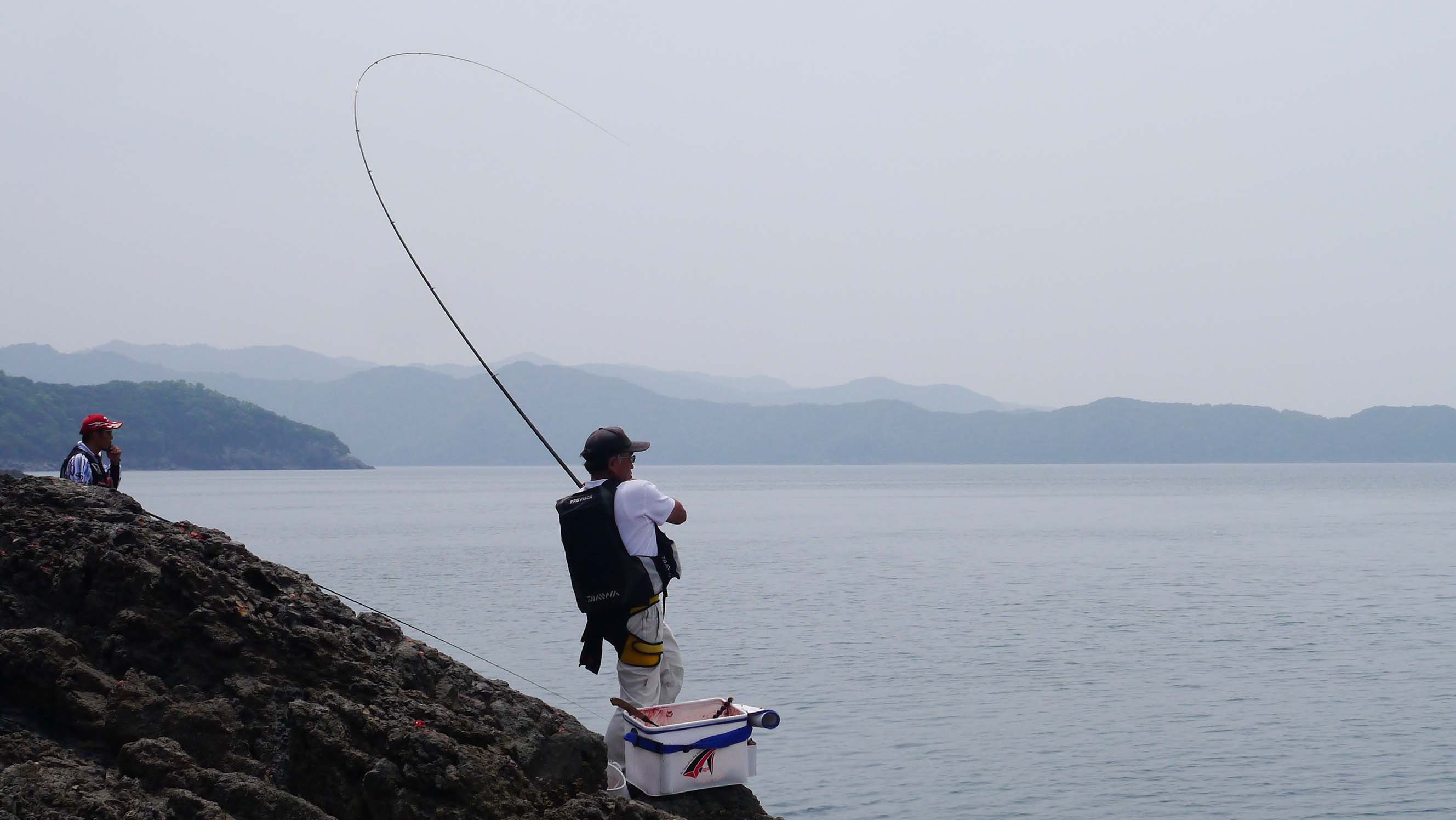 大島の赤岩周辺では良型が釣れ続く中、唯一抽選になってしまったのが3回戦。早掛けも他魚も釣れなかったため、ジャンケン勝負で運を引き寄せたのが有田君。