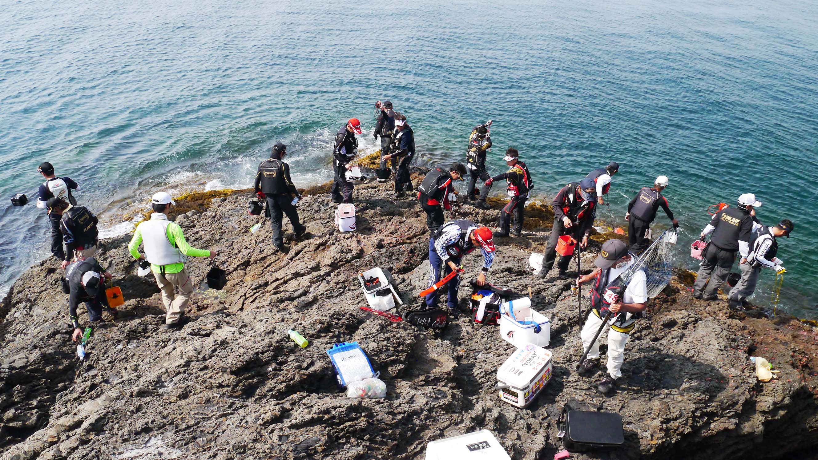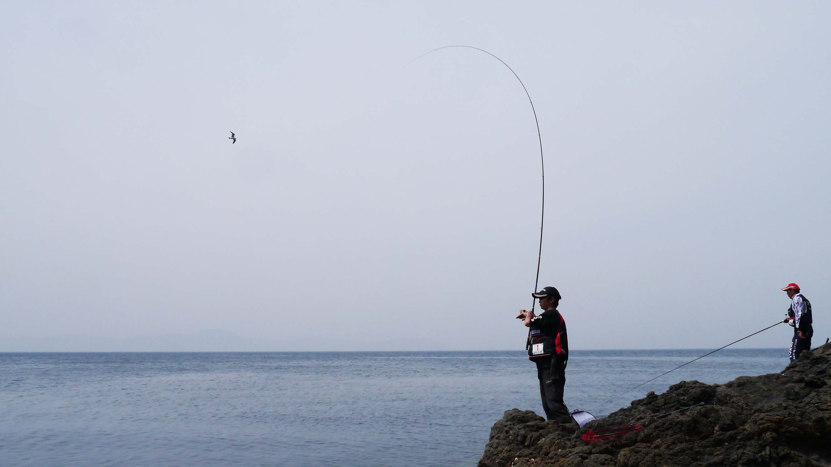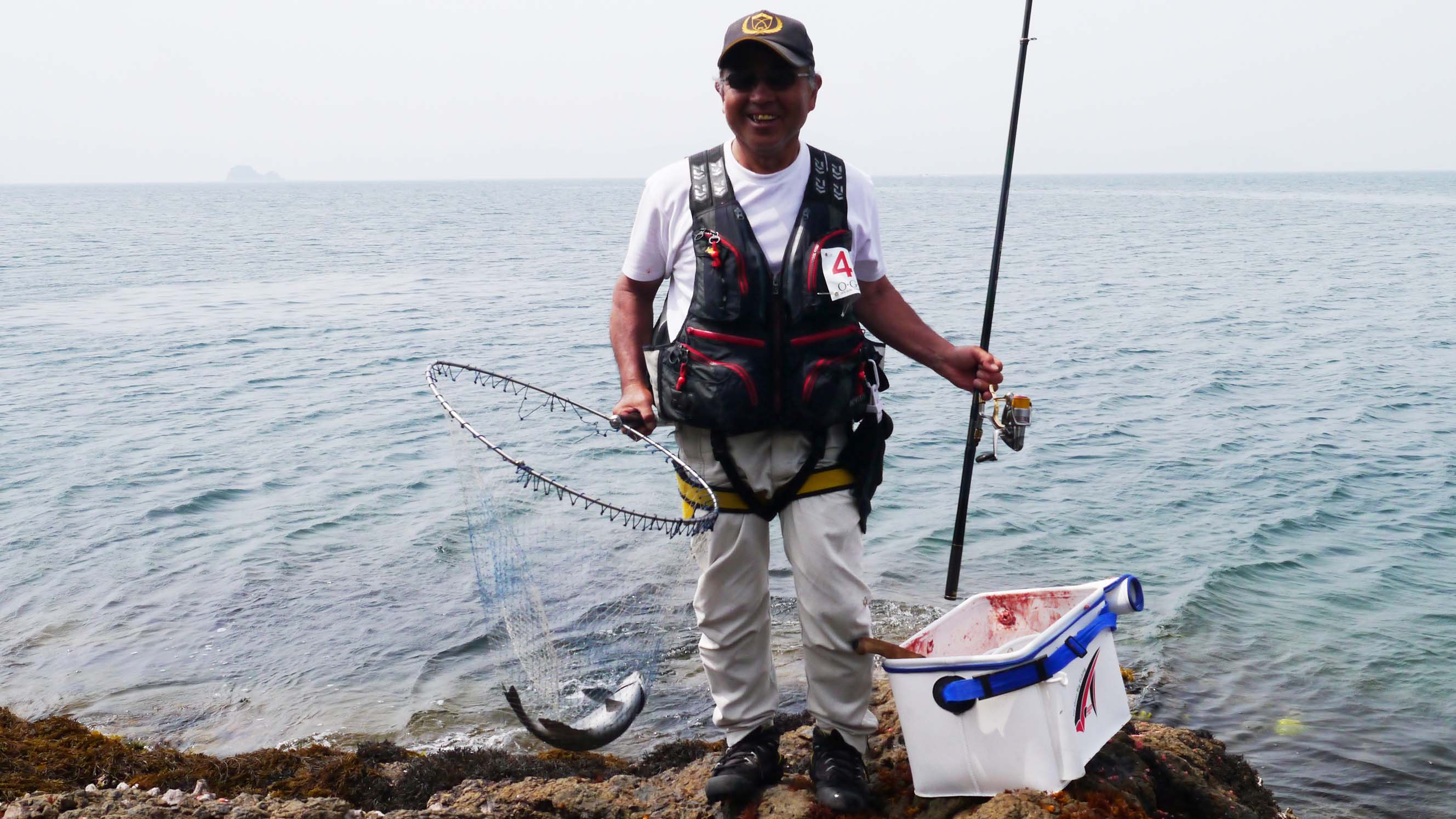 決勝戦では、沖から攻めてくるサバゴと、磯際から沖へ攻めていくスズメダイを上手く交し、なおかつ南東からの風と表面流の滑りを敵に回さない、高度なテクニックが要求された白崎一番でした。今一つは各選手ともチヌの攻撃を受けた事でしょうか?
