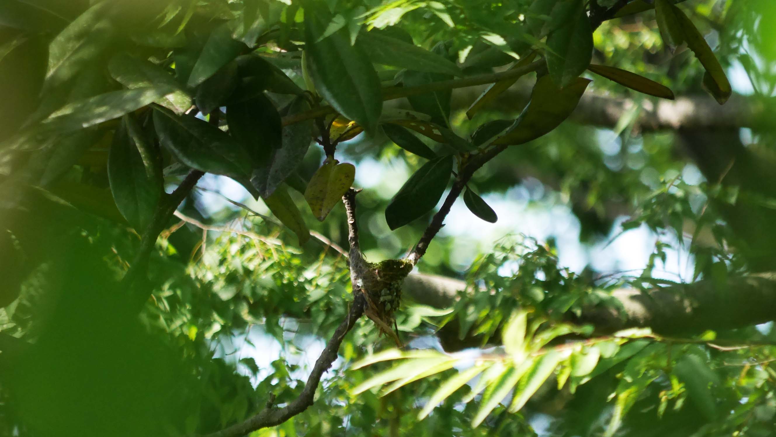 数日後のチェックでは、カラスが巣の近くに行ったのにサンコウチョウはカラスを撃退しません。サンコウチョウはカラスが巣に30mくらい近づいた頃から攻撃を始めるのですが、攻撃をしないという事は、巣を放棄している事に繋がります。