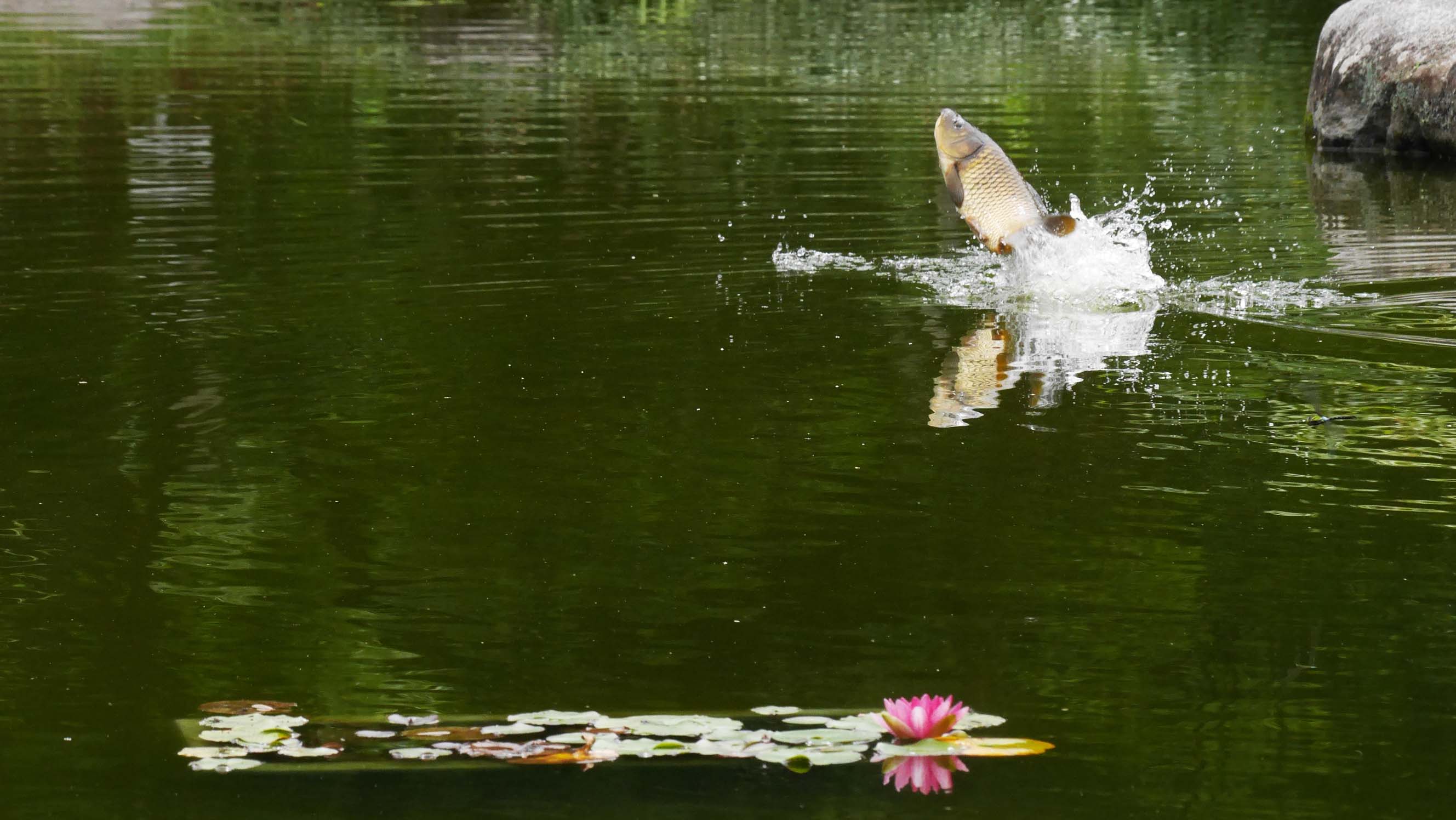 良い所でジャンプしてくれなかった池のコイ。