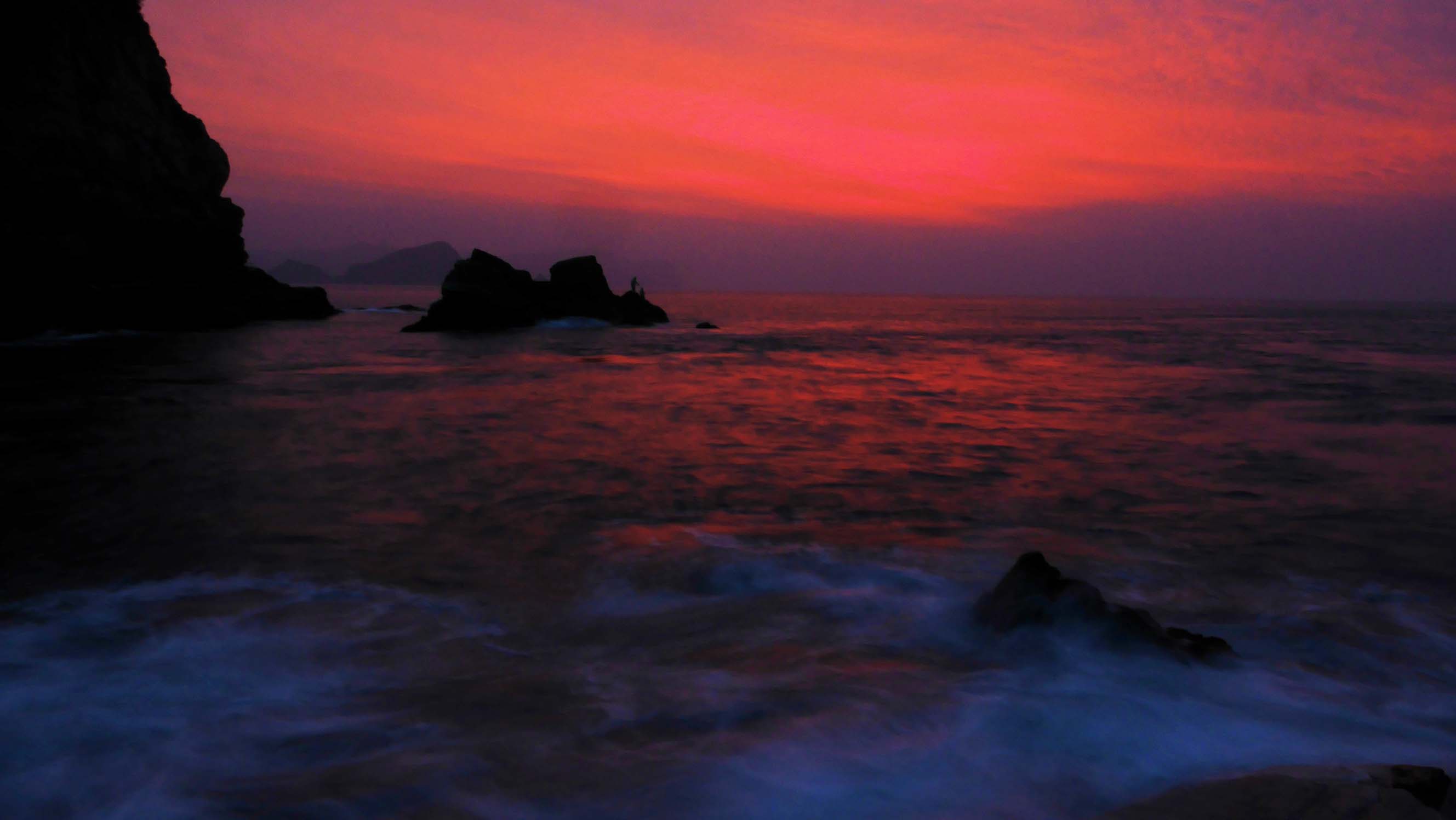 地黒のハナレに釣り人二人。朝焼けの米水津でした