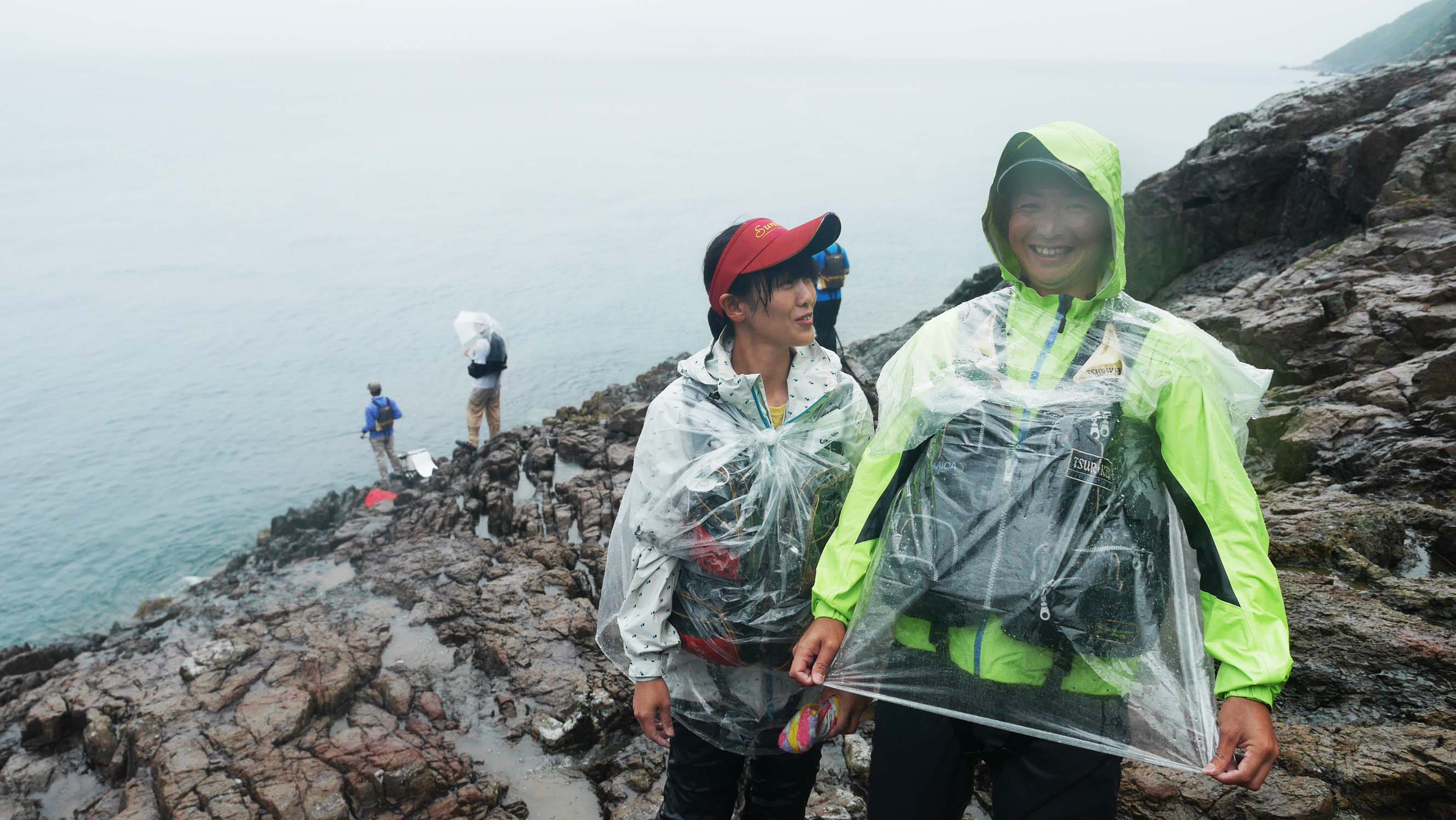 このビニール袋は、弁当殻やゴミなどを入れるために磯へ持ってきたのですが、雨で濡れた方々が次々と袋を使っていきました。ゴミ袋が減ってマジ切れしそうなスタッフもいた様ですが、この処置をしたおかげで風邪などをひかずに済んだのかもしれません。