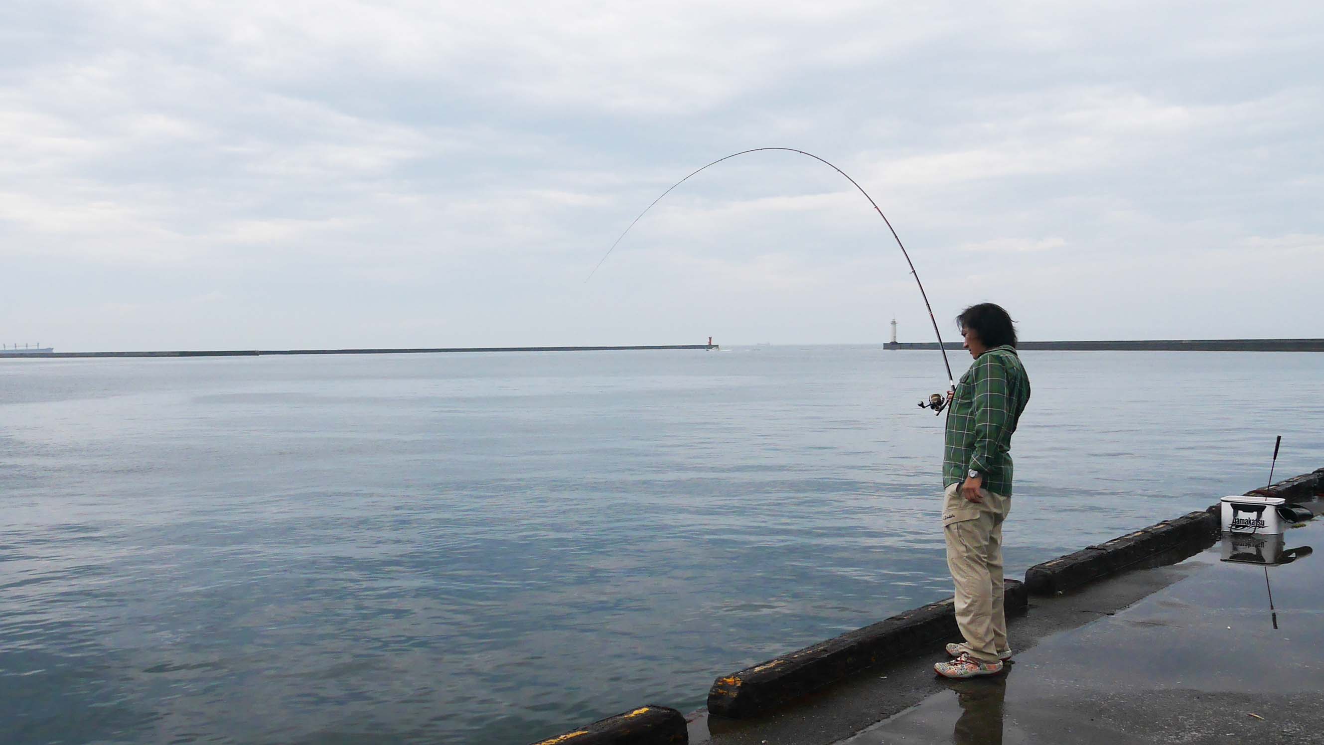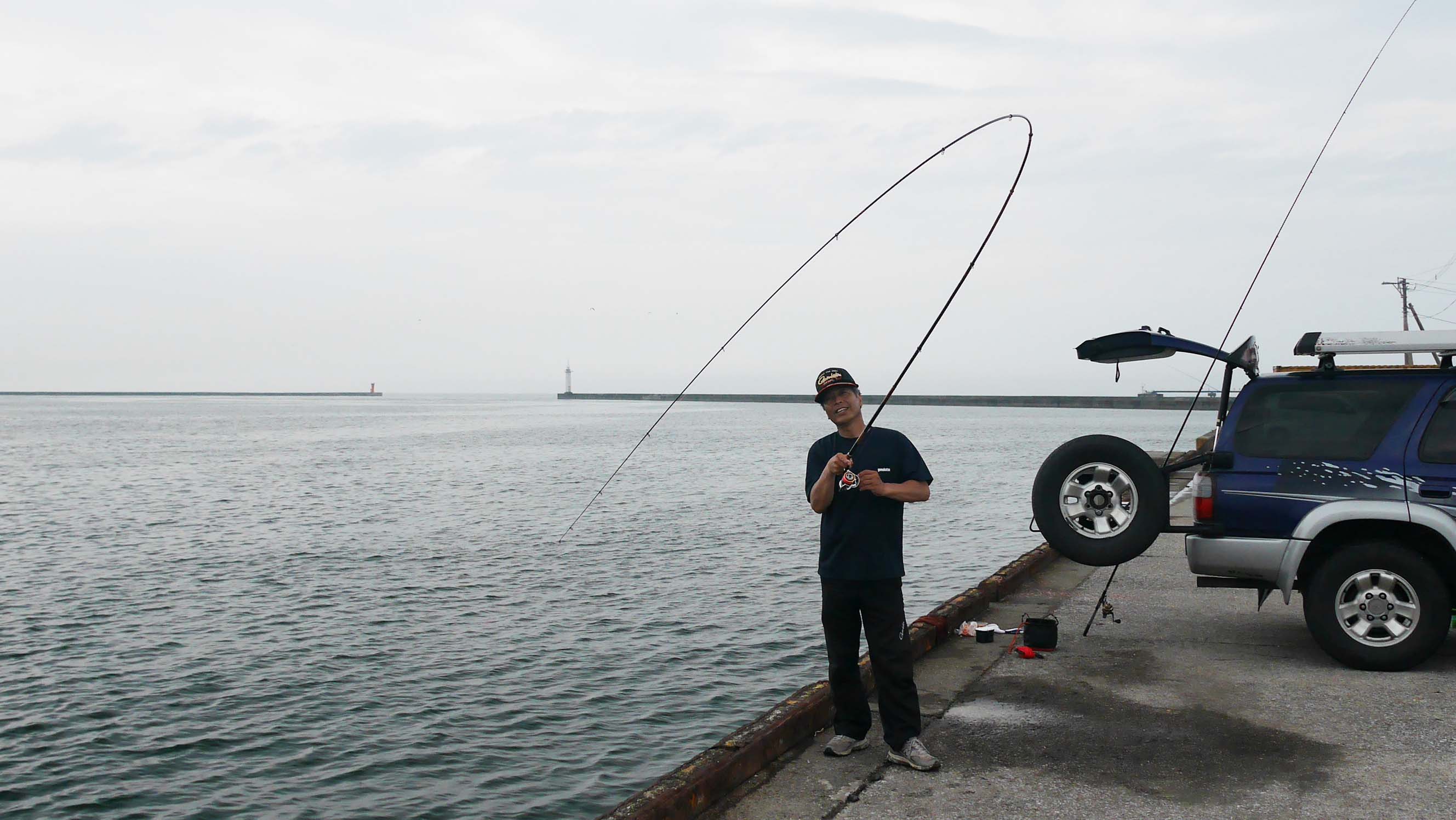 香港から来て、なにも釣らずに帰る訳にもいかないので、南東の風を避けての釣り。