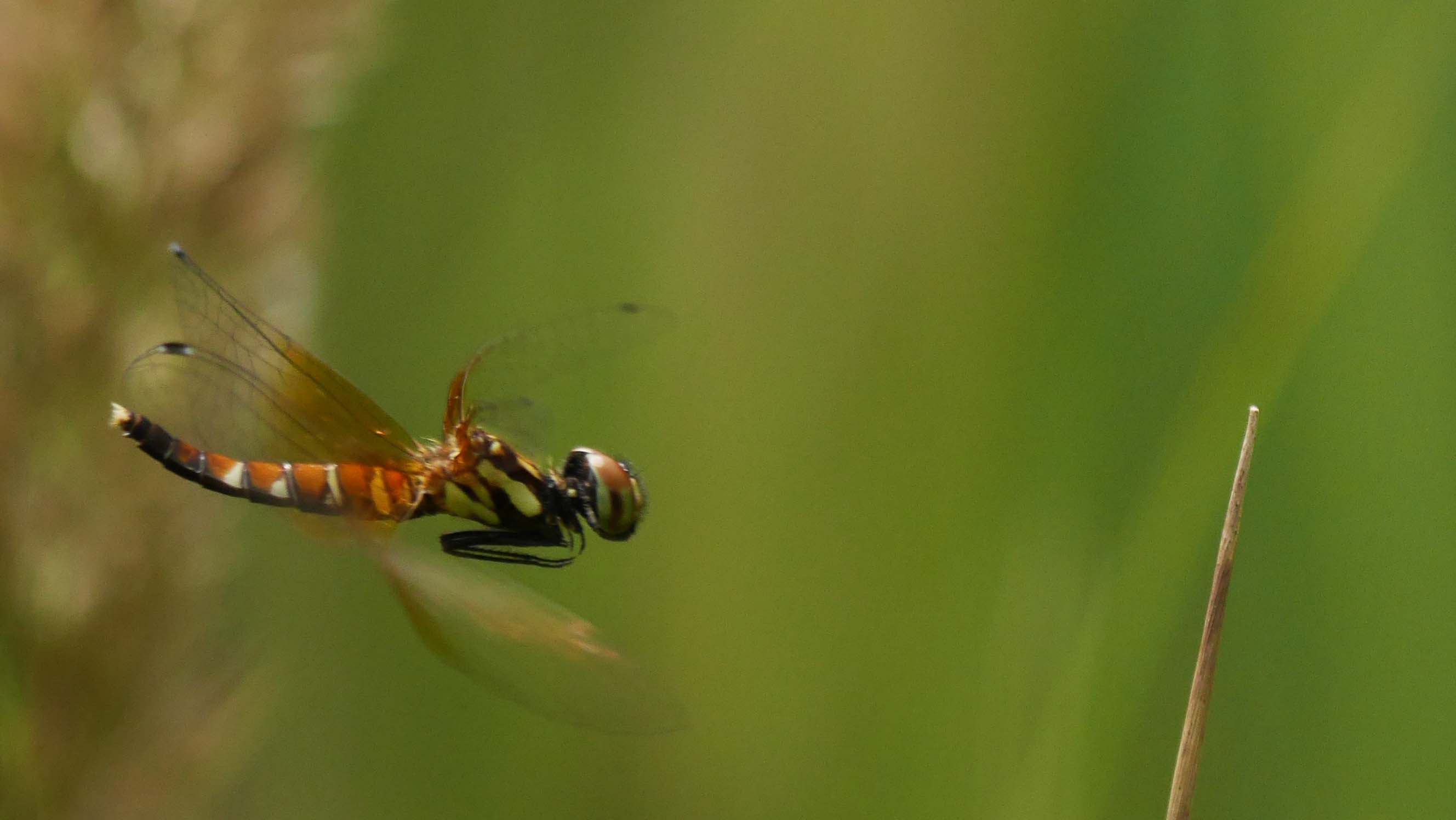このオスは小型のシオカラトンボ?やキイトトンボが近くに来ても直ぐに追い払っていました。よほど気に入った縄張りなのでしょうね。それと気性が超激し~~いです。
