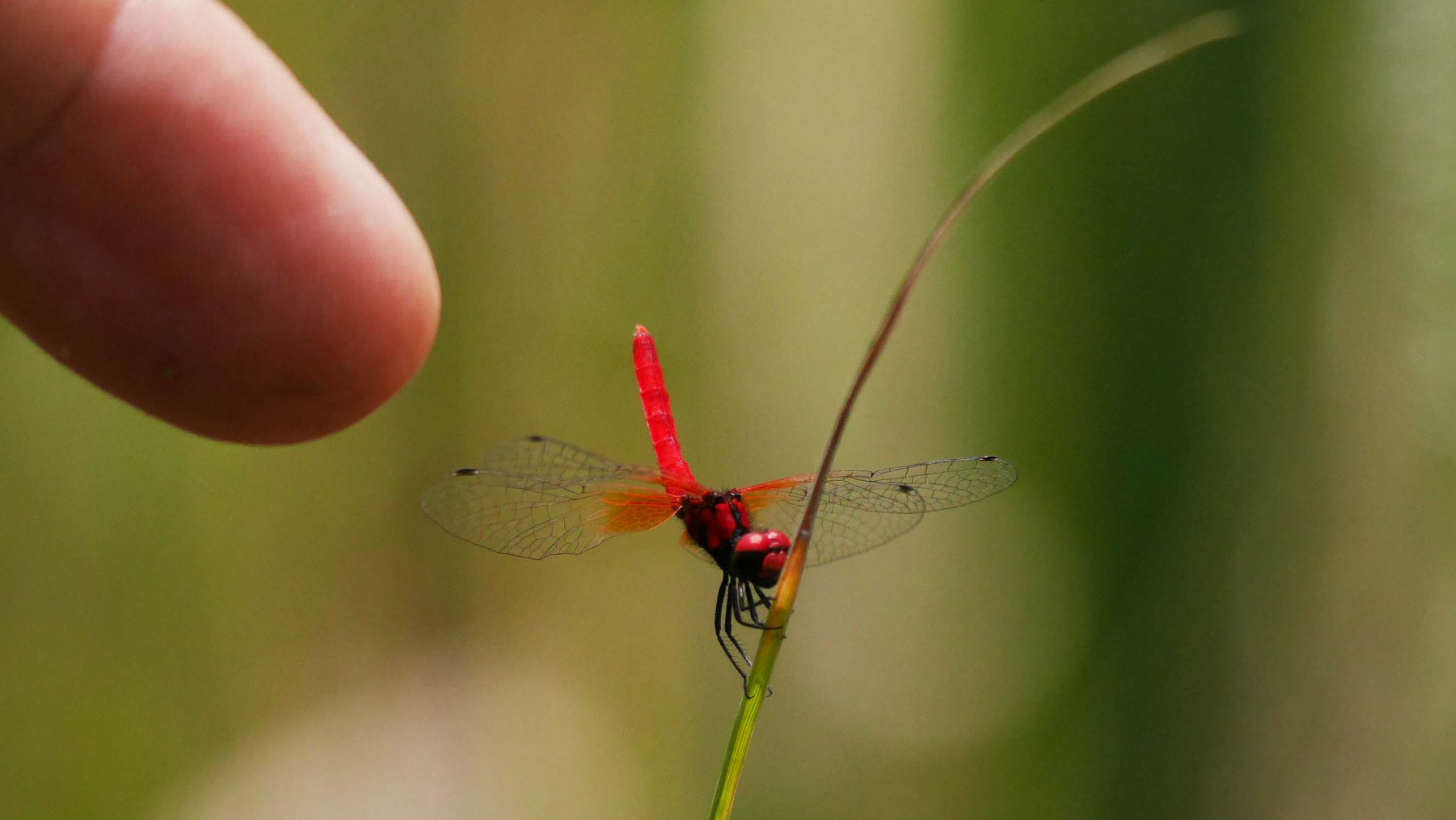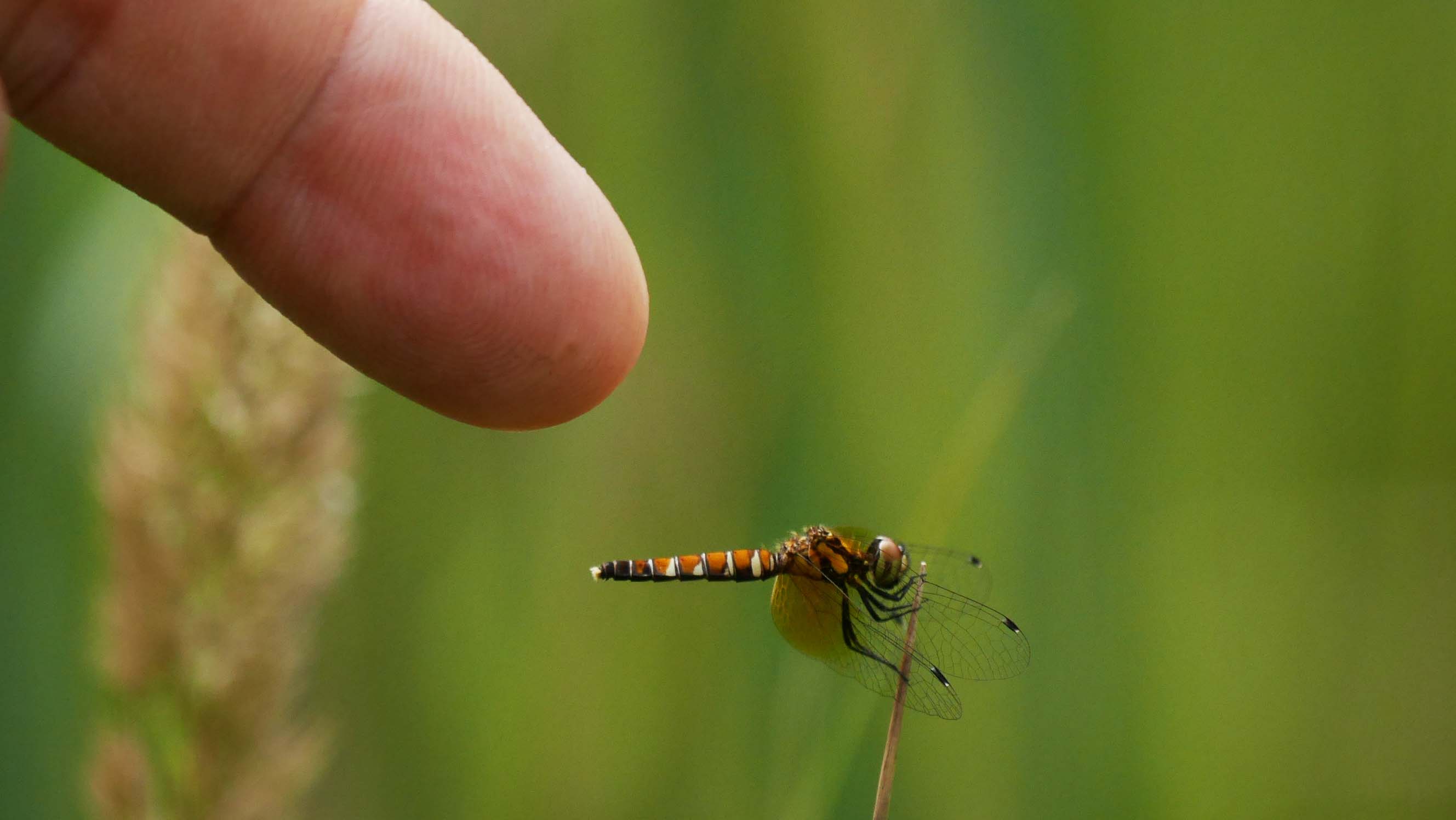 指には驚きません。翅に触れると少しだけ翅を動かす程度の横着さ