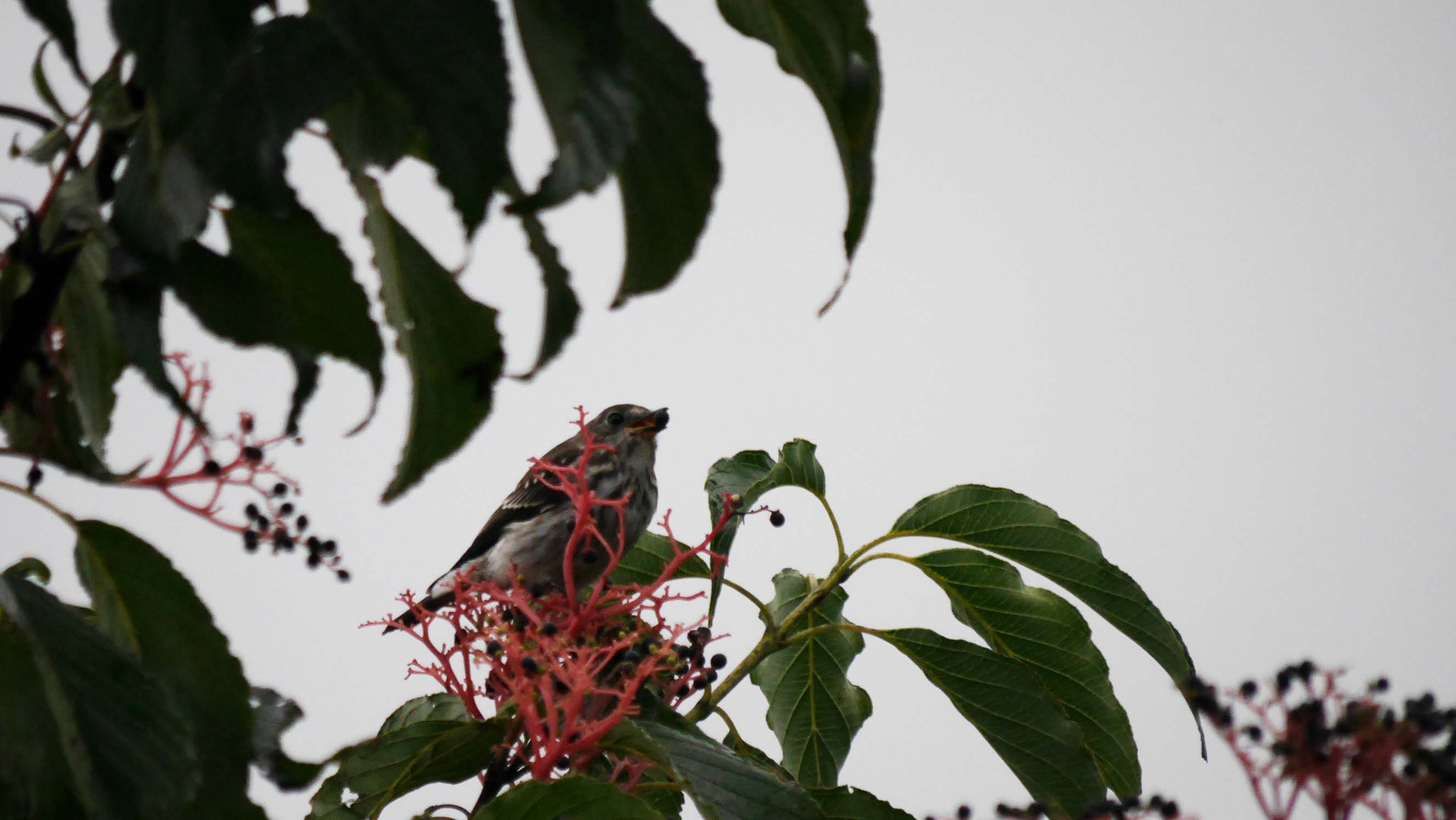 熟れた実を啄む小鳥や、偶然通りかかった小鳥などの証拠写真です。