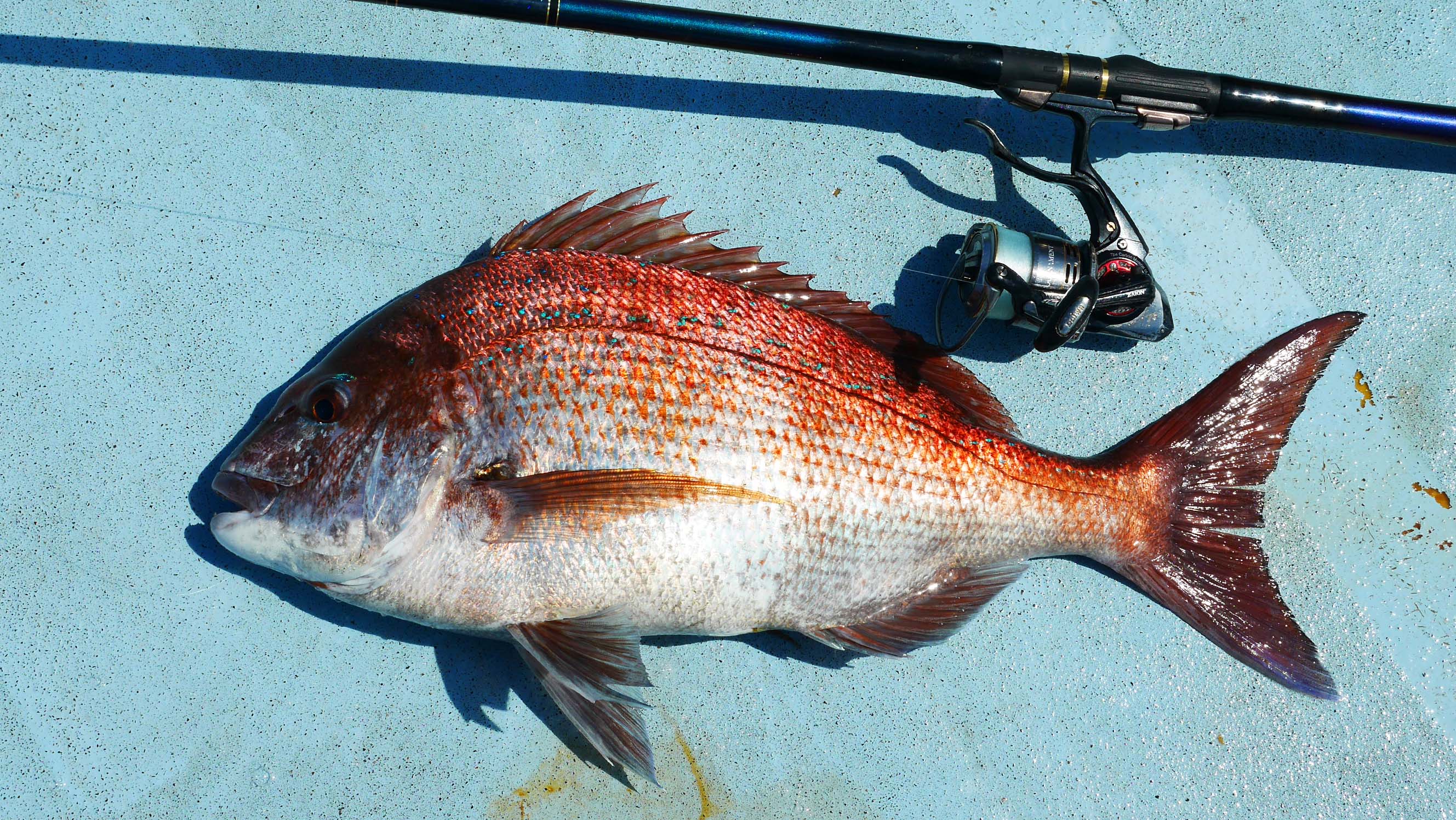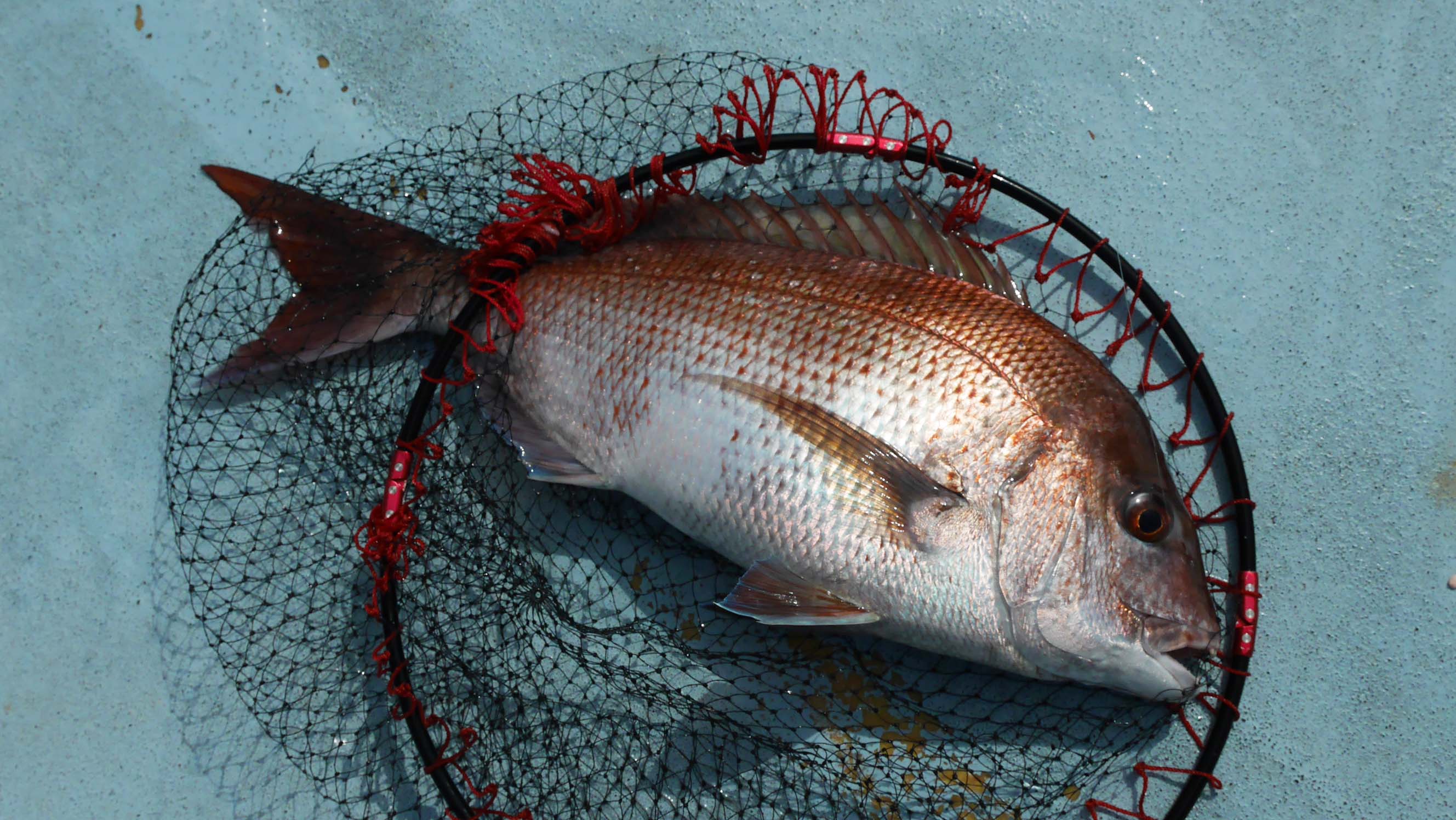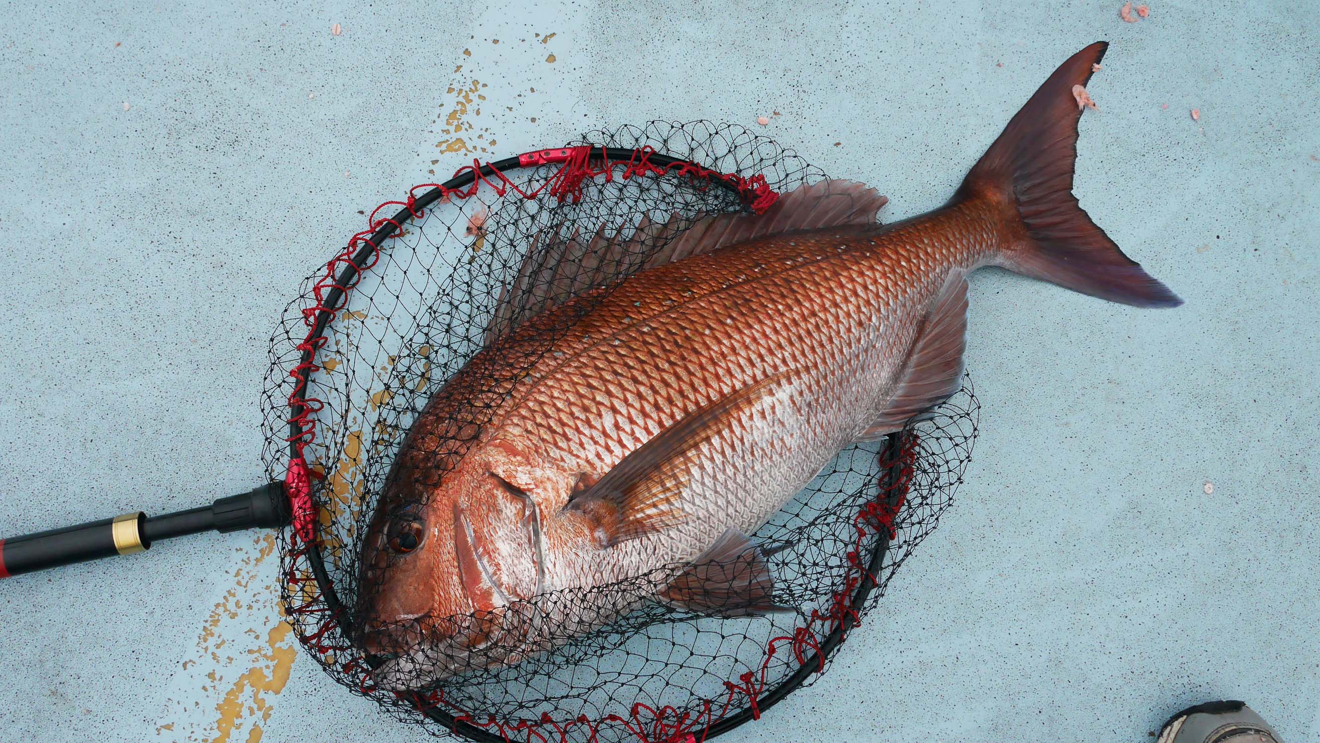 8時52分、第一投で仕留めたマダイ