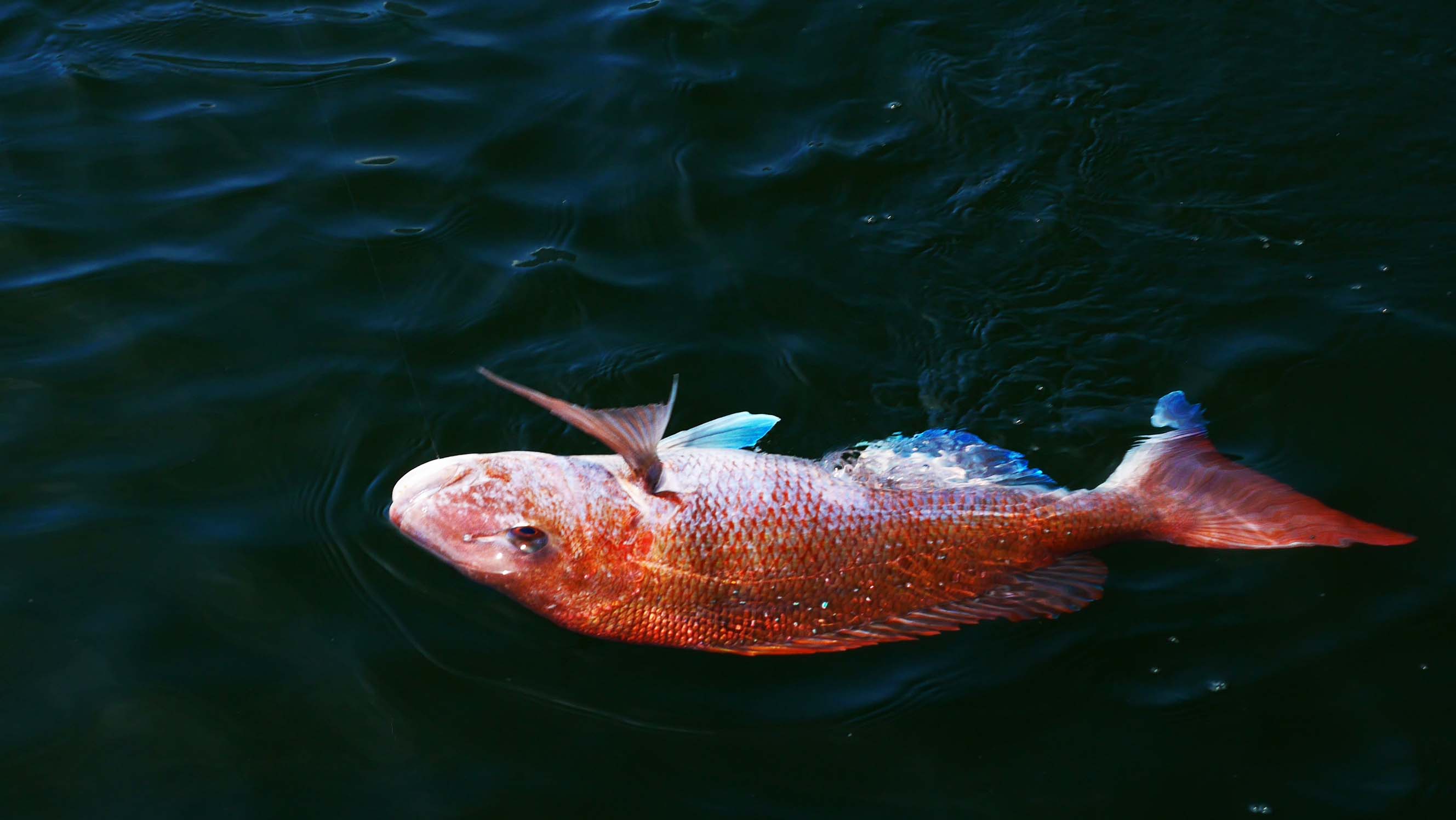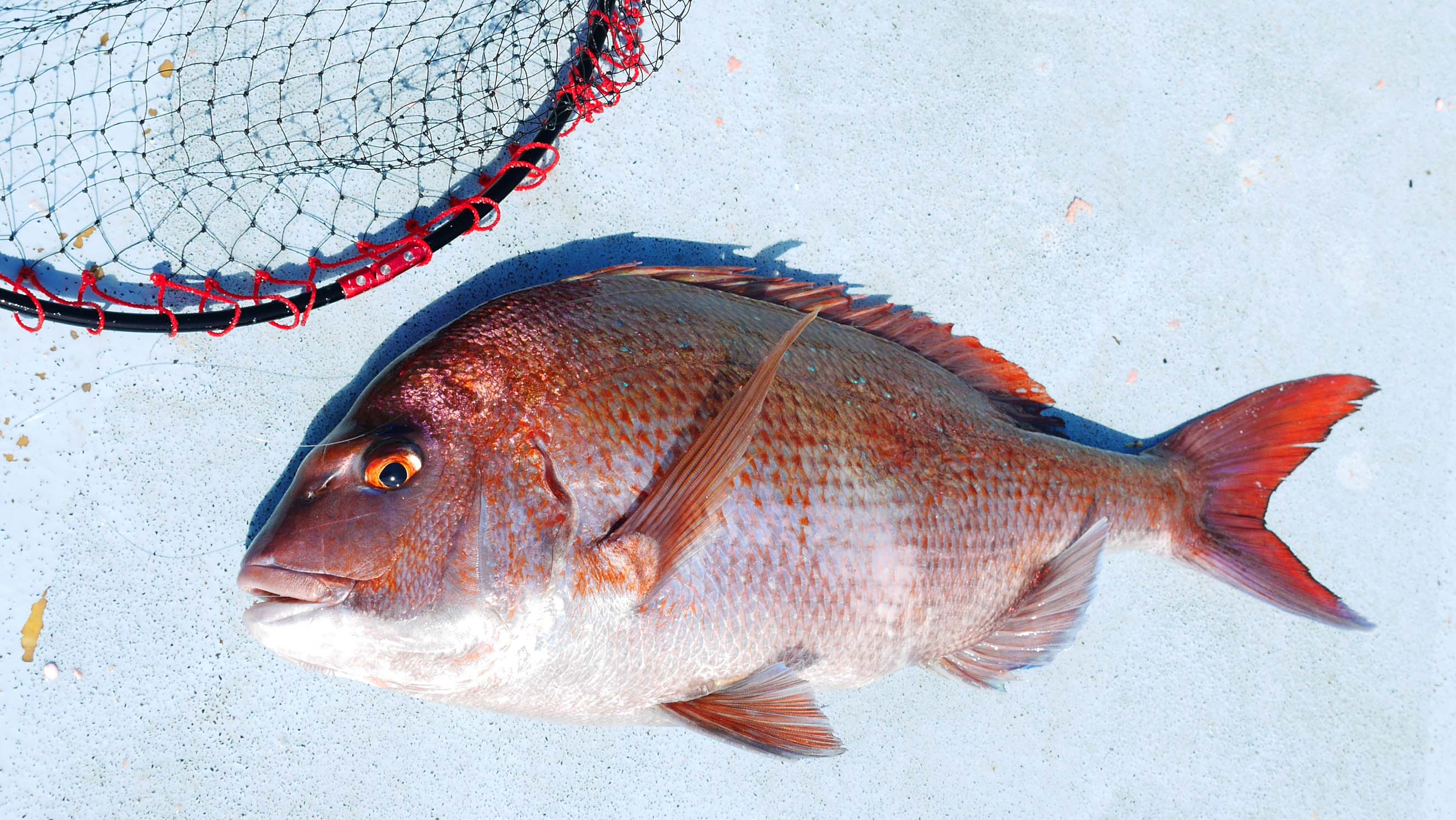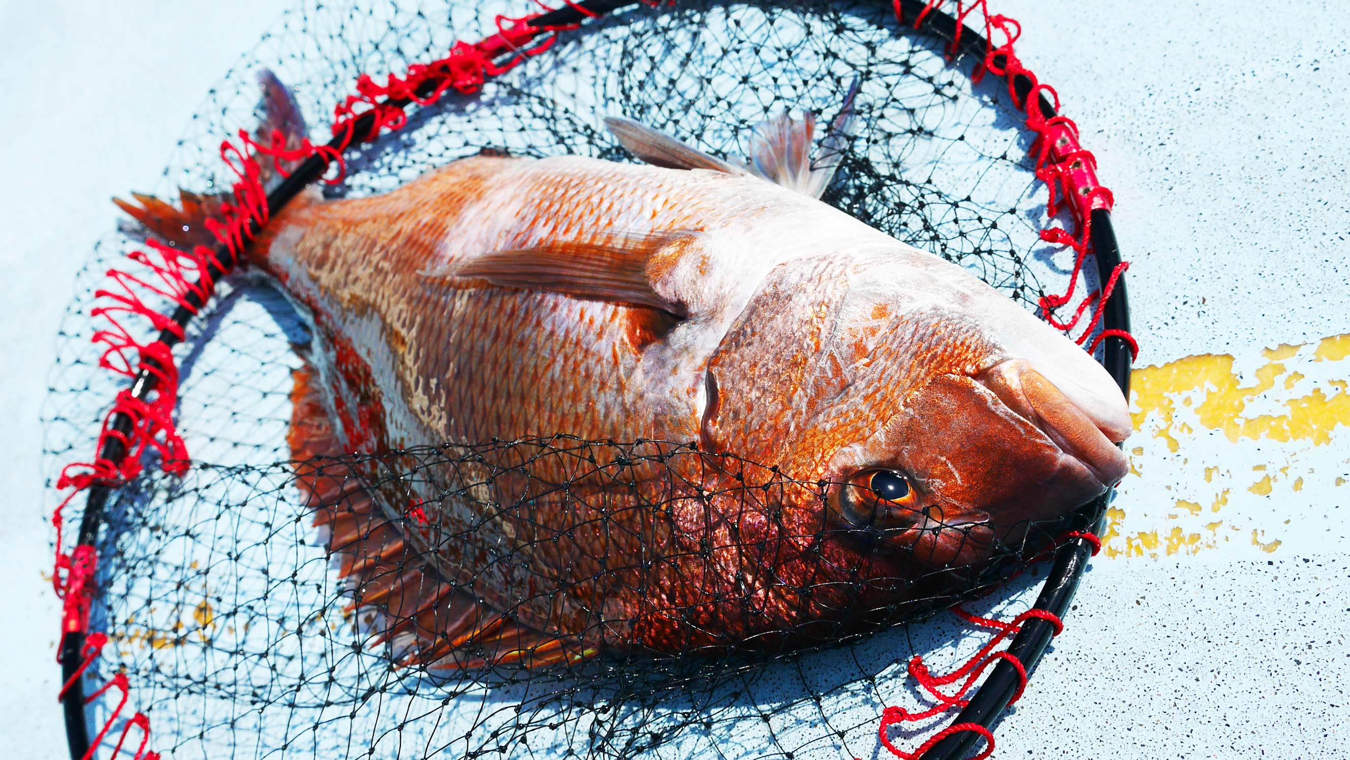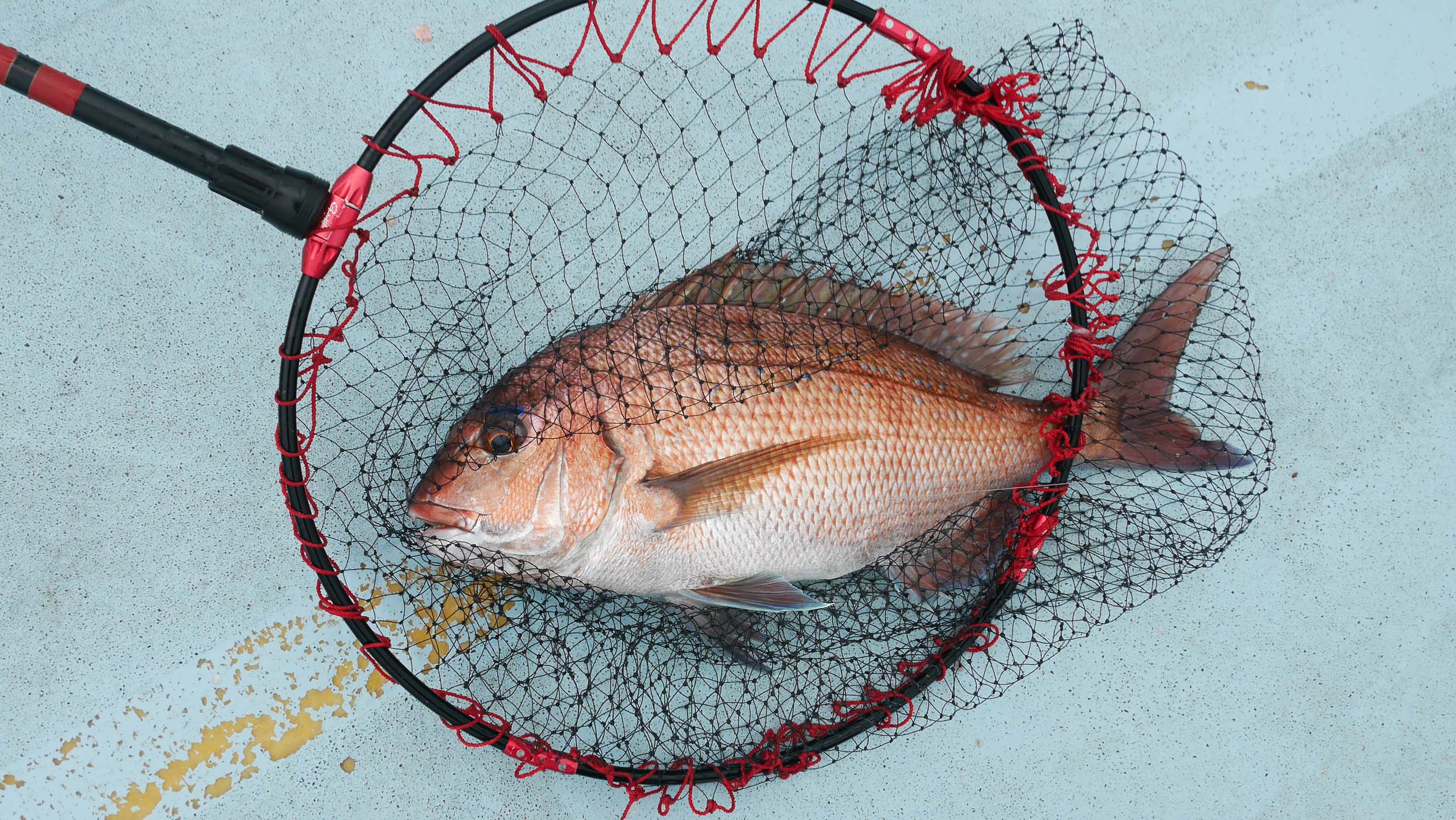 8時52分、第一投で仕留めたマダイ