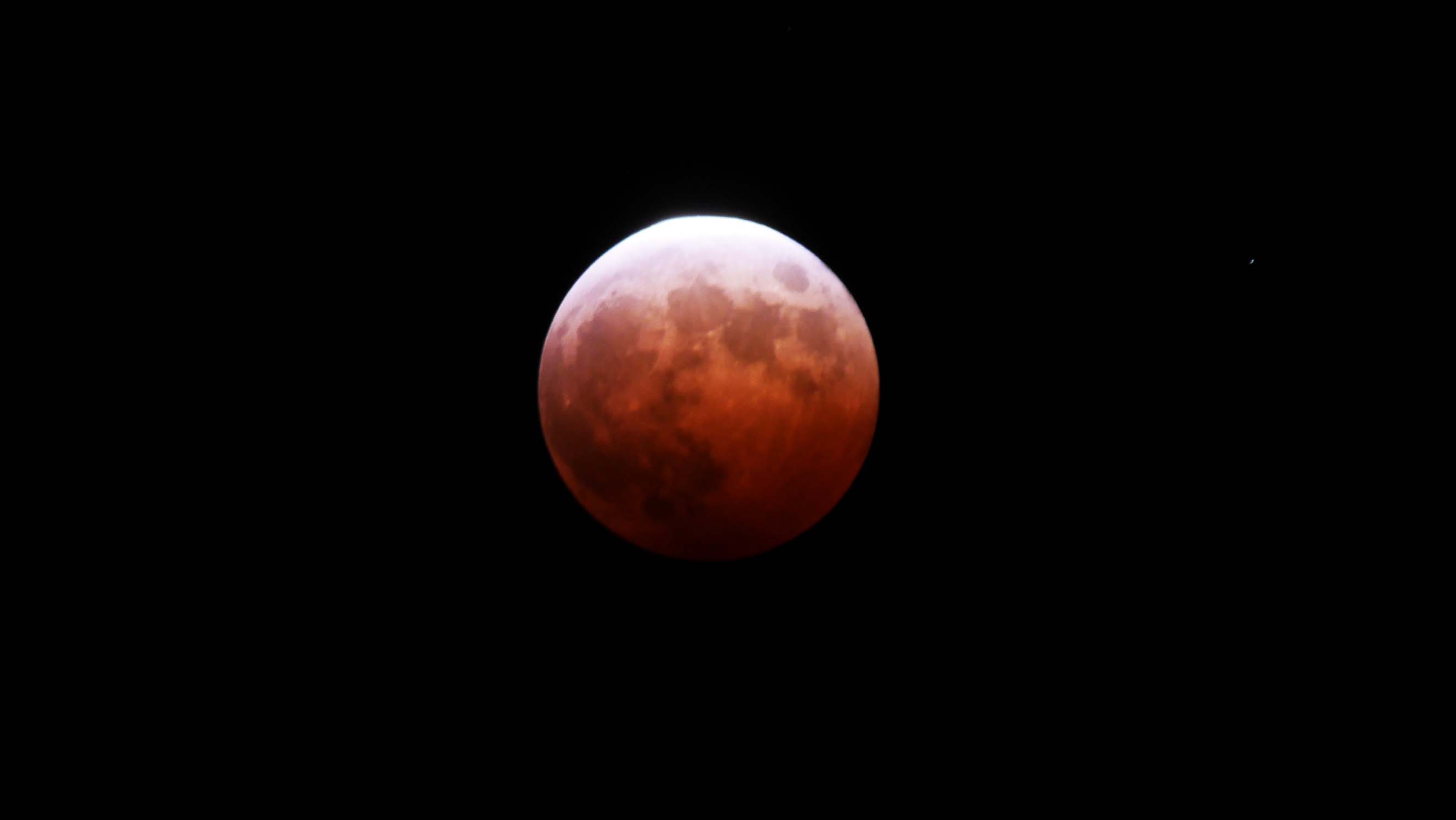 19時24分、皆既月食の最初、赤い月