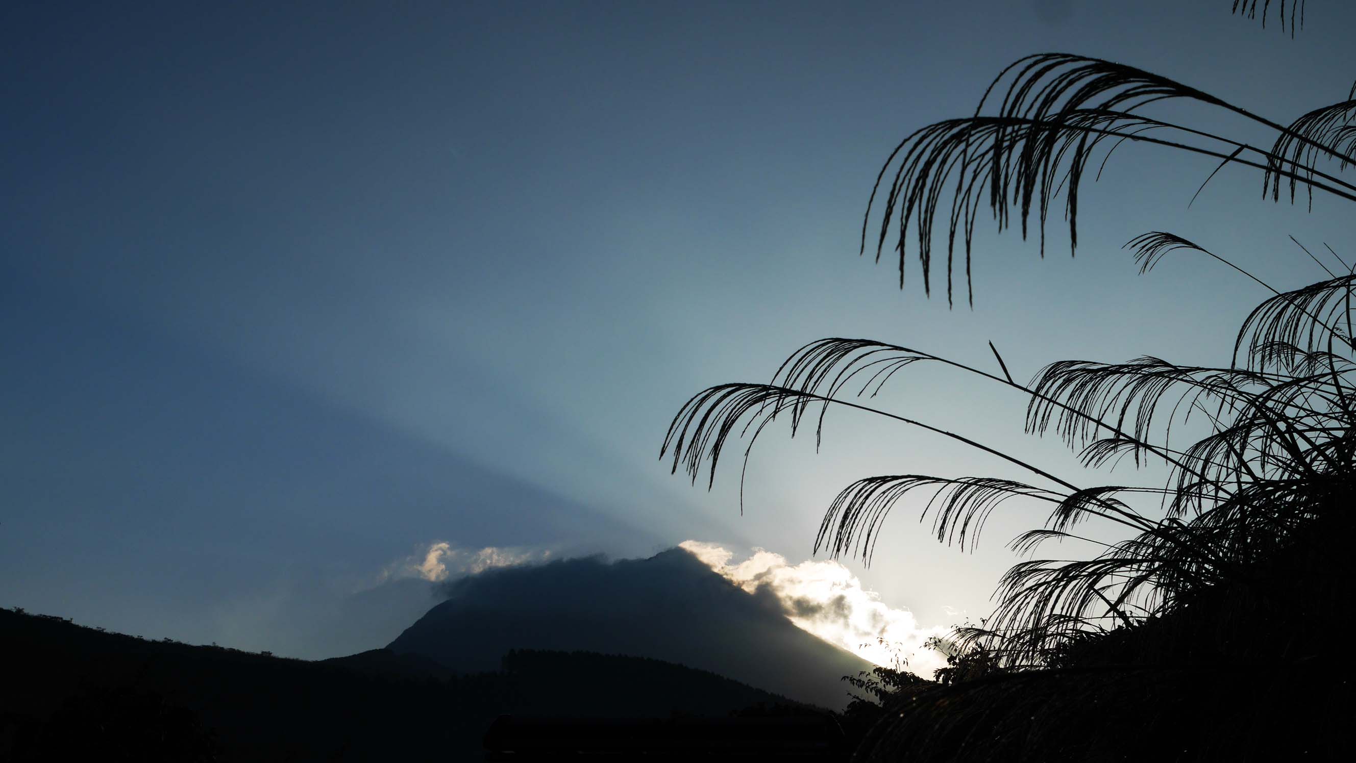 鳥の撮影が終わってから朝日が出る由布岳を