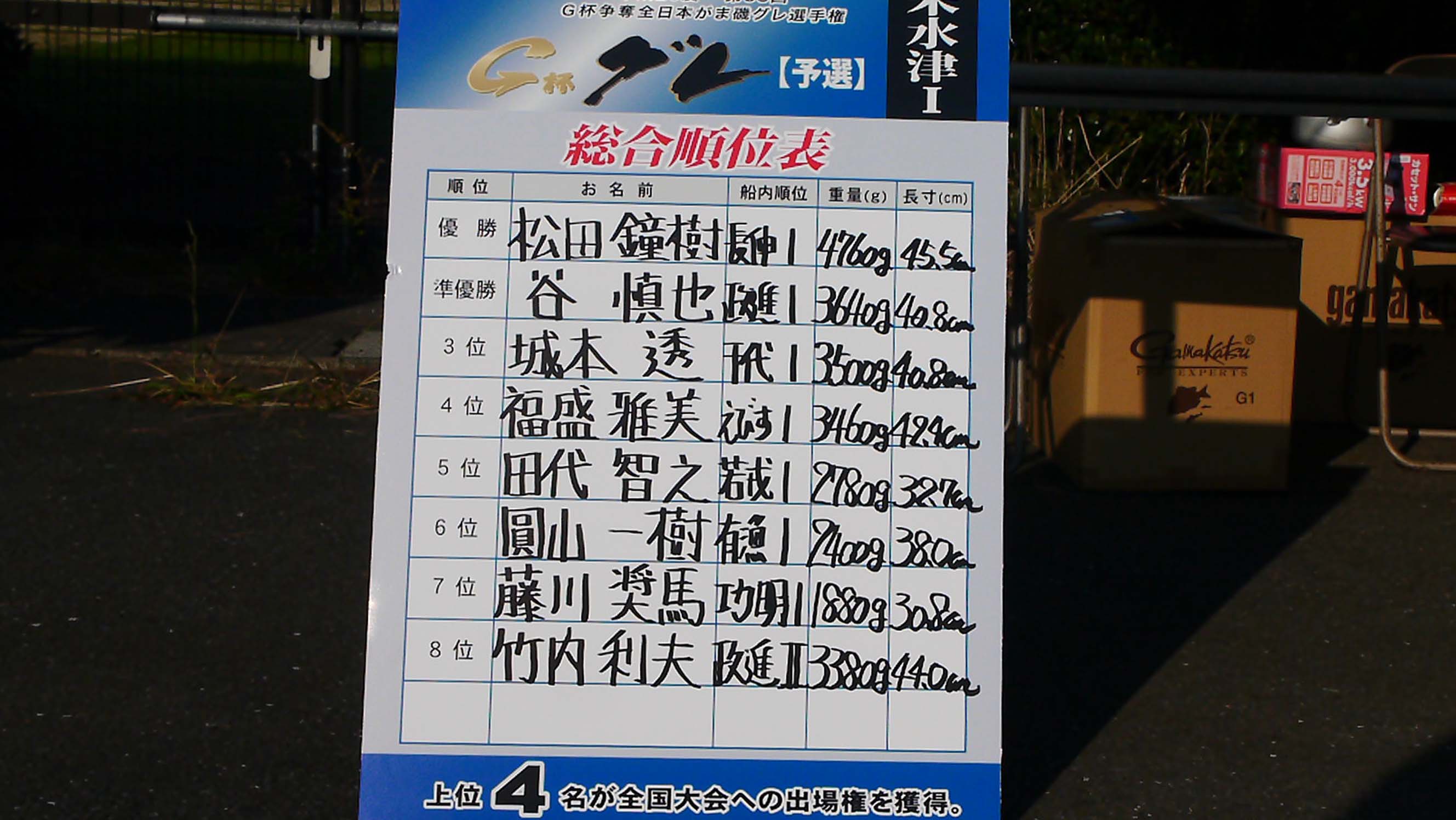 上位4名の方々が全国の切符を手に入れました