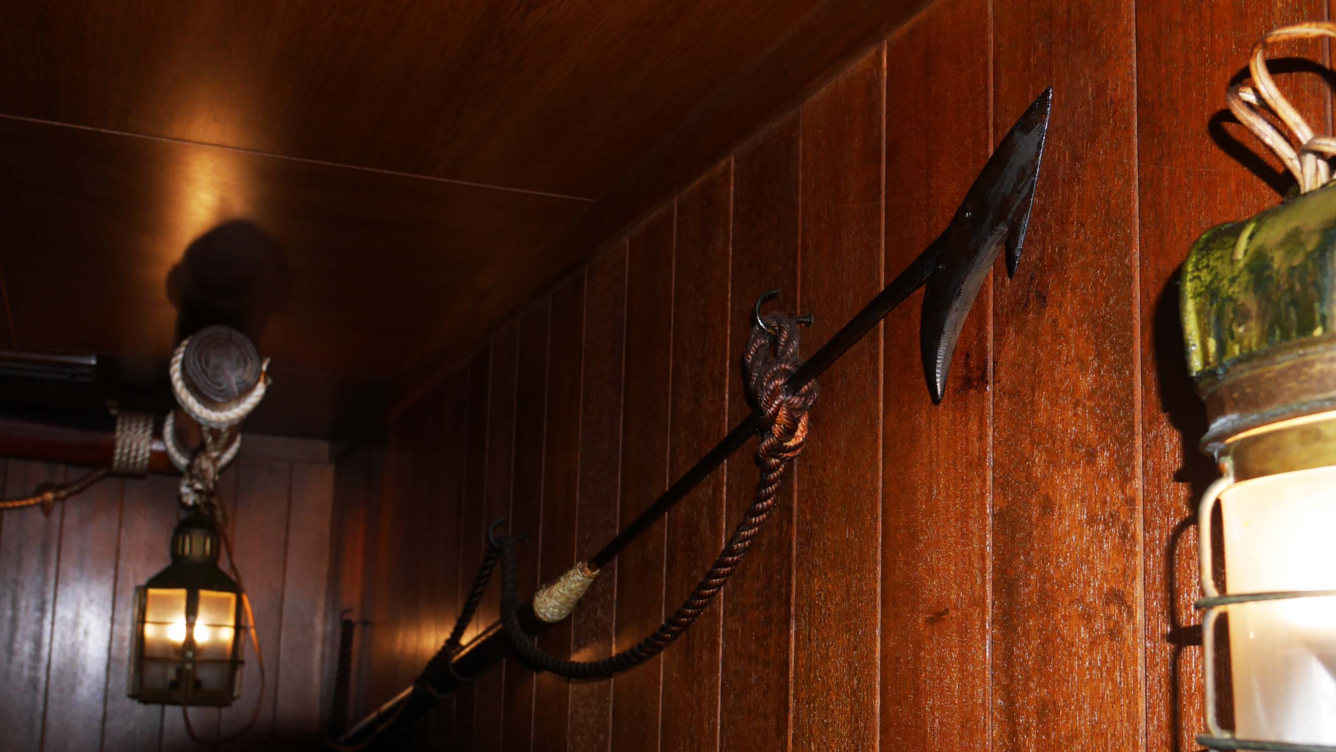 店内には捕鯨用のモリも飾られています