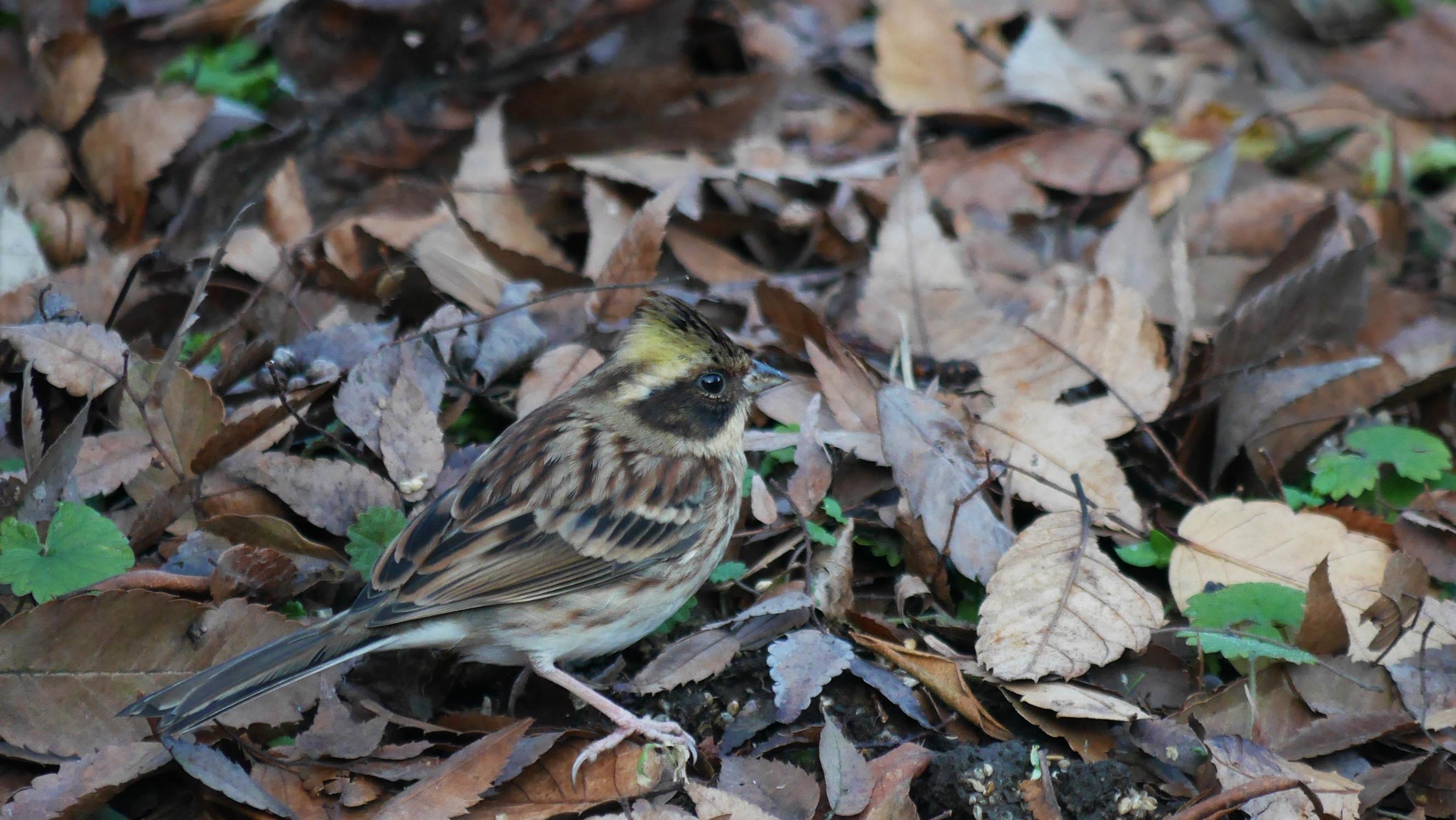 県民の森の餌場に、今年もミヤマホオジロが10数羽で来ています。