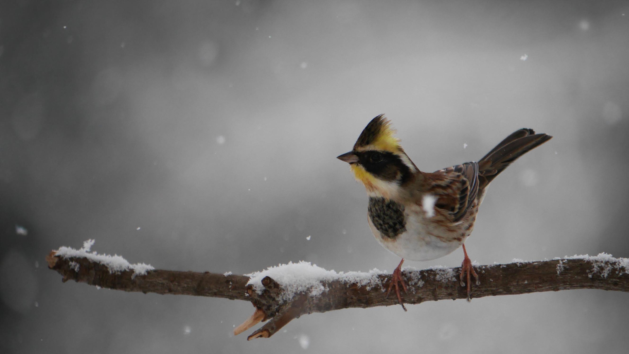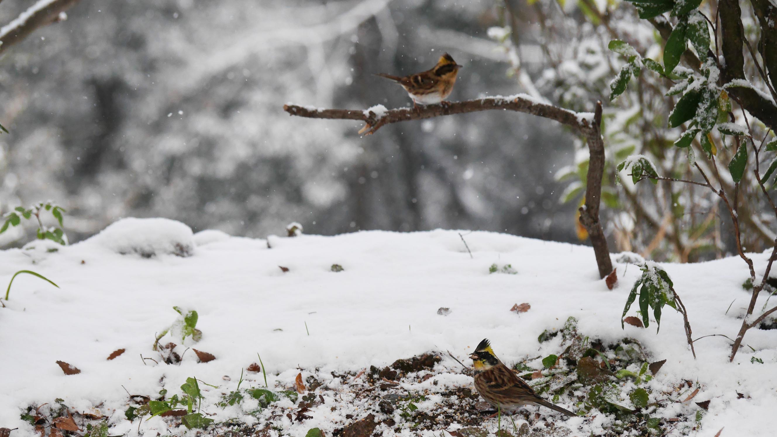 ミヤマホオジロ。ヤマガラハウス周辺の雪は少なかったのですが・・・