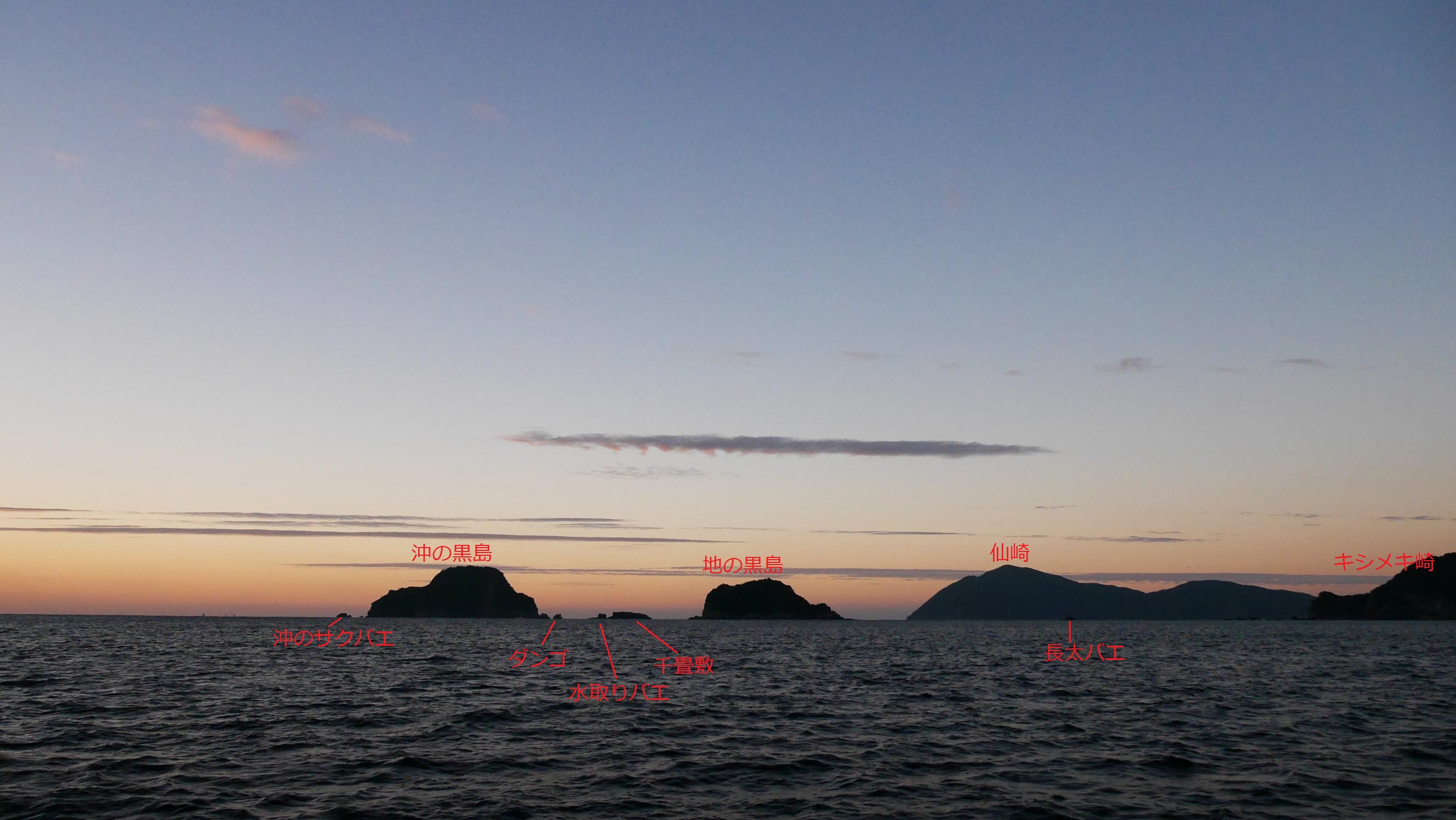 1月7日も日の出前に出港すると、南西方向には雲がほとんどかかっていませんでした。私より長生きしている若戎丸の船長も、この様な雲の少ない空は記憶にないほど珍しいとか・・・そんな訳でキシメキ崎から沖黒方面までの朝空を切り取ったのです。