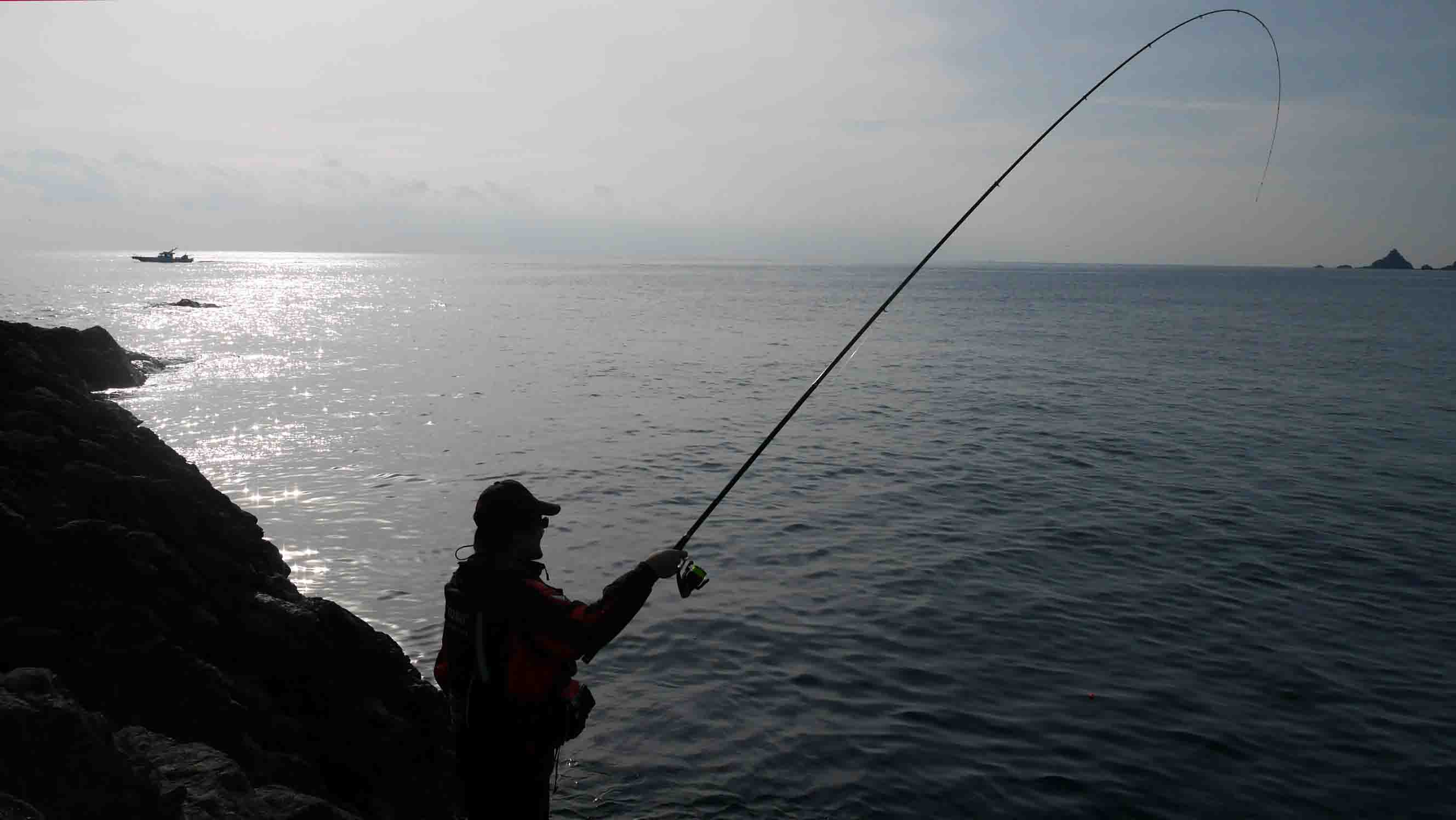竿は時々曲がります。グレが喰うタナは1ヒロ~2ヒロ(当日の海水温15.9℃)