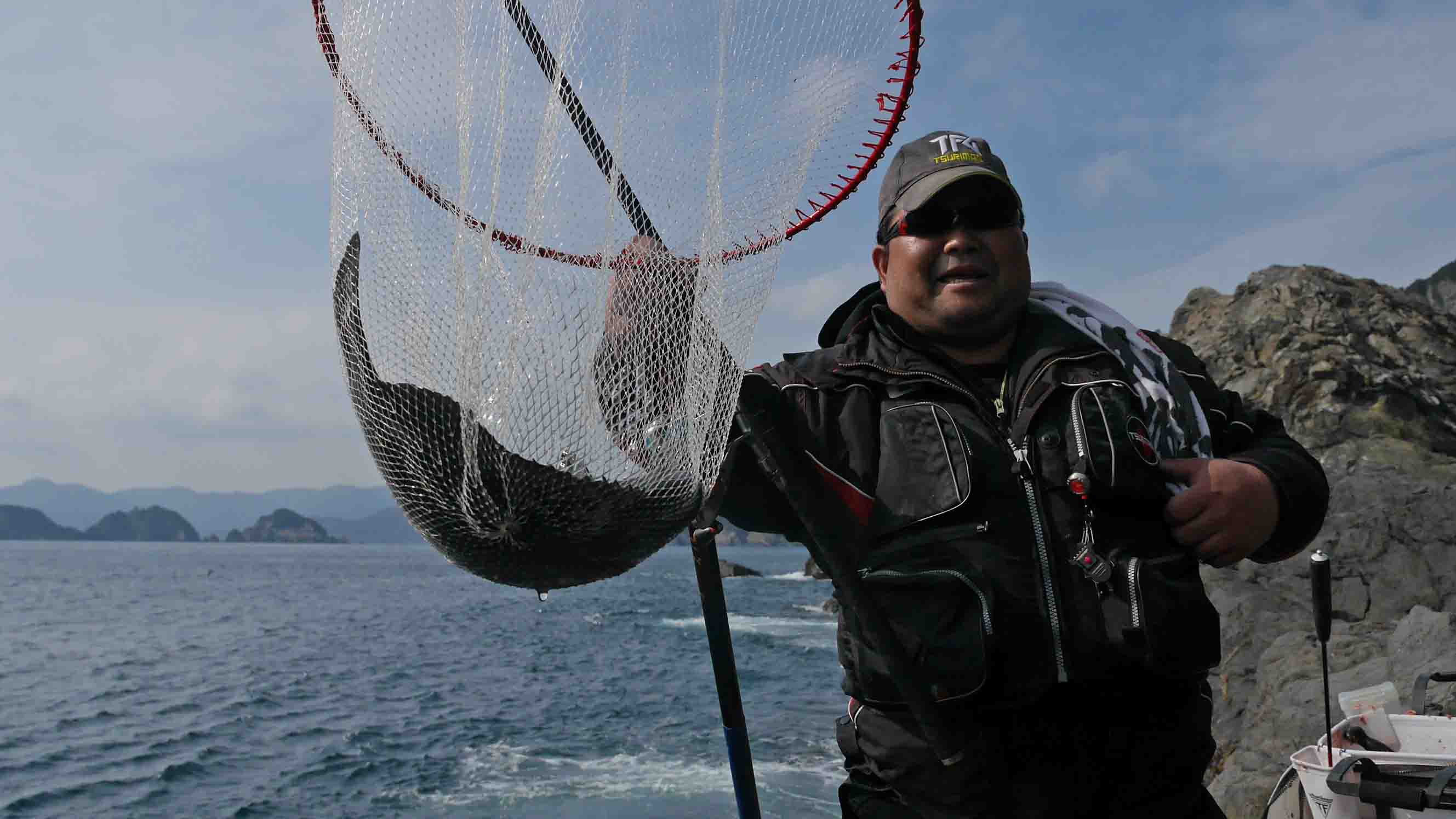 船長の好意で上がった磯は、前渡礁者2名が瀬替わりするという“白浜の中”でした。場所が広いので4人で上り、私は一番奥のポイントで竿を振りました。潮の流れは前方の“サズリ”方向からかなり強く当てており、前渡礁者が瀬替わりする理由が分りました。