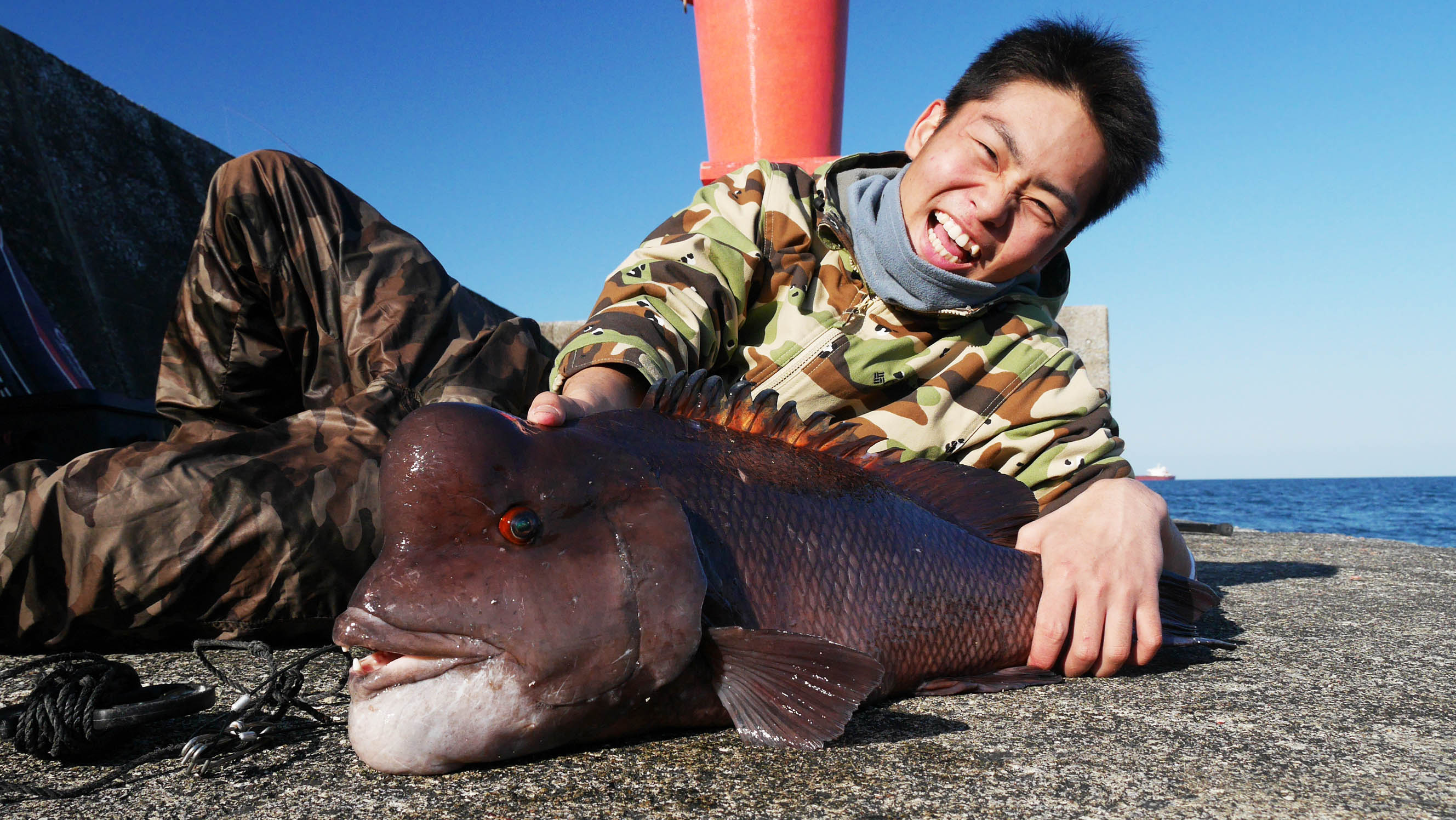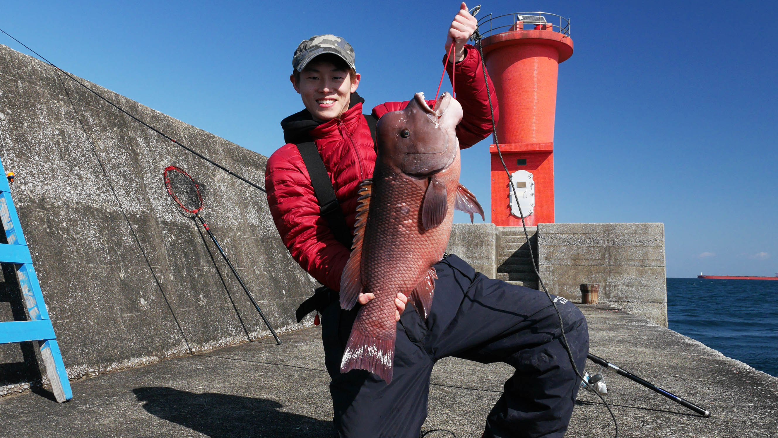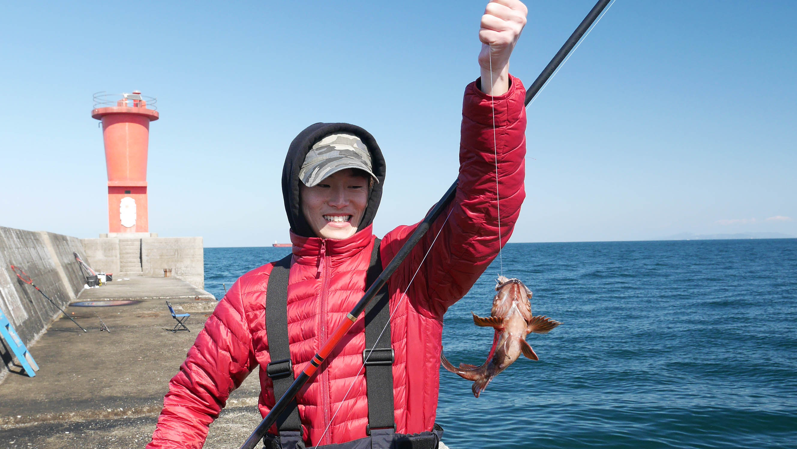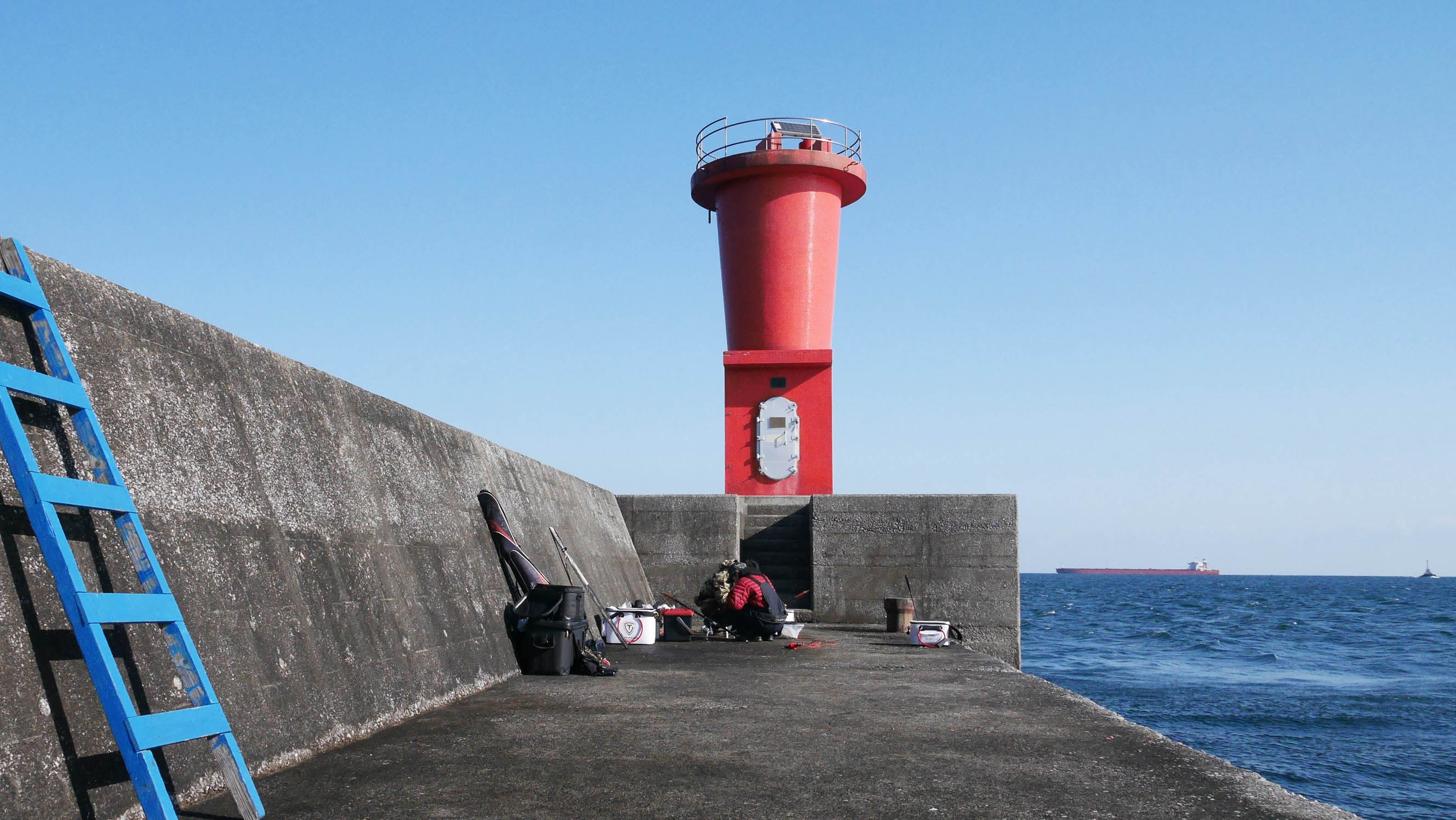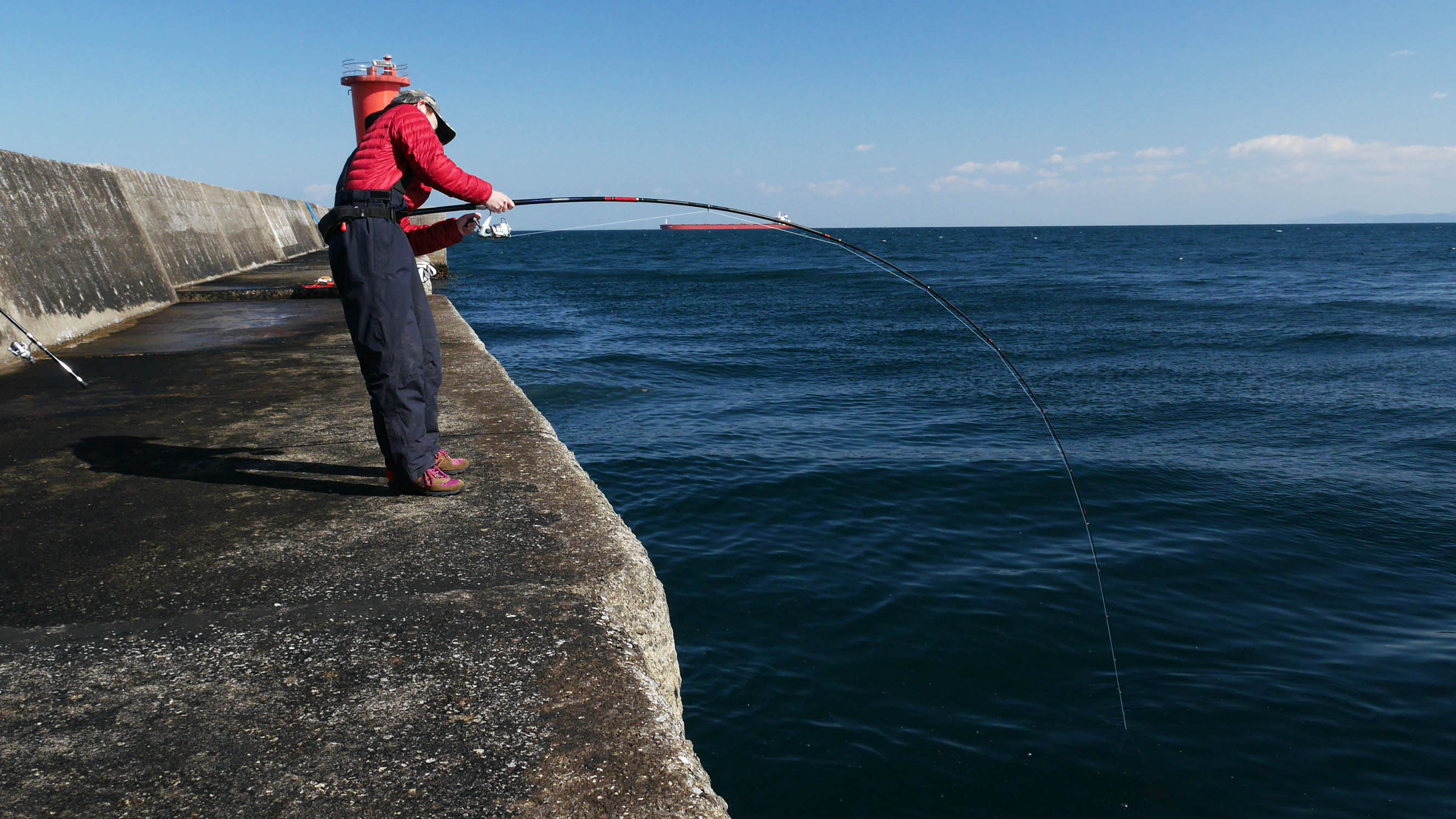 場所は沖一文字の赤灯台に近い所で、DVDのカンダイ取材をした場所です。