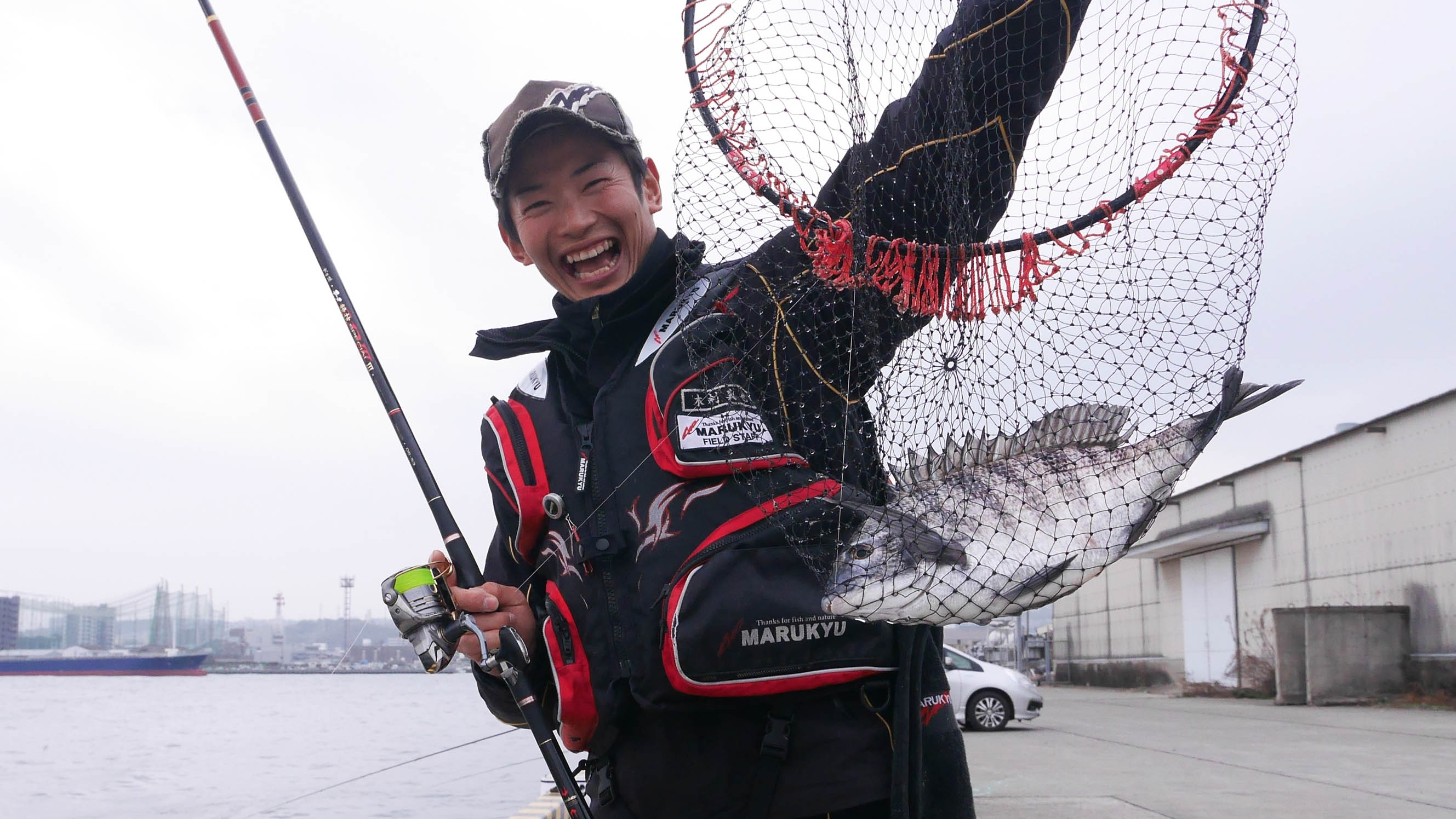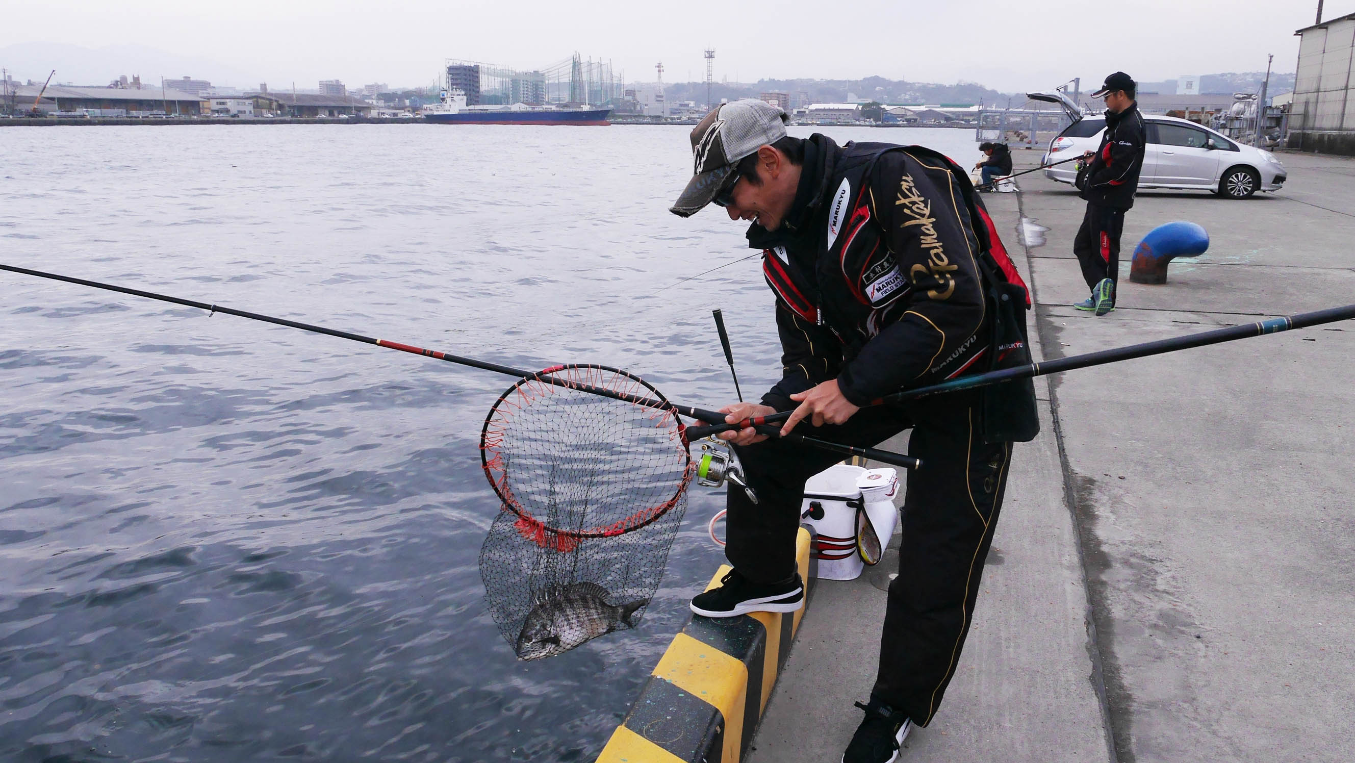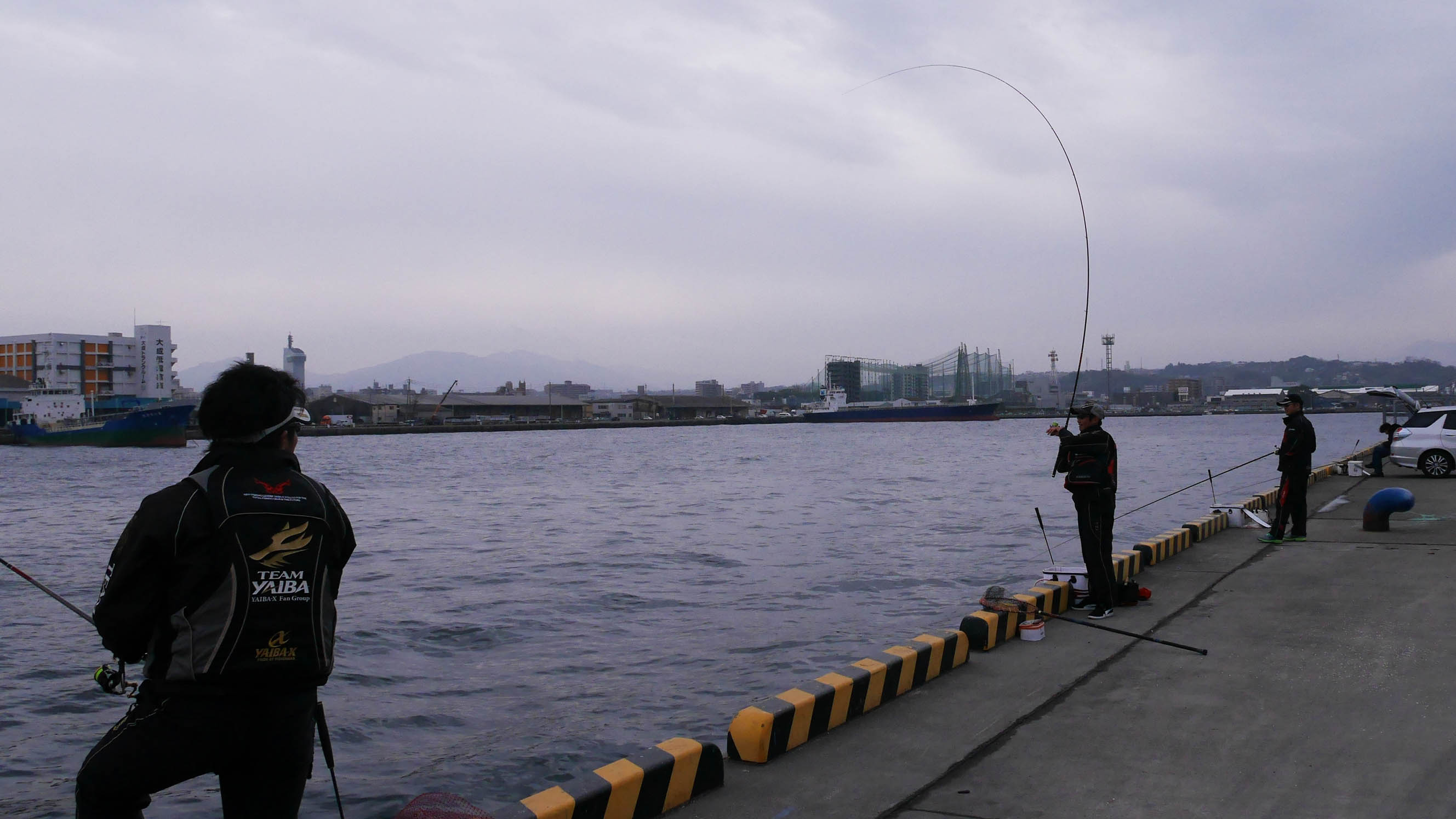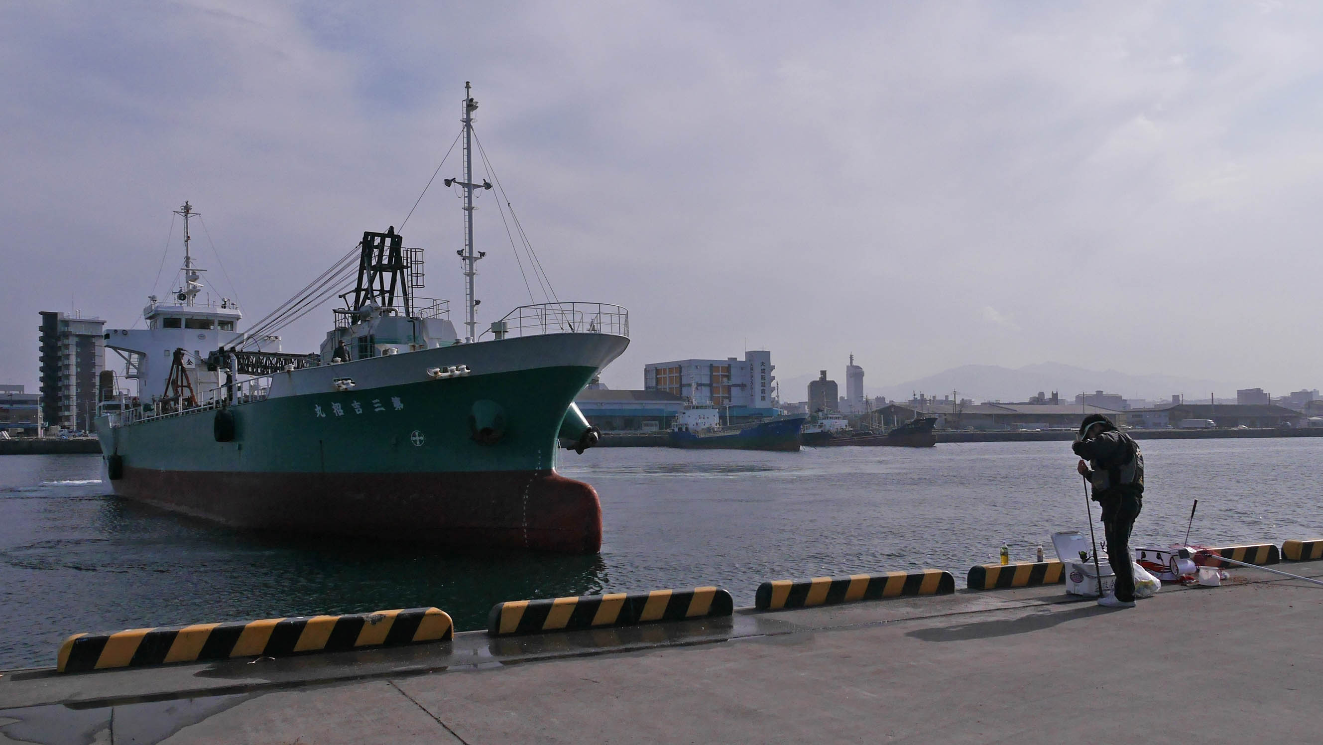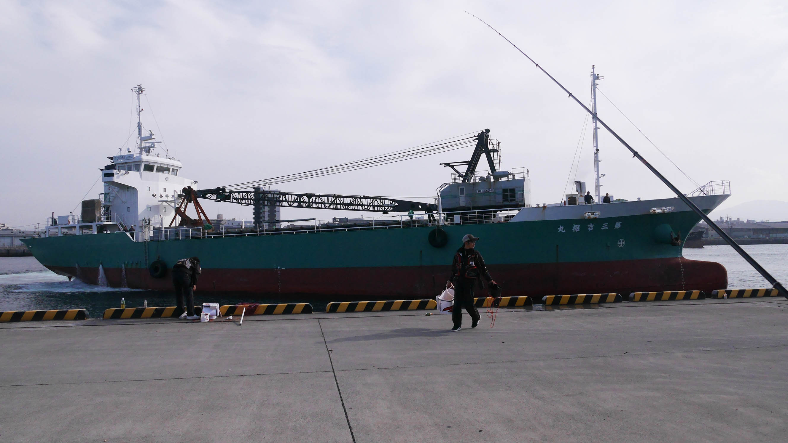 納竿と同時に貨物船の着岸