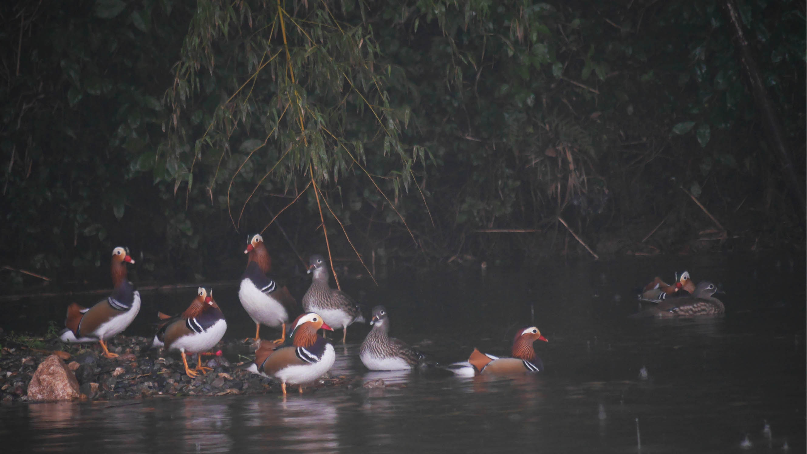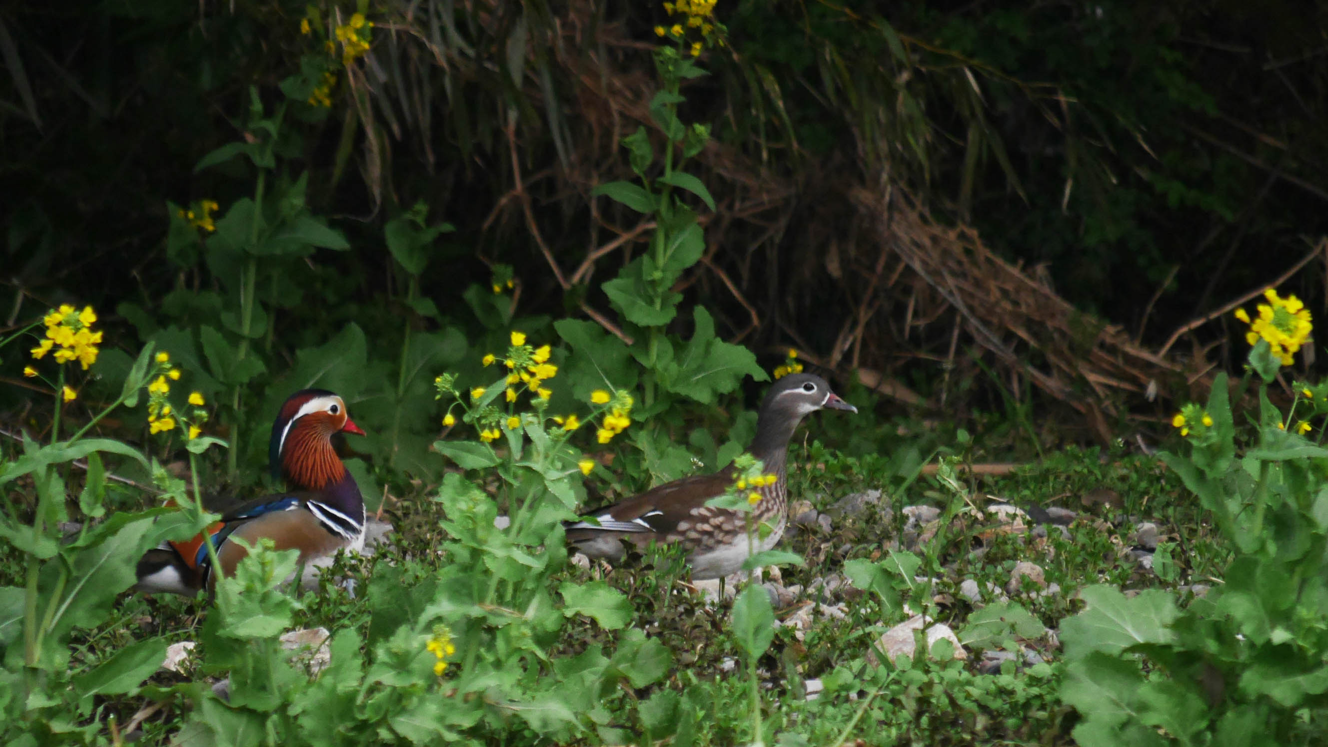北国へ旅をしているオシドリたち、運が良ければまだまだ見る事が可能です。