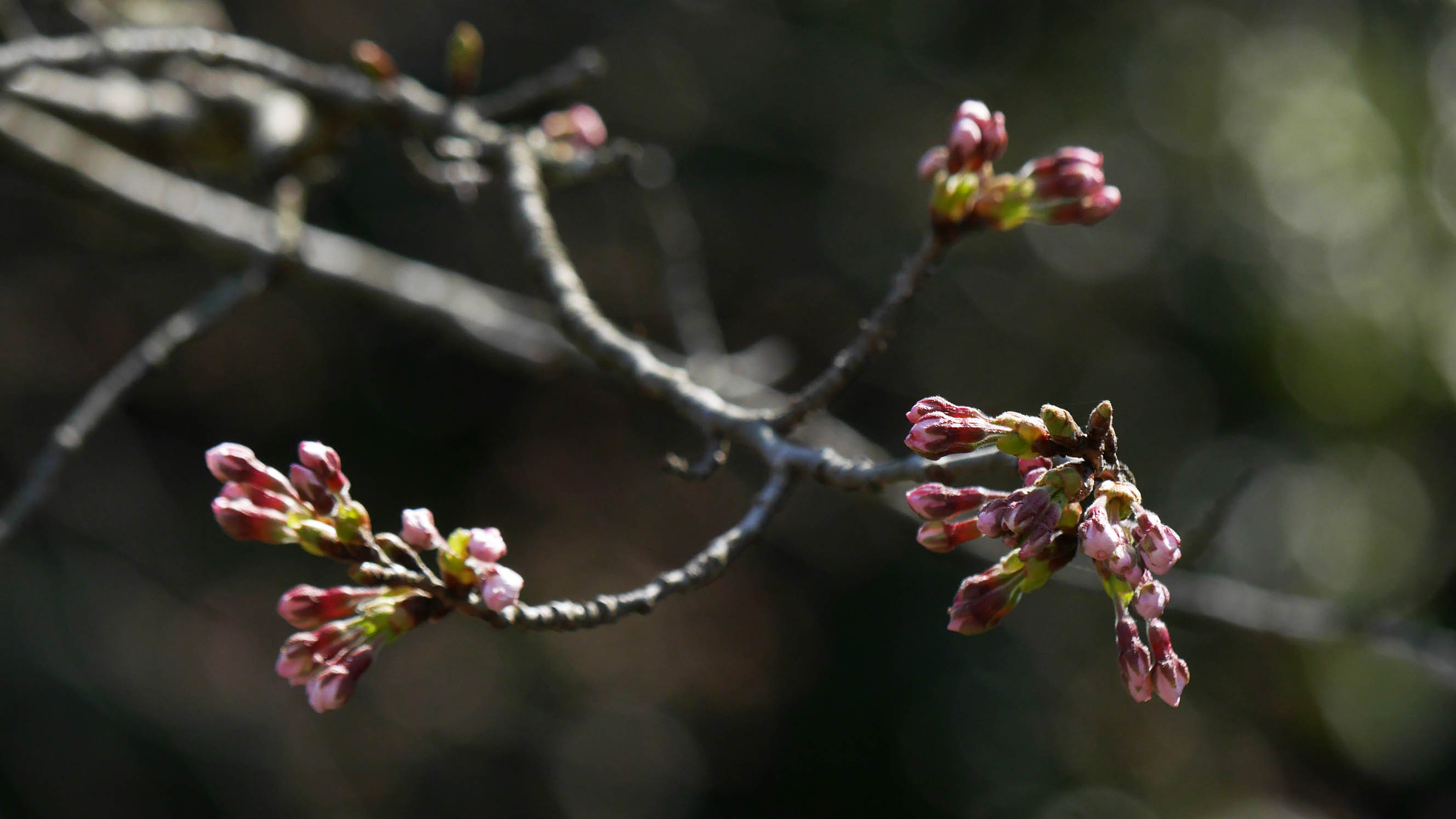 他の品種の桜は順調ですが、ソメイヨシノだけは1~3輪の開花が見られる程度。
