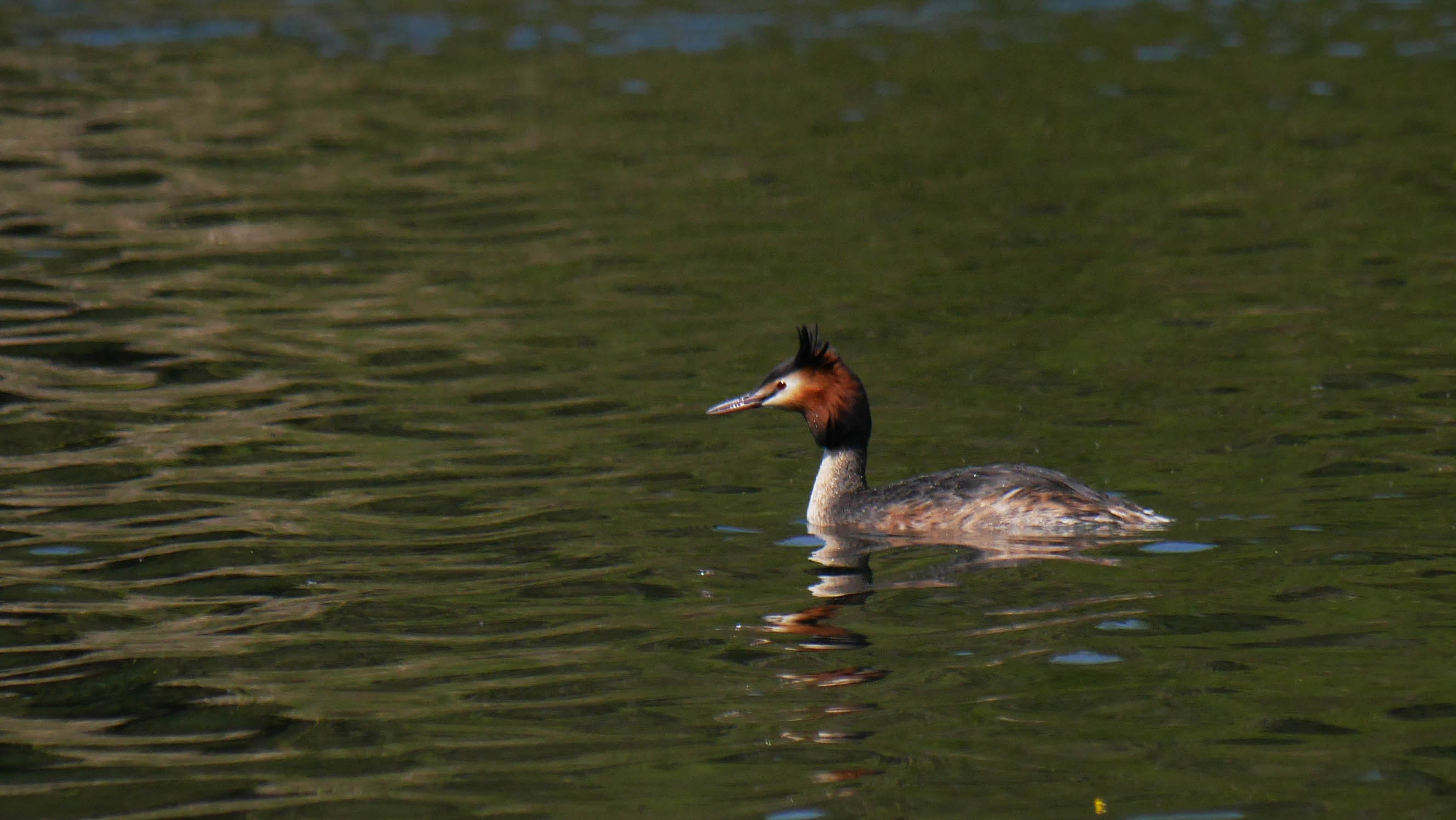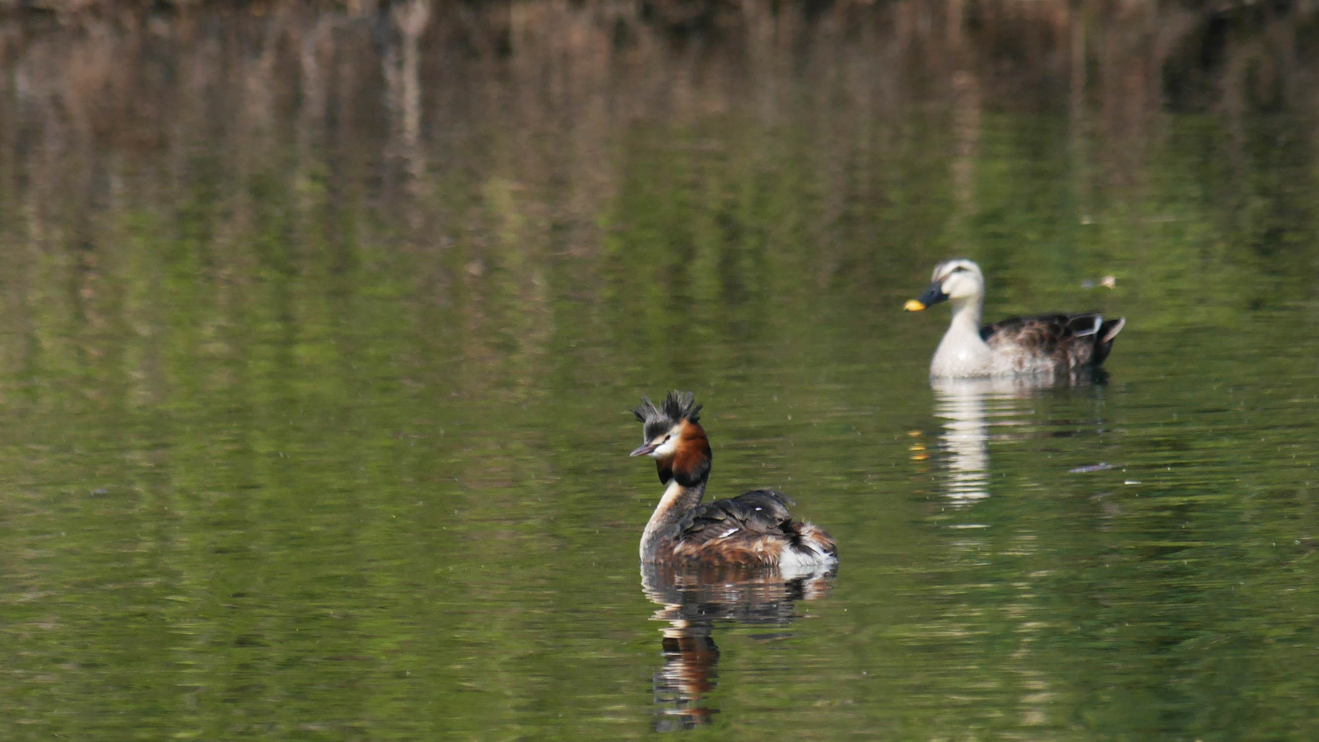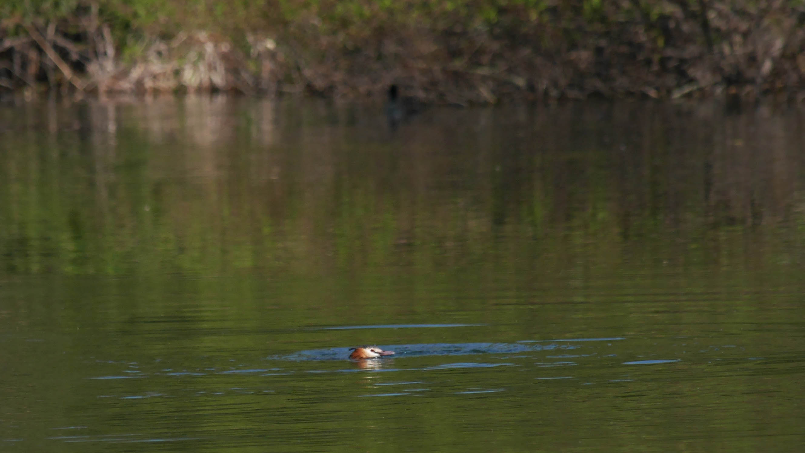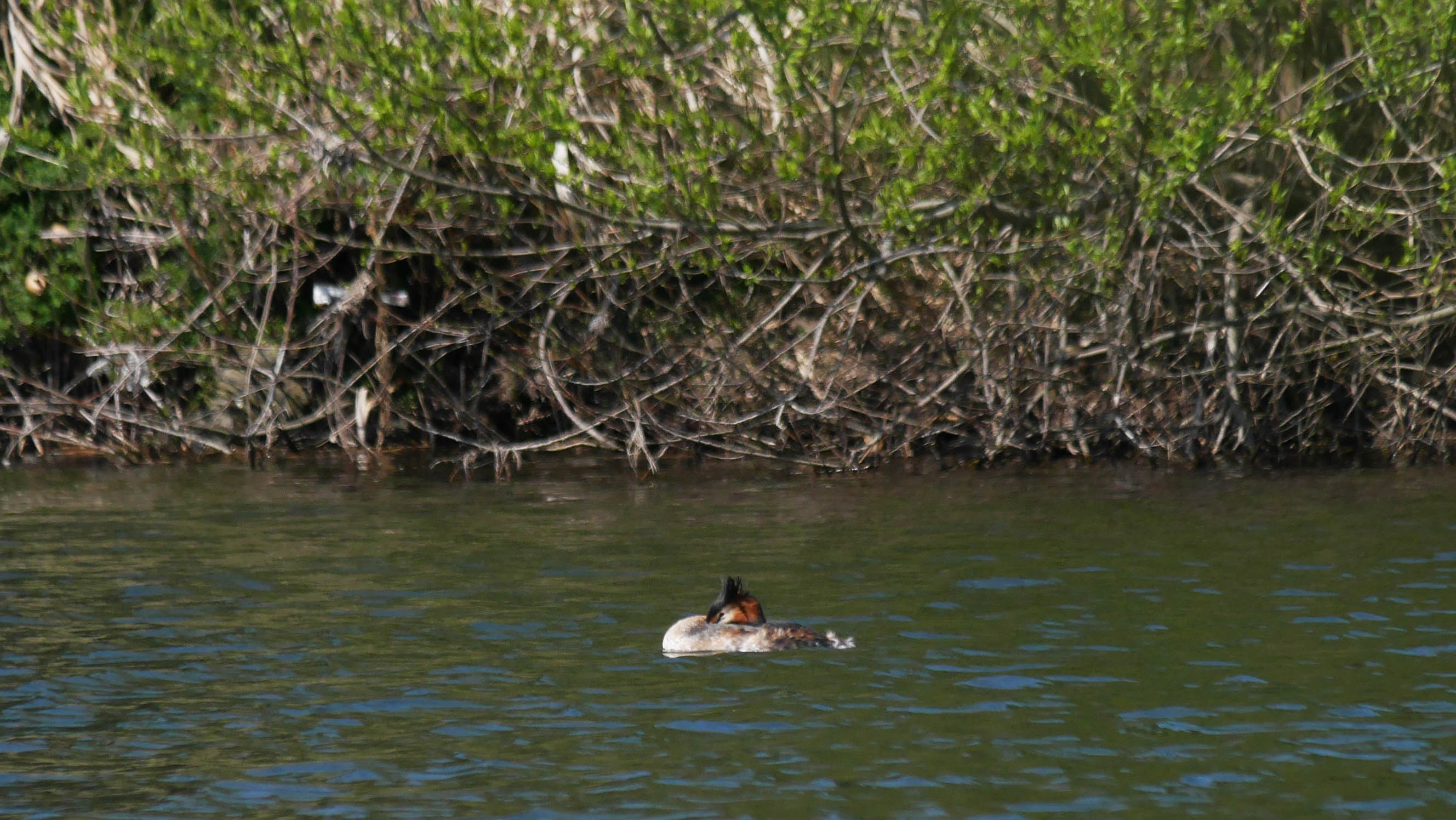 t鳥見仲間に教えて頂いた、l夏羽のオスのカンムリカイツブリ。