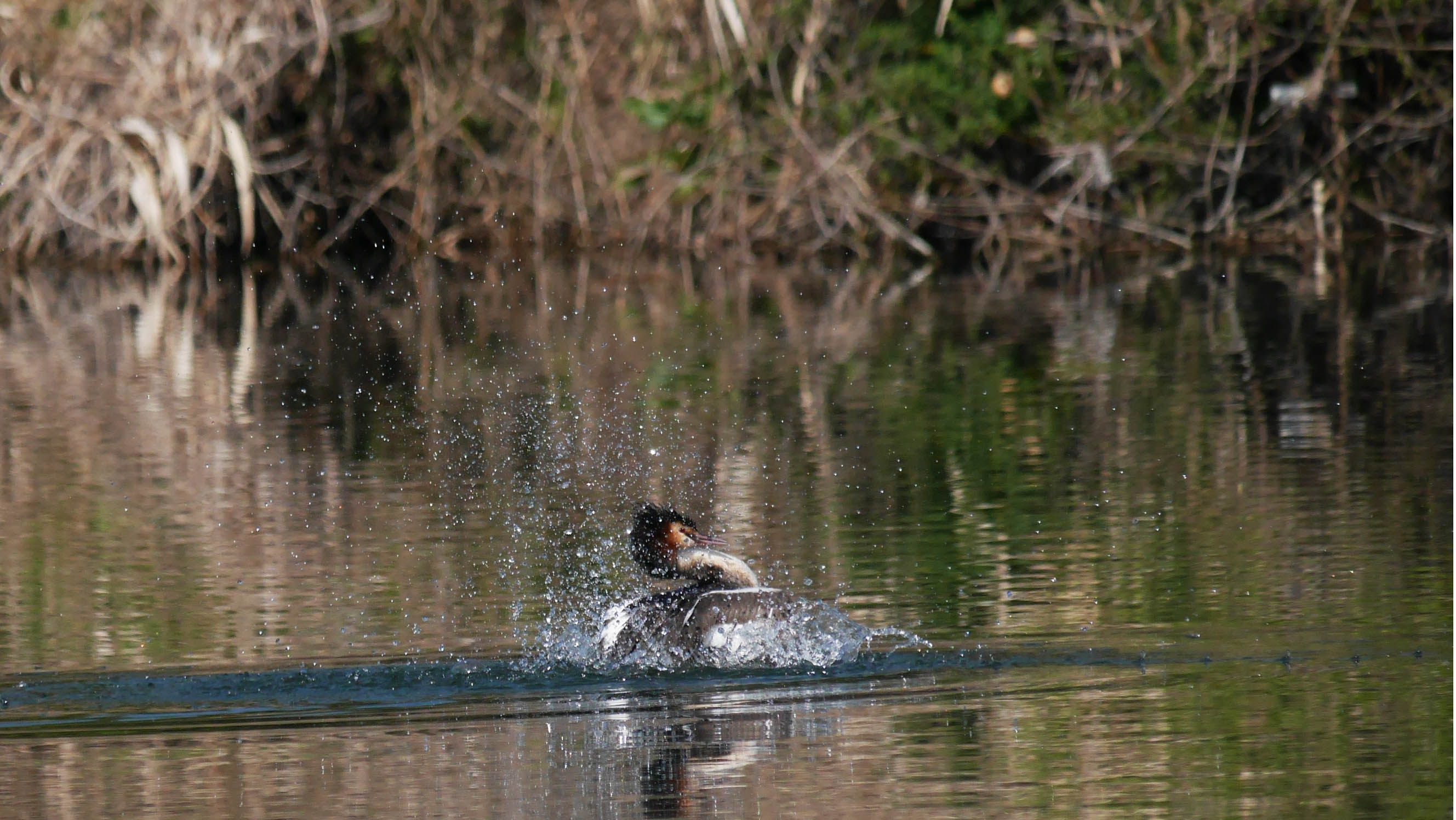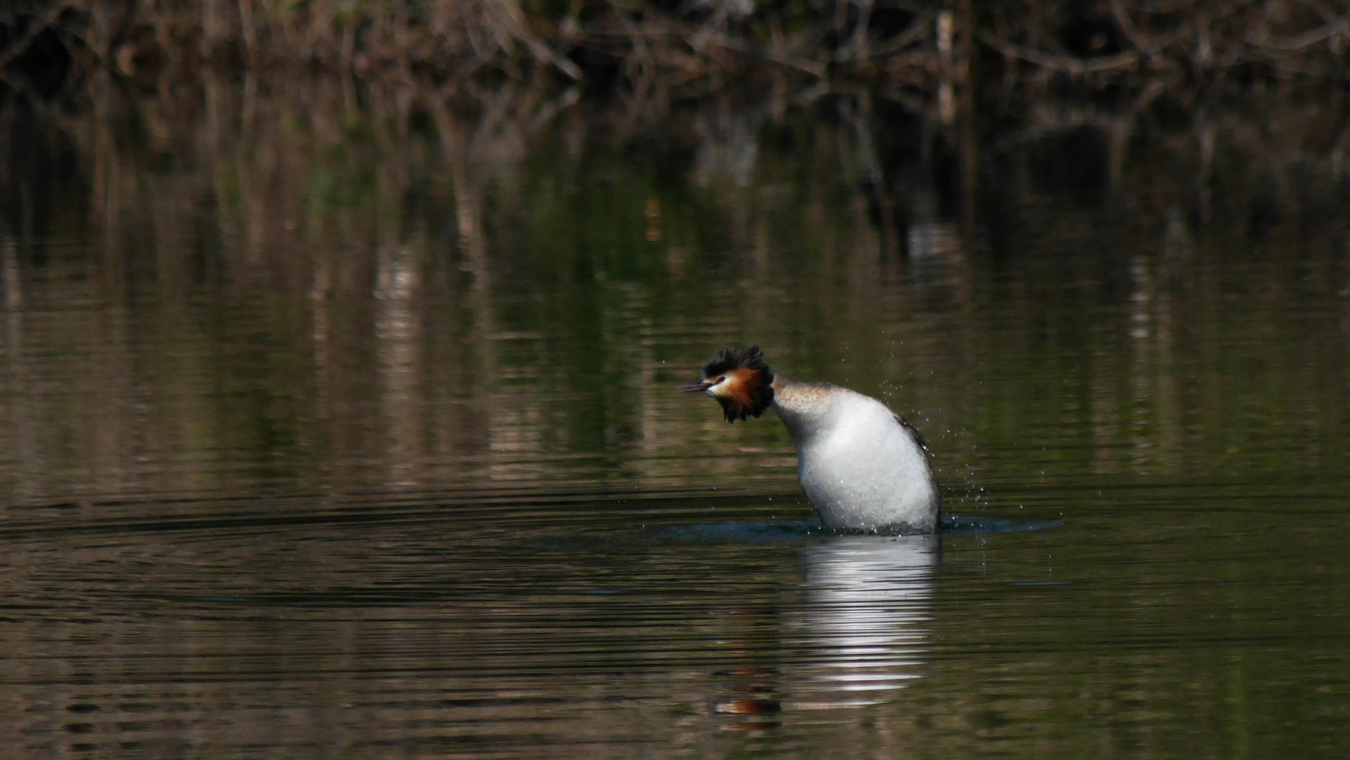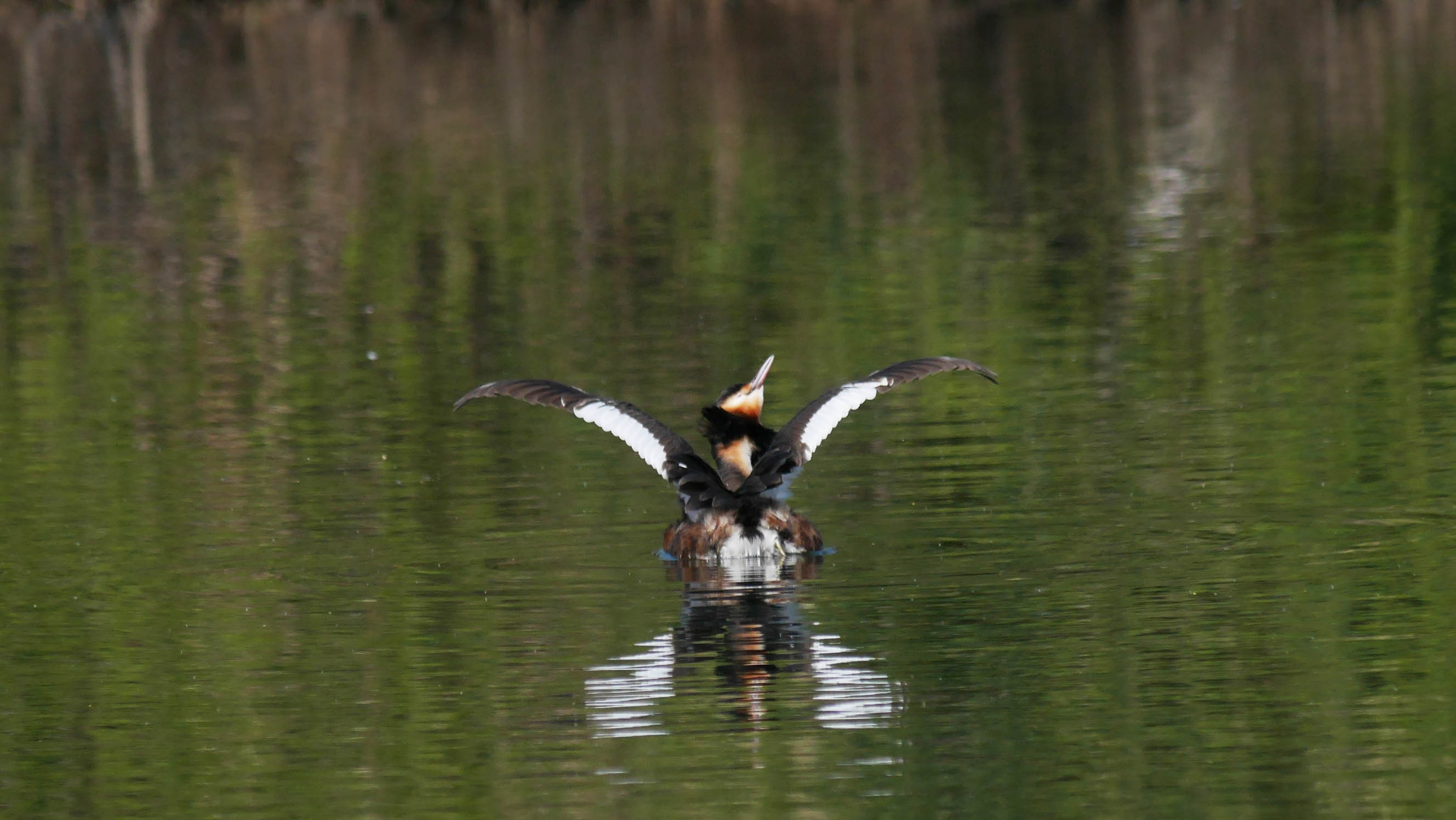 t鳥見仲間に教えて頂いた、l夏羽のオスのカンムリカイツブリ。