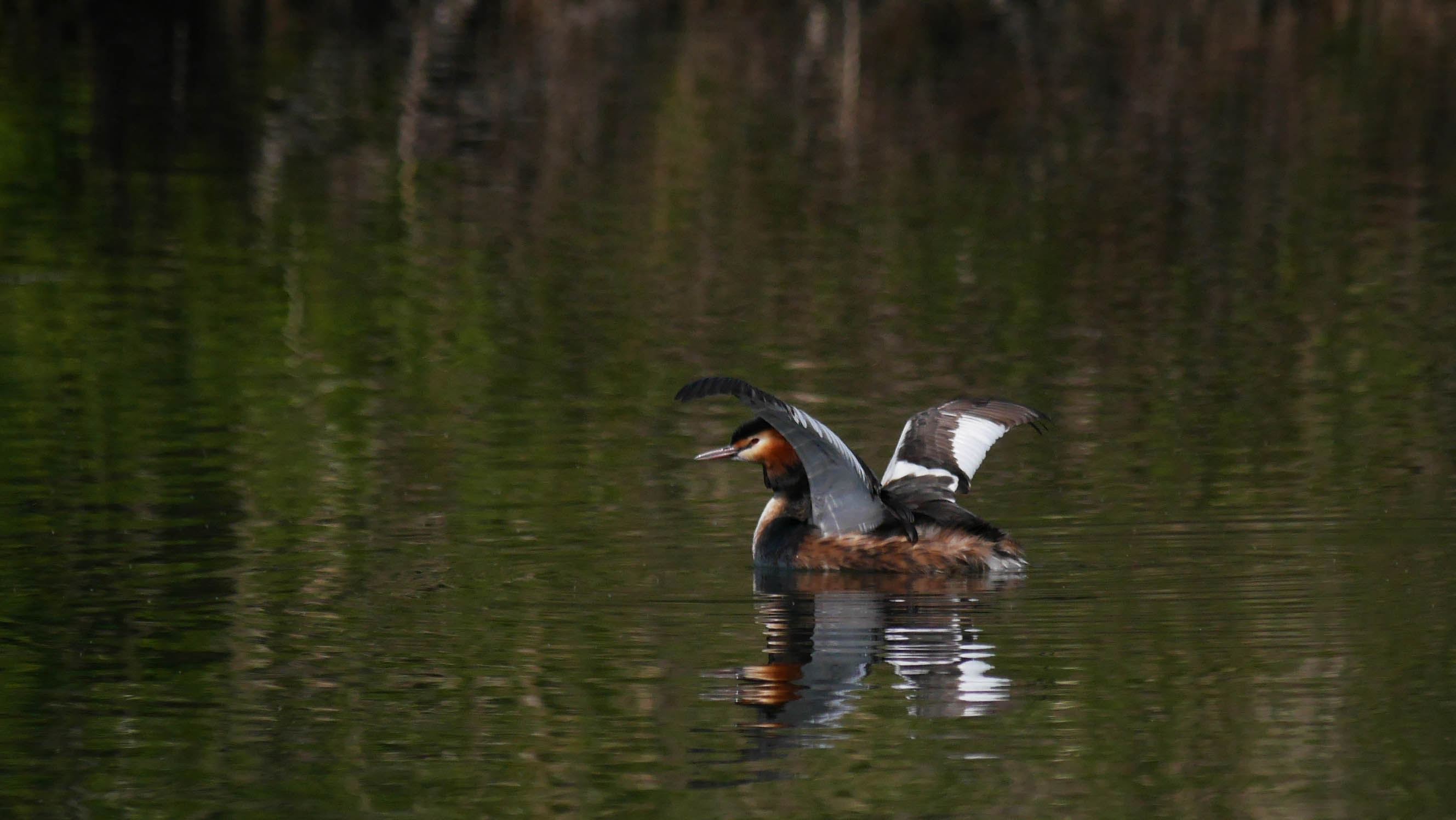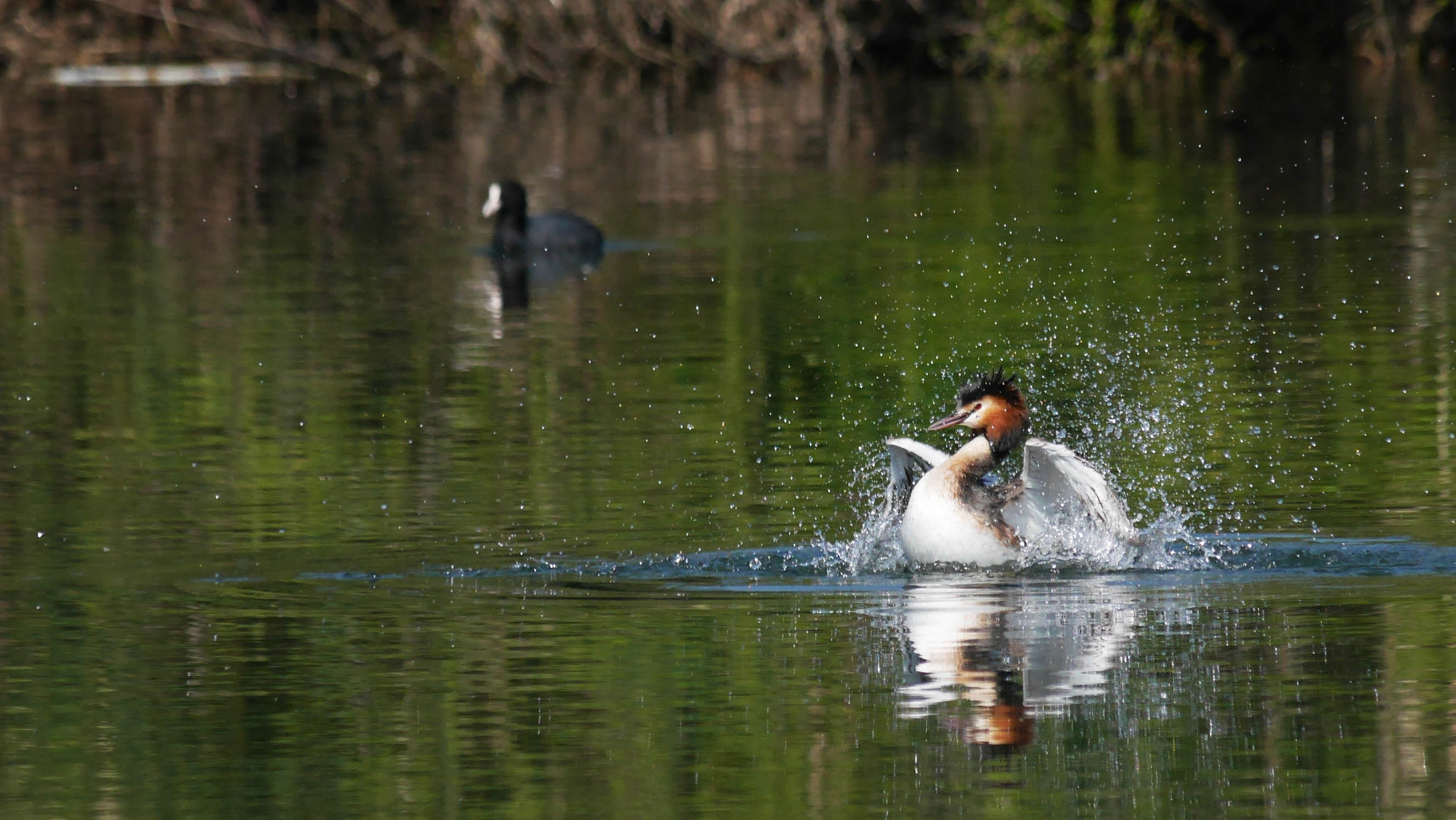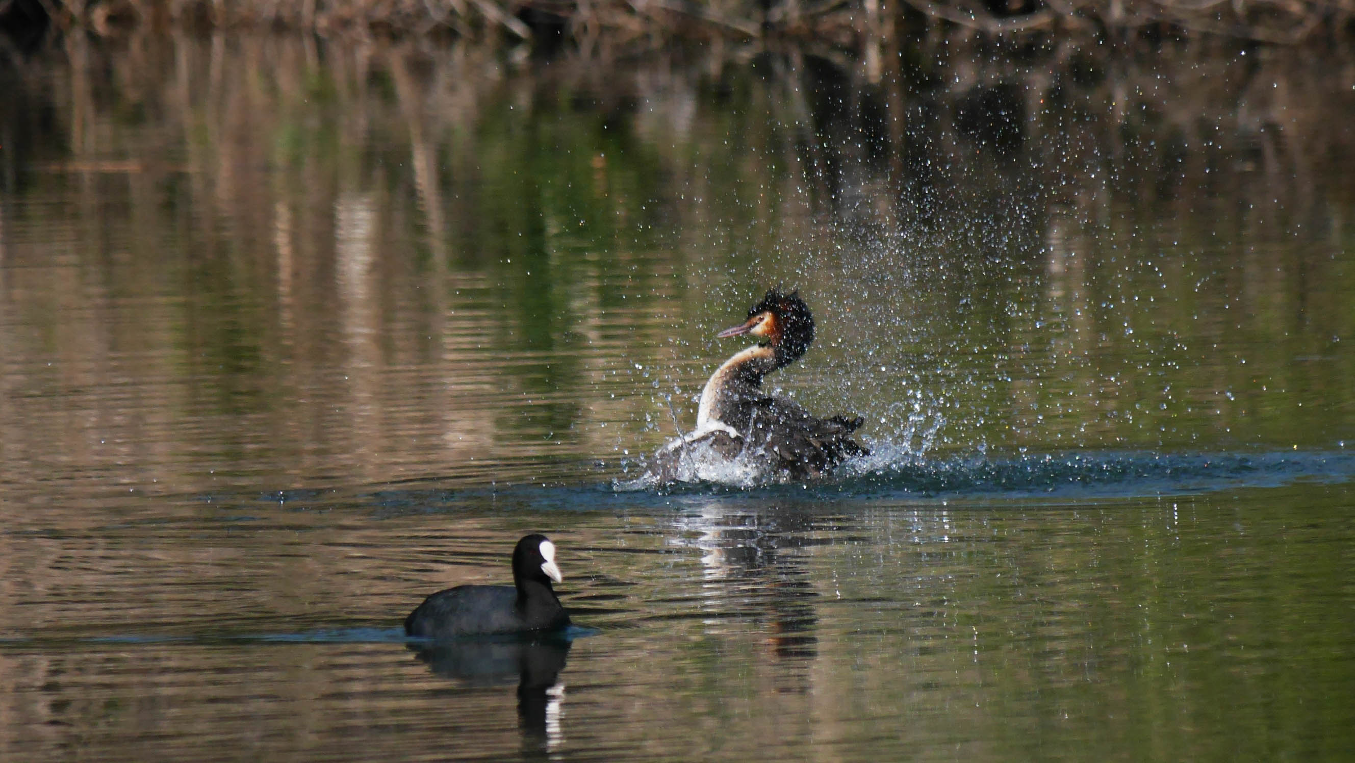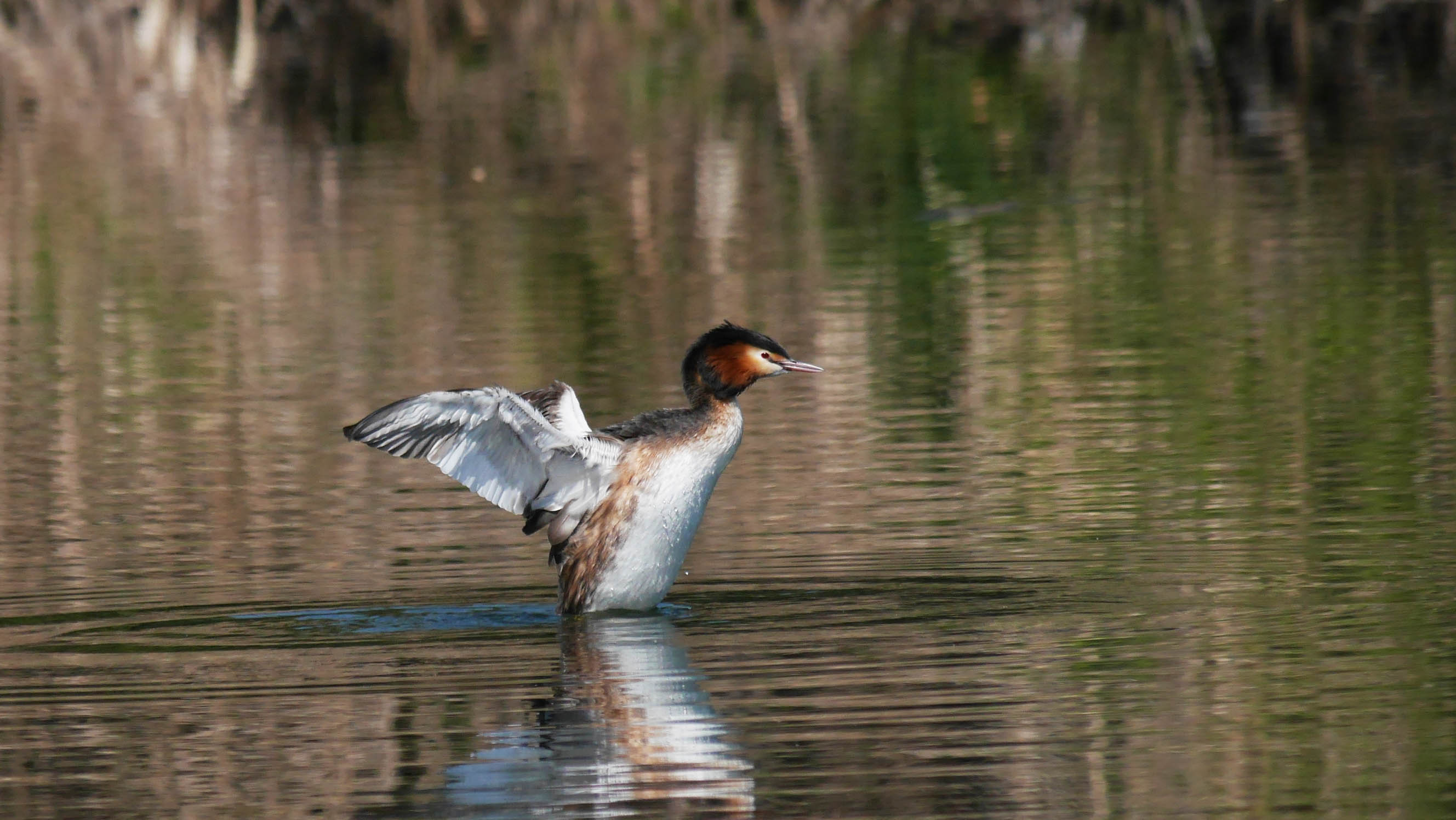 t鳥見仲間に教えて頂いた、l夏羽のオスのカンムリカイツブリ。